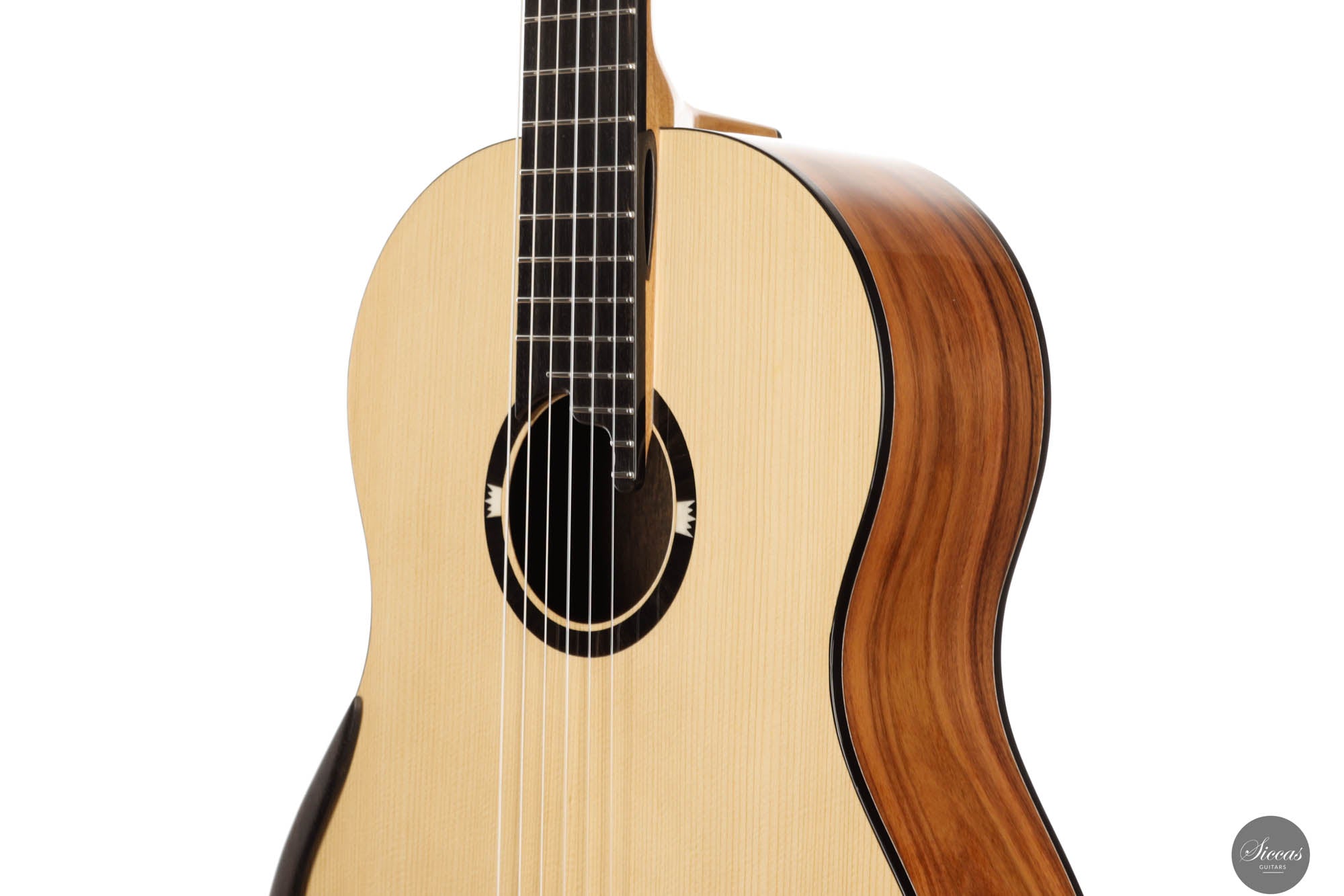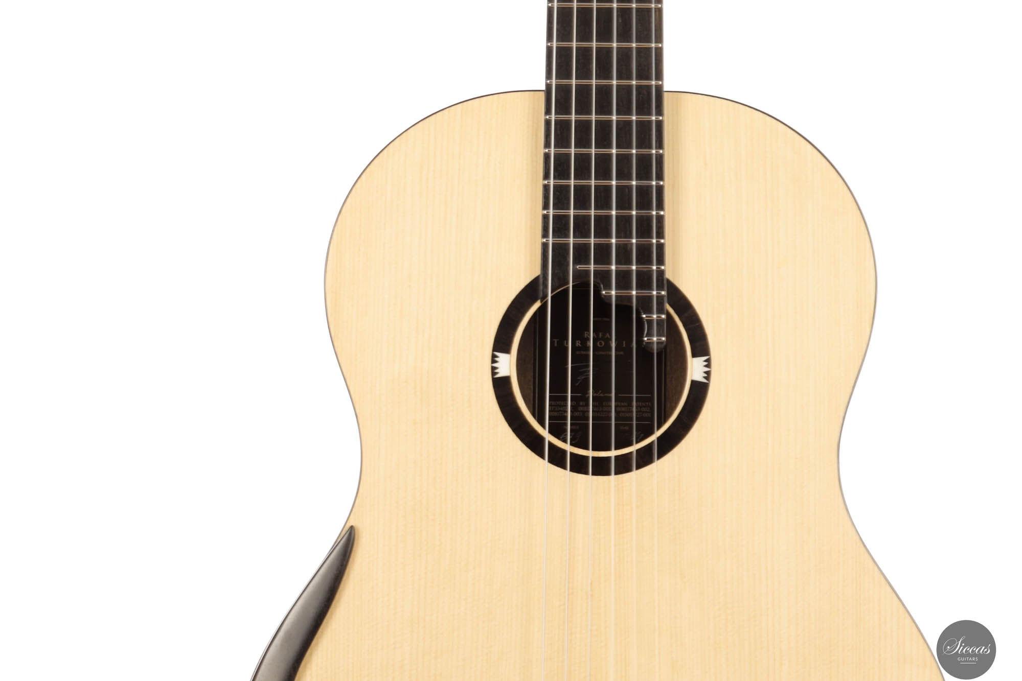 Die Rafal Turkowiak Gitarre Nr. 679, bekannt als "Opus Prime", stellt die nächste Entwicklungsstufe von Turkowiaks Kunstfertigkeit dar und folgt auf das gefeierte Modell "The Queen of Guitars". Dieses einzigartige Instrument verfügt über eine Fichten-Doppeldecke, die außergewöhnliche Lautstärke und Spielbarkeit bietet. Ein herausragendes Merkmal ist das innovative "Acoustic Tube" im Hals, das die Resonanz der Gitarre verstärkt und einen reichen, umhüllenden Klang erzeugt, der jeden Raum mit Wärme füllt. Die Höhen sind warm und süß, während die Stimmtrennung präzise ist, was ein ausgewogenes und inspirierendes Spielerlebnis ermöglicht. Dank der 64 cm Mensur und der hervorragenden Halsform bietet diese Gitarre eine erstaunliche Spielbarkeit. Dieses bemerkenswerte Instrument exemplifiziert Turkowiaks Engagement, Kunstfertigkeit und akustische Exzellenz zu vereinen, und bereitet jedem Gitarristen Freude und Zufriedenheit.