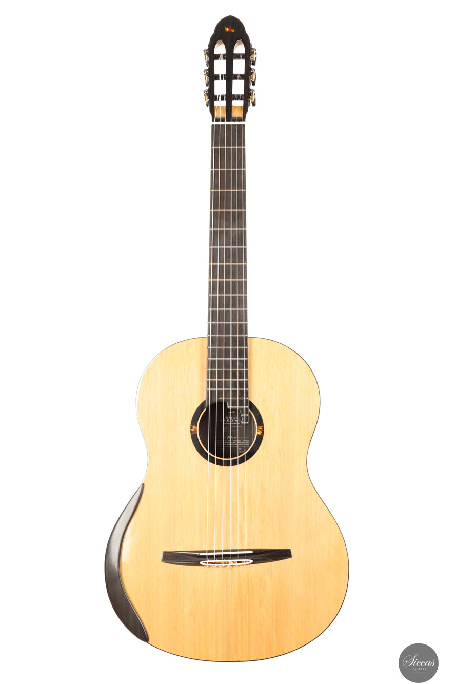 Die klassische Gitarre mit ihren weichen Nylonsaiten und ihrem charakteristischen Timbre ist zum Symbol der Kammermusik, der spanischen Tradition und des Konzertrepertoires geworden. Ihre moderne Form prägte Antonio de Torres im 19. Jahrhundert, indem er den Standard für Korpus, Fächerbeleistung und die 65-Zentimeter-Mensur setzte, die bis heute verwendet werden. Instrumente dieser Kategorie eröffnen eine reiche Palette von den feinen romantischen Miniaturen Tárregas bis zu den majestätischen Konzerten Rodrigos. Hier finden Sie Gitarren, die historische Kontinuität bewahren und zugleich zu neuen Interpretationen anregen.