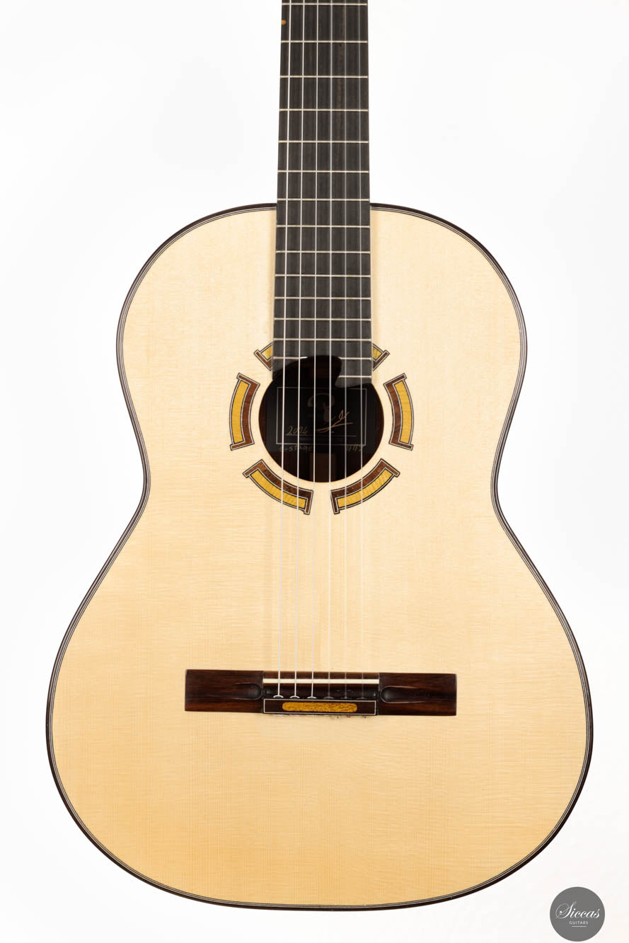 Die klassische Gitarre mit ihren weichen Nylonsaiten und ihrem charakteristischen Timbre ist zum Symbol der Kammermusik, der spanischen Tradition und des Konzertrepertoires geworden. Ihre moderne Form prägte Antonio de Torres im 19. Jahrhundert, indem er den Standard für Korpus, Fächerbeleistung und die 65-Zentimeter-Mensur setzte, die bis heute verwendet werden. Instrumente dieser Kategorie eröffnen eine reiche Palette von den feinen romantischen Miniaturen Tárregas bis zu den majestätischen Konzerten Rodrigos. Hier finden Sie Gitarren, die historische Kontinuität bewahren und zugleich zu neuen Interpretationen anregen.