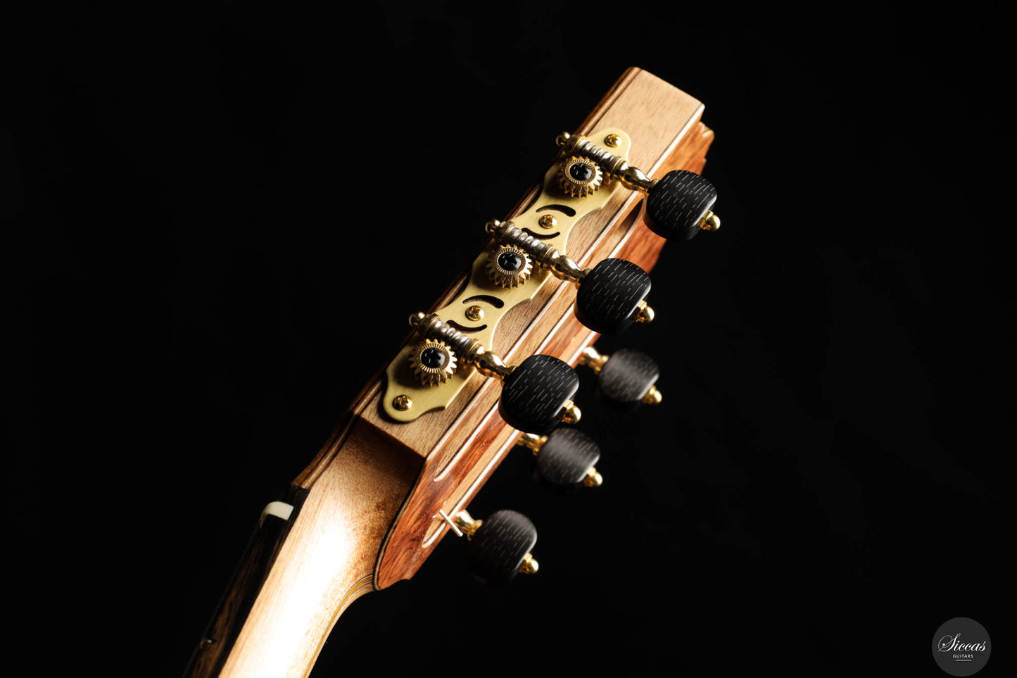 Ramin Fallah begann seine Karriere als Gitarrenbauer im Jahr 2008 und baut seither Flamenco- und Konzertgitarren für professionelle Gitarristen weltweit. In seiner Werkstatt in Istanbul setzt Ramin auf innovative Ideen, die seine Instrumente sowohl klanglich als auch ästhetisch einzigartig machen. Dank der künstlerischen Zusammenarbeit mit seiner Frau, gibt es an Ramins Gitarren einige schöne und aufwendige Details zu entdecken.