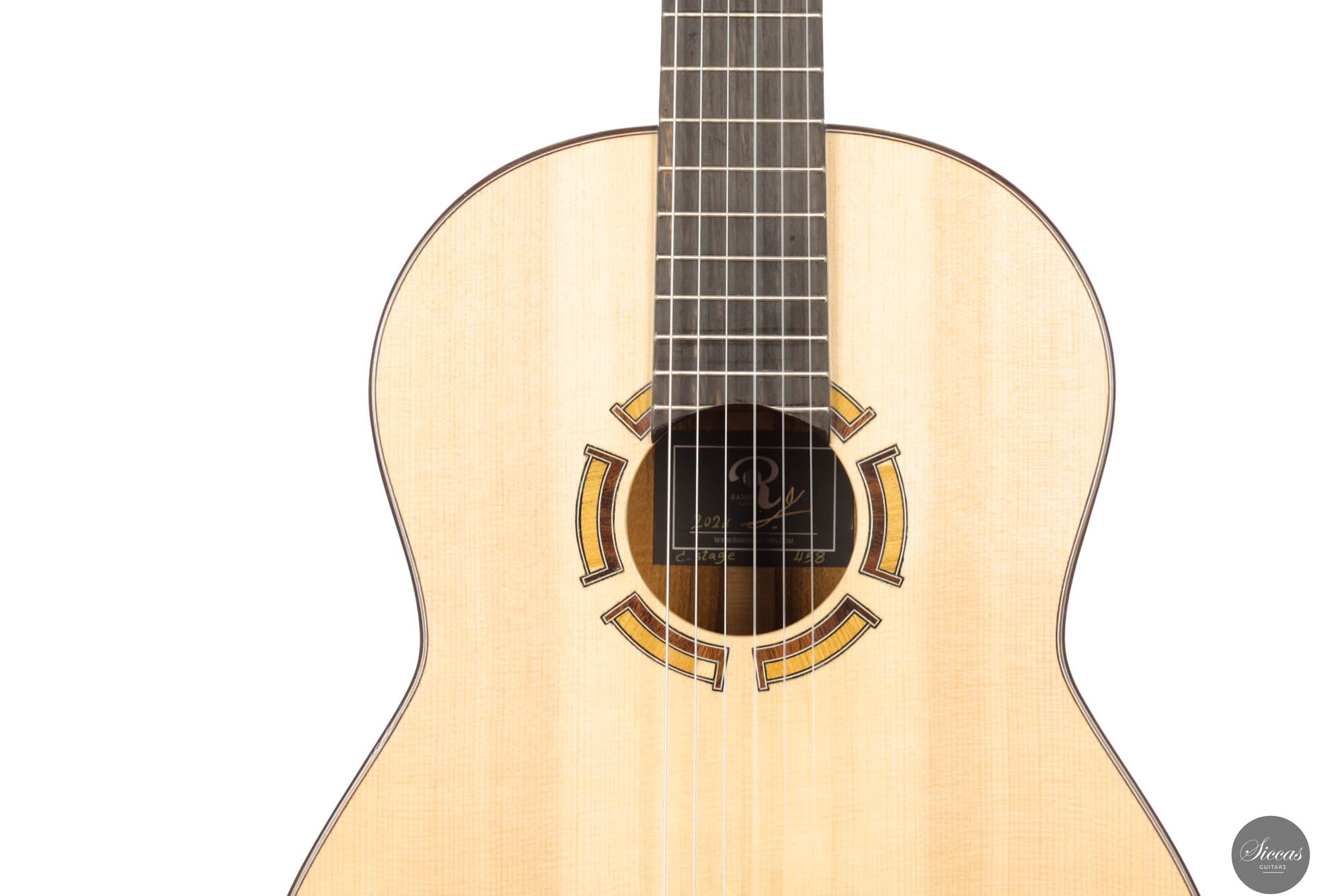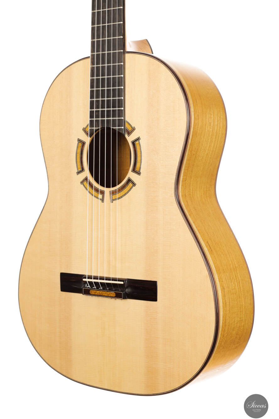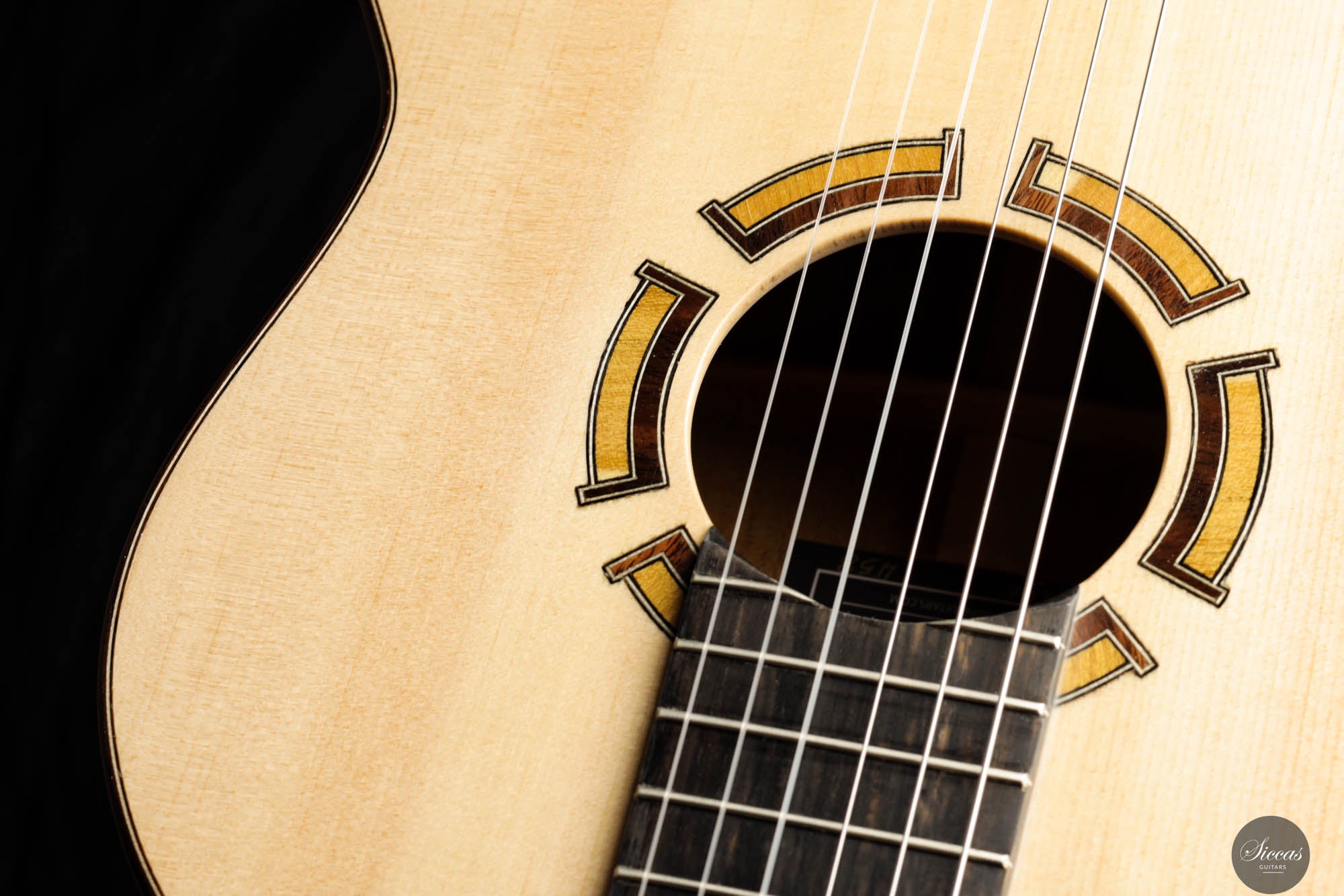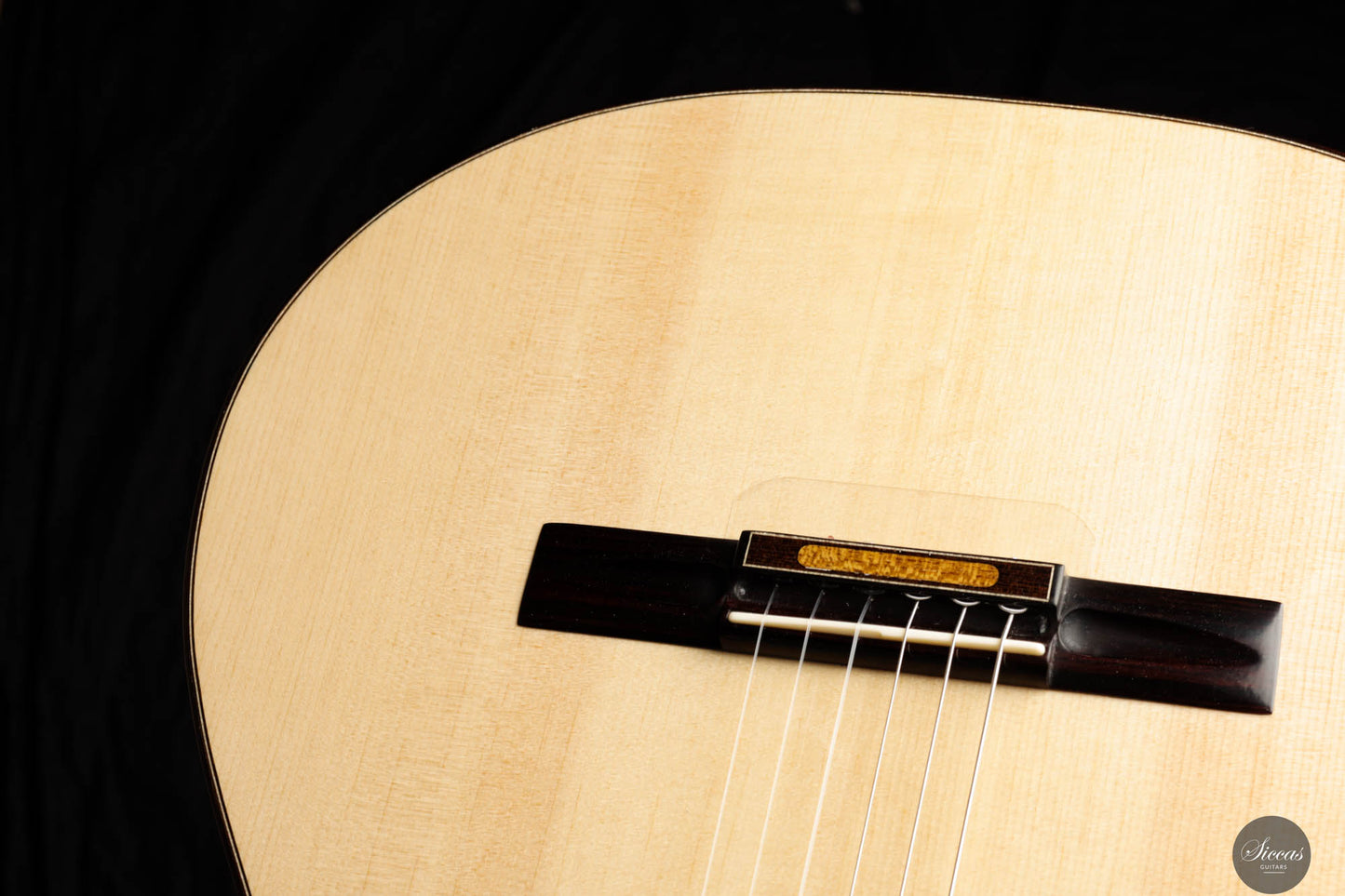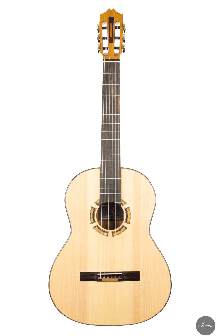 Die Gitarre Nr. 458 ist eine herausragende Konzertgitarre, die traditionelle Handwerkskunst mit moderner akustischer Innovation vereint. Mit einer beeindruckenden Fichtendecke und dem optisch markanten Amazonas-Palisander für Rücken und Zargen ist diese Gitarre sowohl ein Genuss zu spielen als auch ein visuelles Schmuckstück. Ausgestattet mit zeitgemäßen Verbesserungen, darunter ein einzigartiges Soundport, bietet sie erhöhte Lautstärke und Projektion, ideal für Konzertauftritte in unterschiedlichsten Settings. Die Konstruktion zeigt ein klares Engagement für Qualität und macht sie zu einer vielseitigen Wahl für Musiker, die die Tiefe des traditionellen Klangs mit den Vorteilen moderner Fortschritte schätzen.
