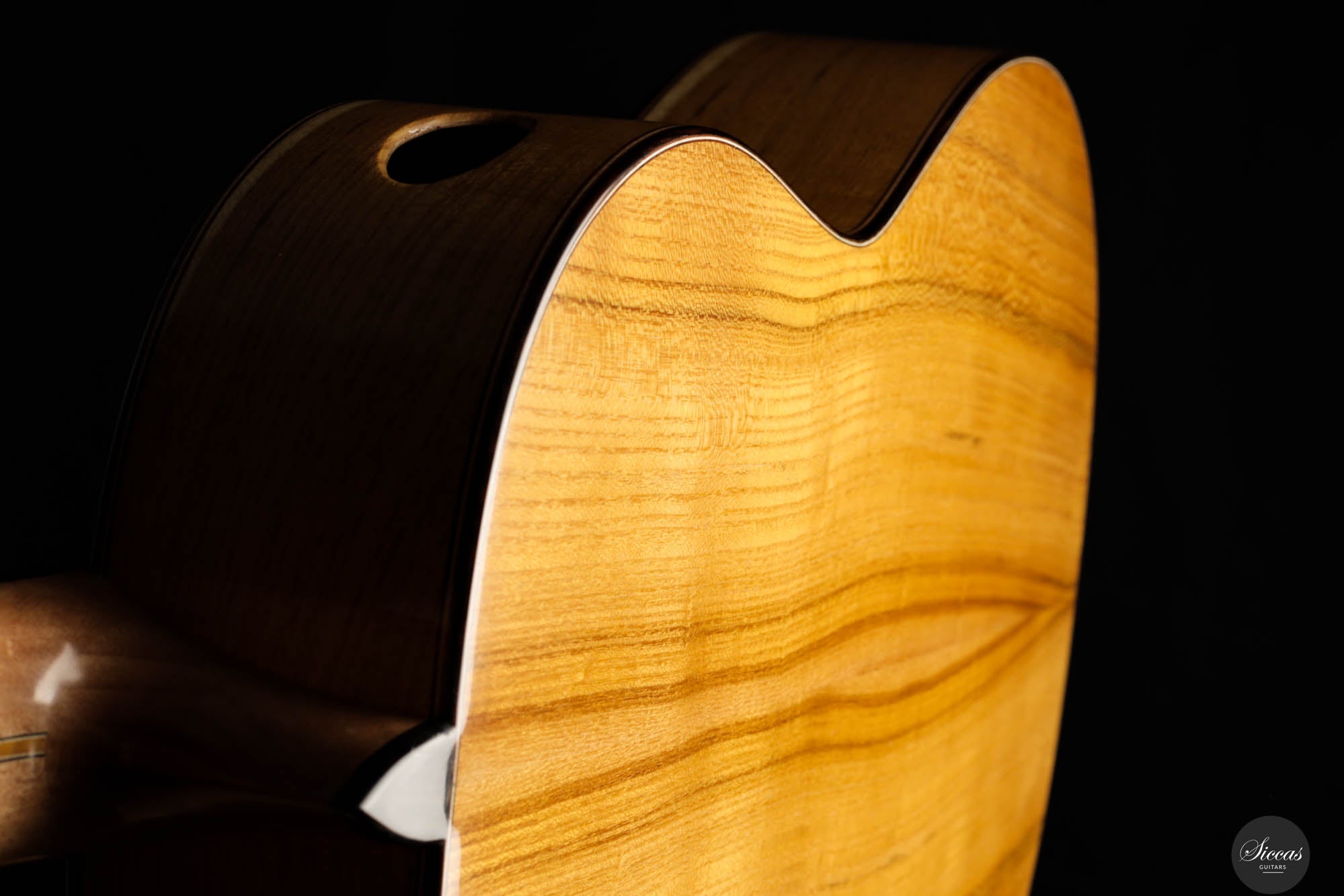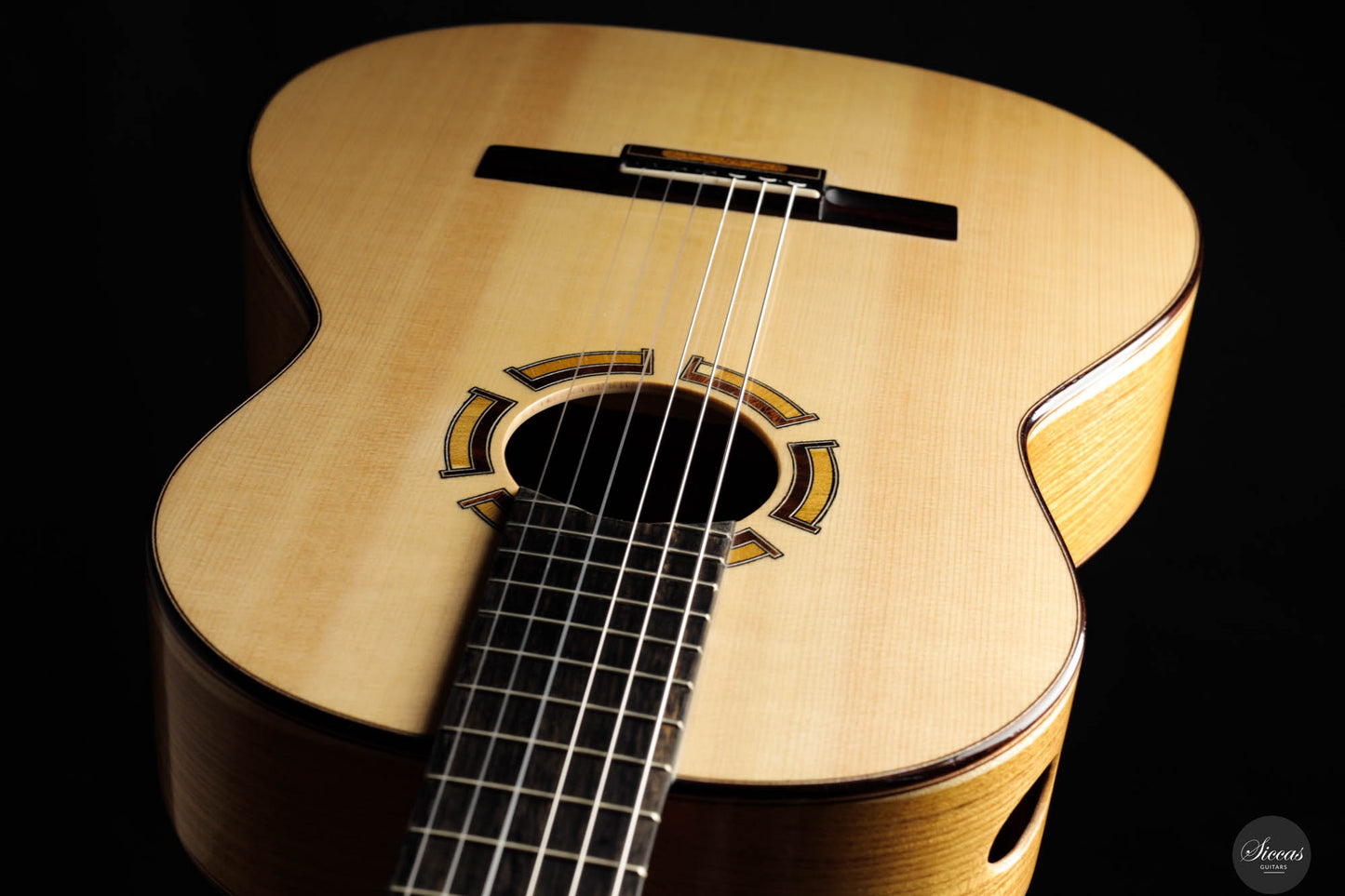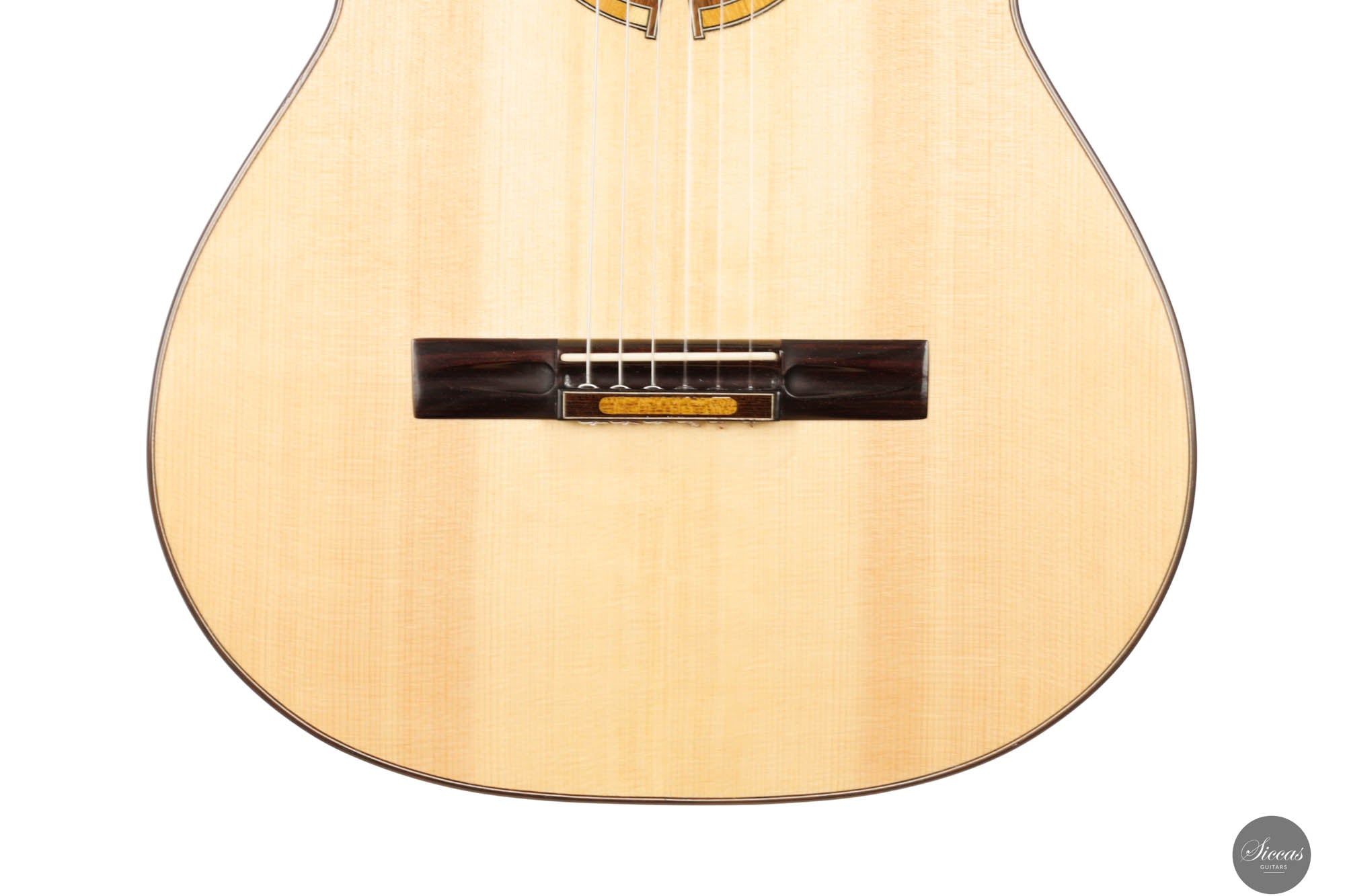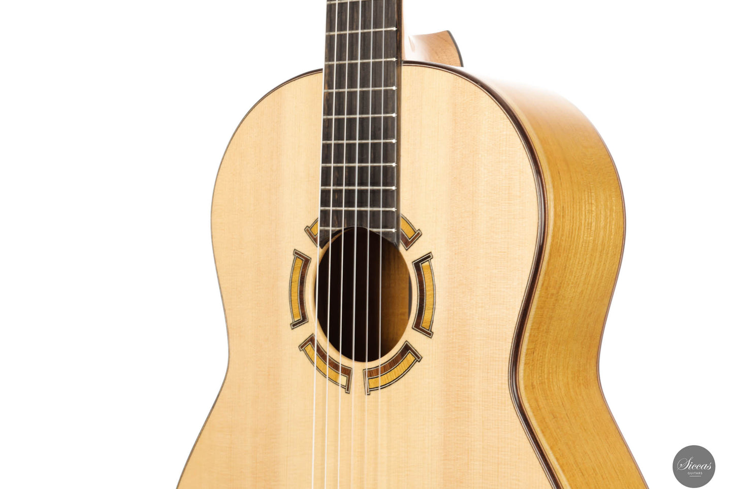 Die Gitarre Nr. 458 ist eine herausragende Konzertgitarre, die traditionelle Handwerkskunst mit moderner akustischer Innovation vereint. Mit einer beeindruckenden Fichtendecke und dem optisch markanten Amazonas-Palisander für Rücken und Zargen ist diese Gitarre sowohl ein Genuss zu spielen als auch ein visuelles Schmuckstück. Ausgestattet mit zeitgemäßen Verbesserungen, darunter ein einzigartiges Soundport, bietet sie erhöhte Lautstärke und Projektion, ideal für Konzertauftritte in unterschiedlichsten Settings. Die Konstruktion zeigt ein klares Engagement für Qualität und macht sie zu einer vielseitigen Wahl für Musiker, die die Tiefe des traditionellen Klangs mit den Vorteilen moderner Fortschritte schätzen.