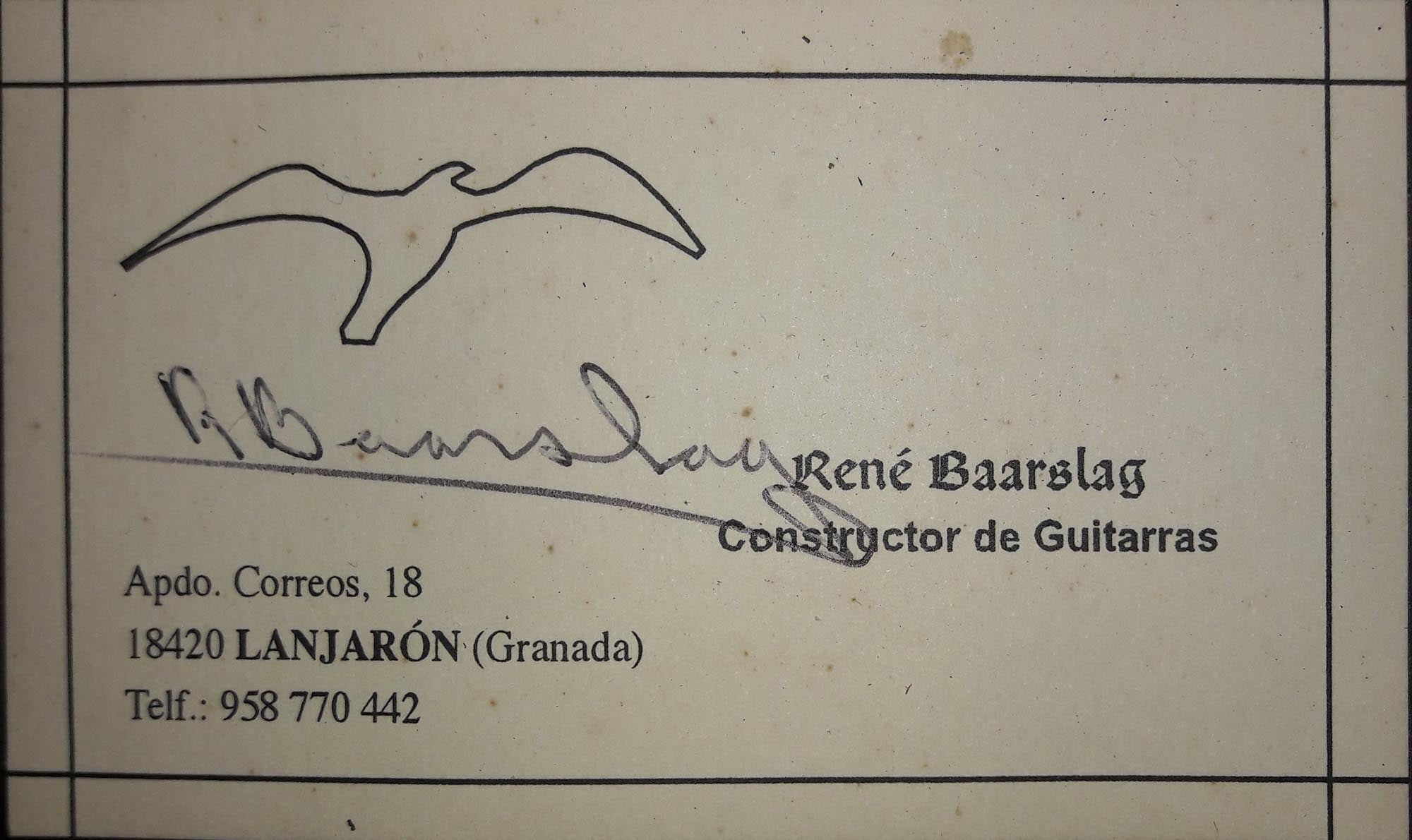 René Baarslag was born in 1948 in Heerlen, Holland. He visited Granada for the first time in 1977 and felt in love with the art of guitar making. He worked with Antonio Marin Montero in Granada but also with Robert Bouchet in France. Today he lives in Granada, where he has set up his own workshop. He is world-wide known for his traditionally built guitars and their incredible volume, balance, elasticity and sustain.