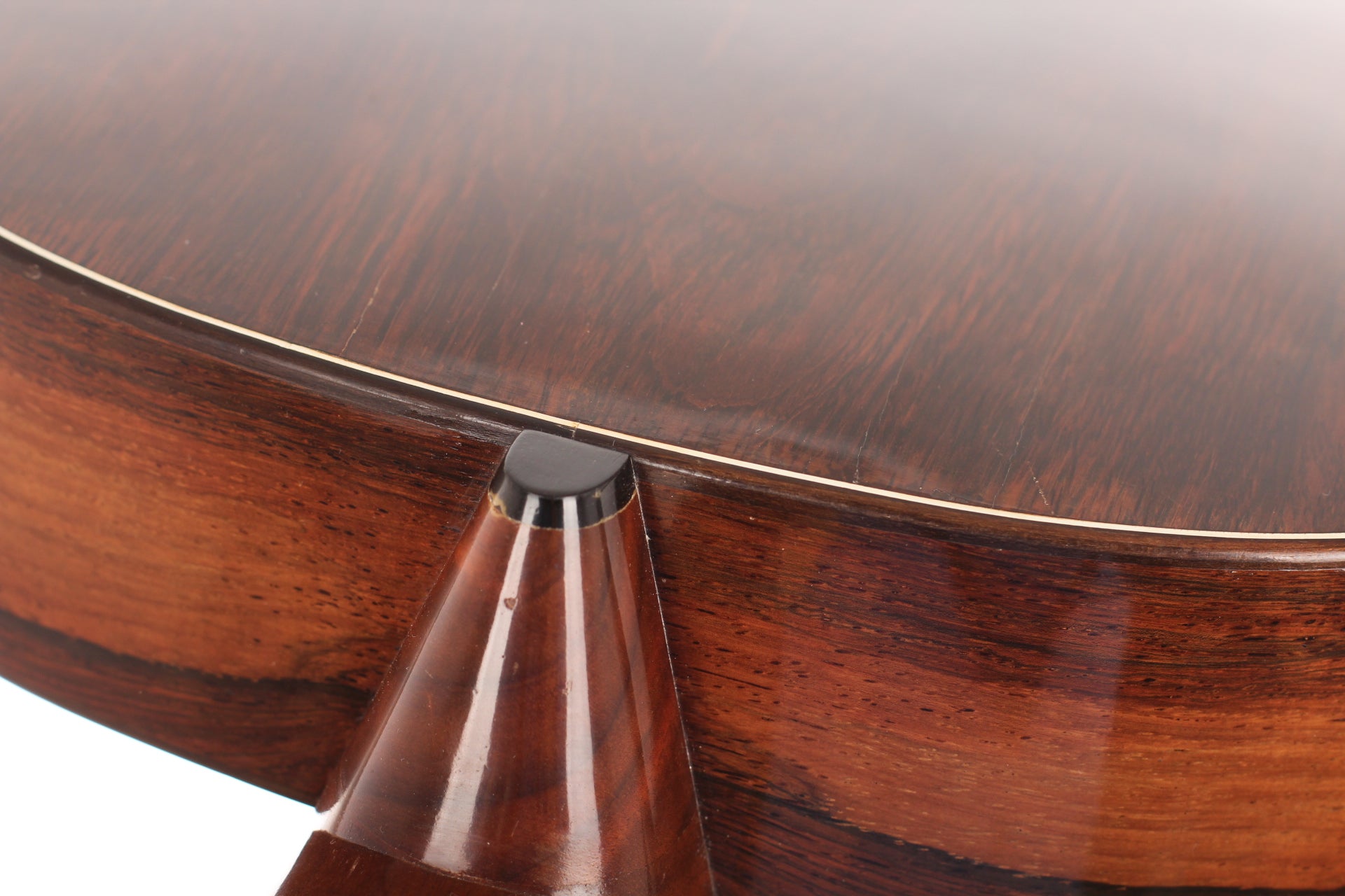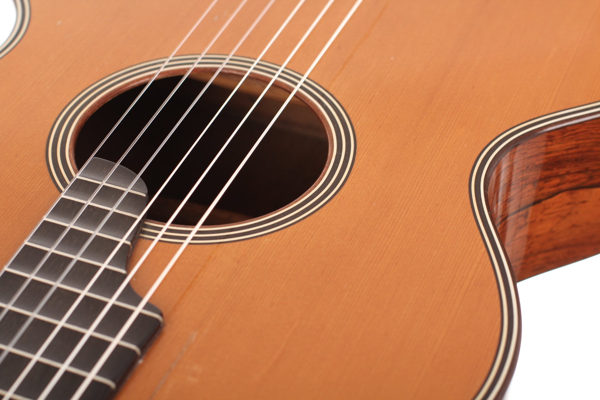 Preis auf AnfrageGitarrenbauer: Fritz OberBaujahr: 2019Decke: SpruceBoden und Zargen: Brazilian rosewood (CITES certified)Deckenoberfläche: French polishKorpusoberfläche: French polishLuftresonanz: C sharp / DGewicht (g): 1345Mechaniken: Klaus SchellerZustand: Excellent -