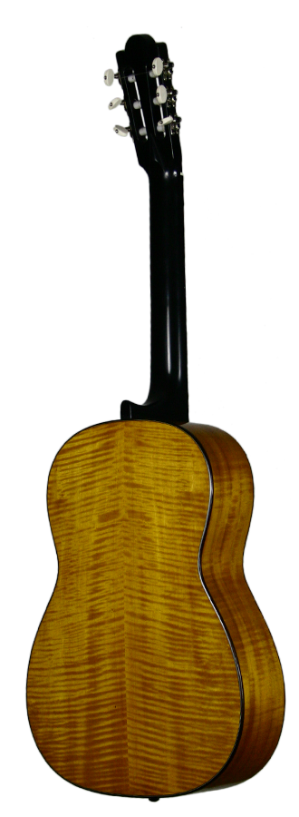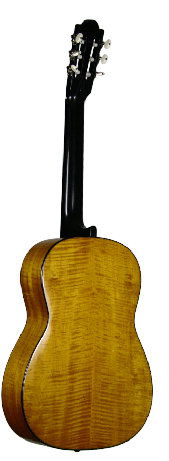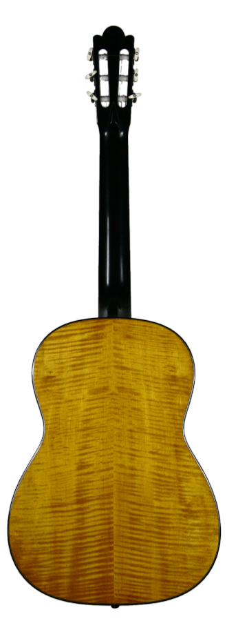 Nachdem Richard Jacob um 1925 angefangen hatte, sich hauptsächlich mit dem Bau spanischer Gitarren zu befassen, entwickelte er seine Fähigkeiten besonders in Bezug auf einen spanischen Ton seiner Gitarren schnell weiter. Schon 1927 hatte er seine Gitarren spanischer Bauart dem Ideal in Konstruktion, Klang und Spielbarkeit so genähert, dass er sein Konzertmodell nach dem großen Vorbild Torres benannte. Schon einige Jahre vorher hatte Miguel Llobet über Gitarren des Markneukirchner Meisters gesagt: Eine der wenigen deutschen Gitarren mit spanischem Ton. Boden und Zargen dieser Gitarre sind aus Ahorn, den traditionellen Hölzern im deutschen Gitarrenbau (Antonio de Torres hatte einige seiner besten Gitarren ebenfalls aus Ahorn gebaut!). Der schwarz gebeizte Hals ist ebenfalls aus Ahorn, die Zusammenstellung des schönen goldgelben Tones des Ahorn und der schwarz gefärbte Hals ist für die Zeit typisch, ein für 1927 typischer ästhetischer Rückblick auf den Wiener Gitarrenau des 19. Jahrhunderts. Der Korpus stammt aus dem Nachlass Richard Jacobs und die Gitarre wurde erst 2013 vom Gitarrenbaumeister Christoph Sembdner fertiggestellt, indem er einen traditionellen deutschen Hals nach Richard Jacobs Arbeitsweise nachbaute. Dieser hatte seine gesamten Ersparnisse in der Inflation von 1923 verloren, worauf er begann Instrumente zu sparen und ein Lager anzuhäufen, das im Laufe der Jahre unvorstellbare Ausmaße annahm. So gibt es heute eine ganze Menge originaler Weißgerber- Gitarren, die erst nach dem Tode des Meisters fertiggestellt worden sind, die meisten davon von seinem Sohn Martin Jacob (1911-1991). Wenn - wie in diesem Fall - eine spätere Fertigstellung nach den handwerklichen Kriterien der Weißgerber-Werkstatt erfolgte, sind die von anderer Hand fertiggestellten Instrumente absolut gleichwertig anzusehen. Typisch für das weißgerbersche Torres-Modell ist die aus einlegten Ringen bestehende Rosette. Neben dem originalen Weißgerber-Label verweist ein zweiter, kleinerer Zettel auf die Mitwirkung des Weimarer Meisters Christoph Sembdner. Bei der Fertigstellung wurde strikt darauf geachtet, dass Instrument ästhetisch und klanglich ganz im Sinne Richard Jacobs zu vollenden. Beratend stand der Weißgerber-Experte Christof Hanusch zur Seite. Der schöne goldgelbe Schelllack stammt aus der Hand Richard Jacobs.