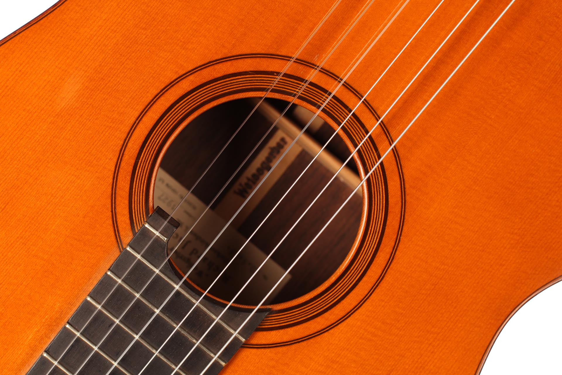 This beautiful 1927 Concert model is in amazing condition and built with the finest Rio rosewood. The guitar has a short well-repaired hairline crack on the bottom part of the top. The pencilled inscription on the crossbar above the sound hole has the serial number 28.4/4. It is a fine and sensible instrument with an incredibly sweet and rounded tone. The colour possibilities are endless, and the playability is perfect. It is probably the best guitar from Richard Weissgerber that ever entered our shop. The tuners a top-class Rodgers and a hard-shell case is included.