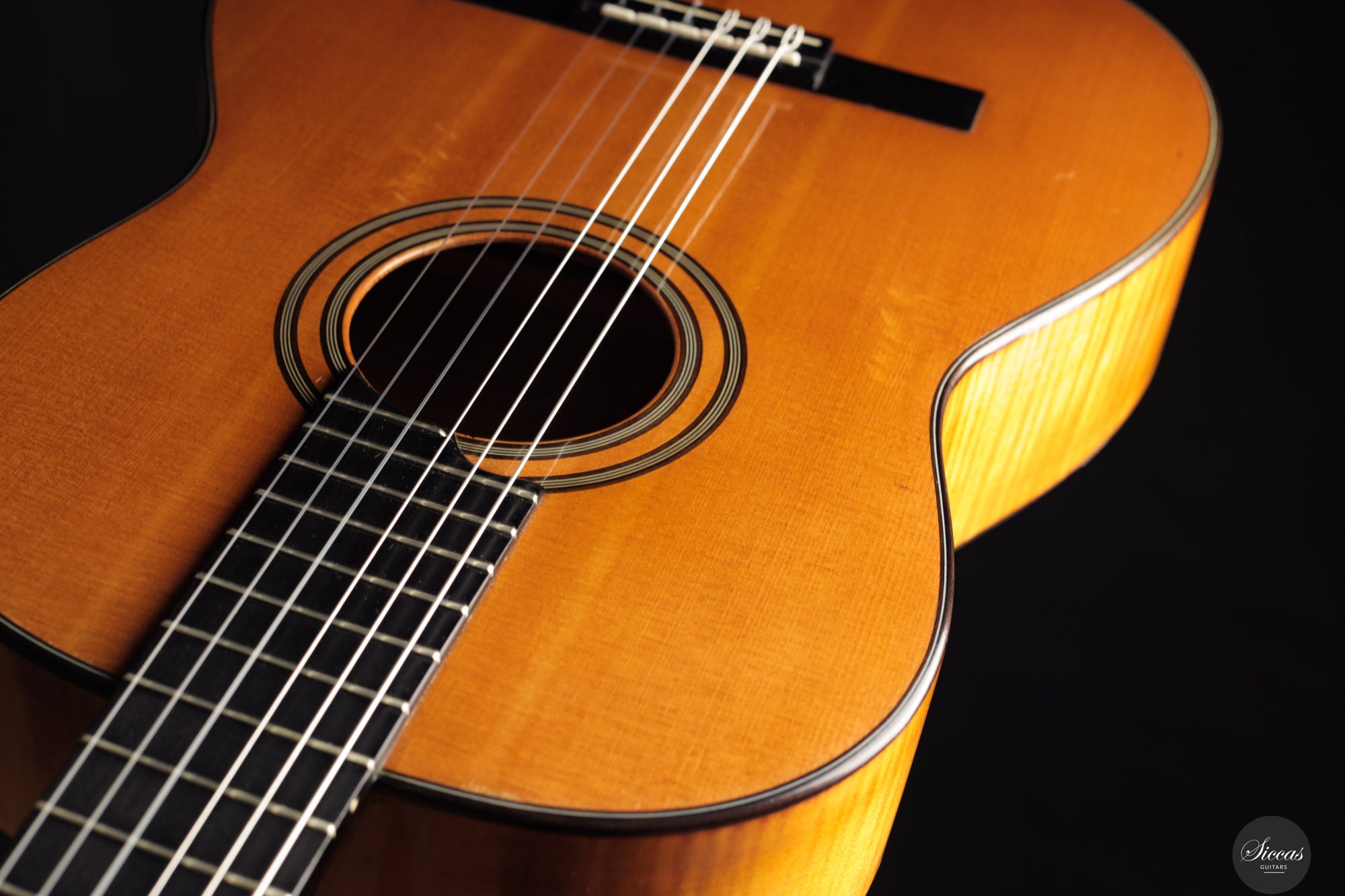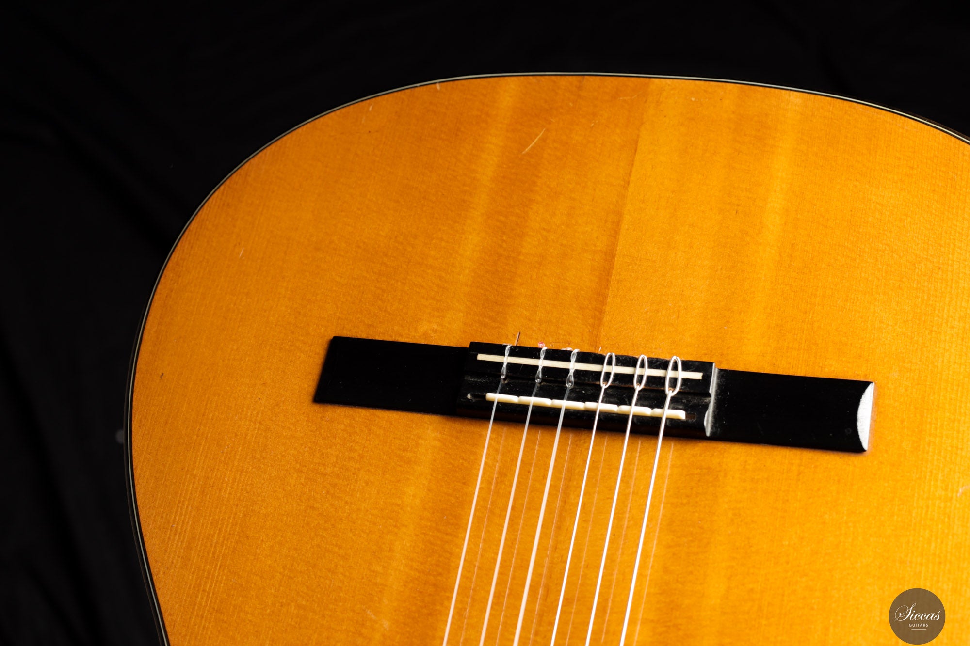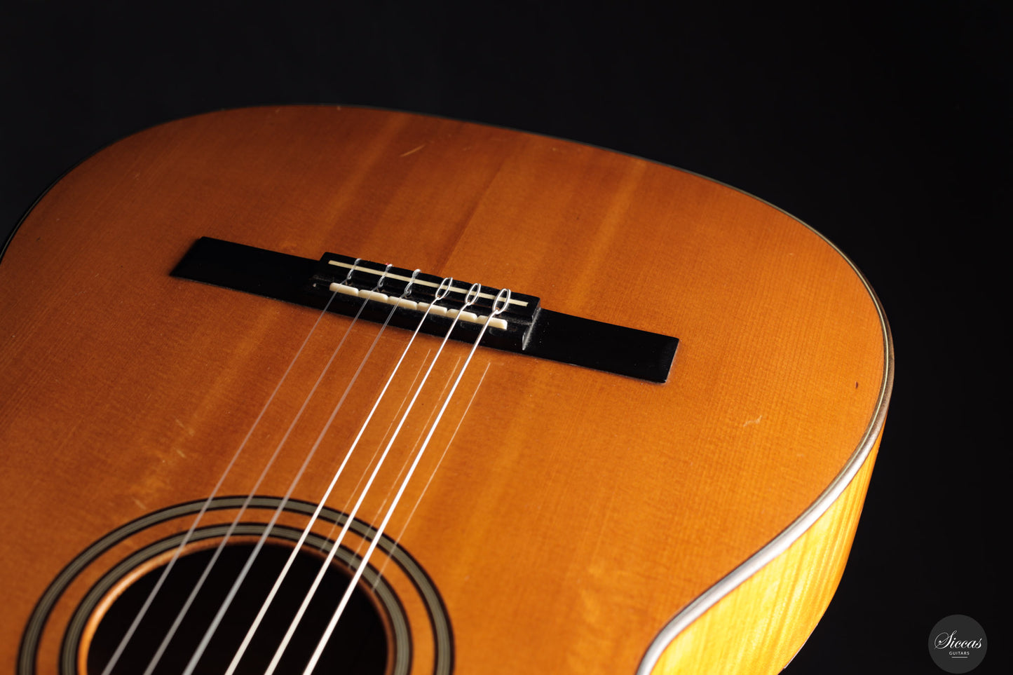 Die Gitarre befindet sich in sehr gutem Zustand. Reparaturen an den Zargen wurden fachgerecht ausgeführt, wodurch sowohl die strukturelle Stabilität als auch die klangliche Qualität erhalten geblieben sind.Regelmäßige Pflege verlängert die Lebensdauer des Instruments