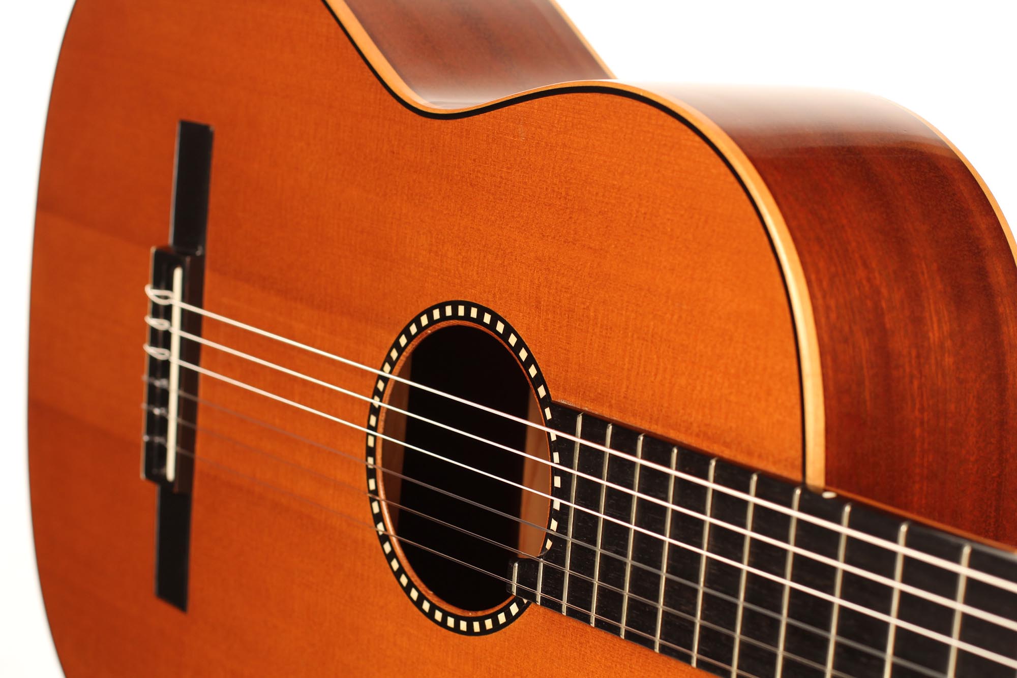 Die klassische Gitarre mit ihren weichen Nylonsaiten und ihrem charakteristischen Timbre ist zum Symbol der Kammermusik, der spanischen Tradition und des Konzertrepertoires geworden. Ihre moderne Form prägte Antonio de Torres im 19. Jahrhundert, indem er den Standard für Korpus, Fächerbeleistung und die 65-Zentimeter-Mensur setzte, die bis heute verwendet werden. Instrumente dieser Kategorie eröffnen eine reiche Palette von den feinen romantischen Miniaturen Tárregas bis zu den majestätischen Konzerten Rodrigos. Hier finden Sie Gitarren, die historische Kontinuität bewahren und zugleich zu neuen Interpretationen anregen.Alle Produkte der Kollektion ansehen -