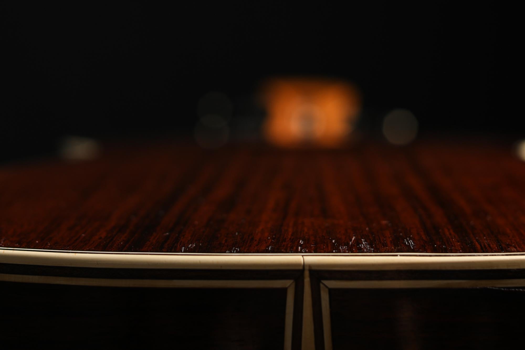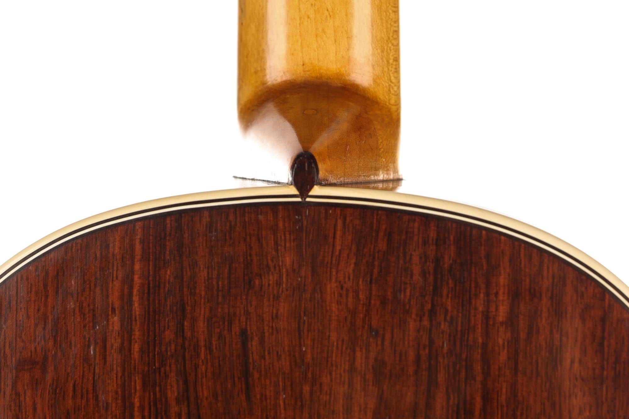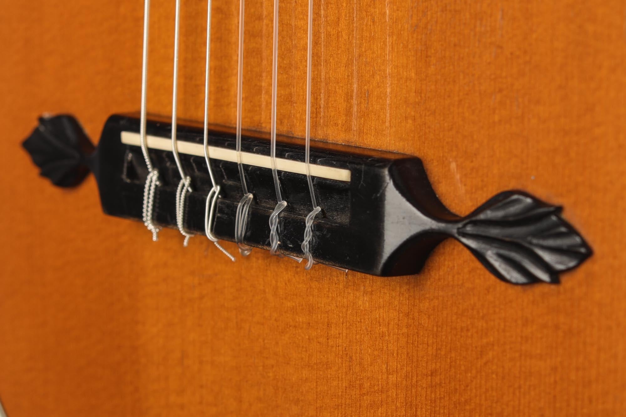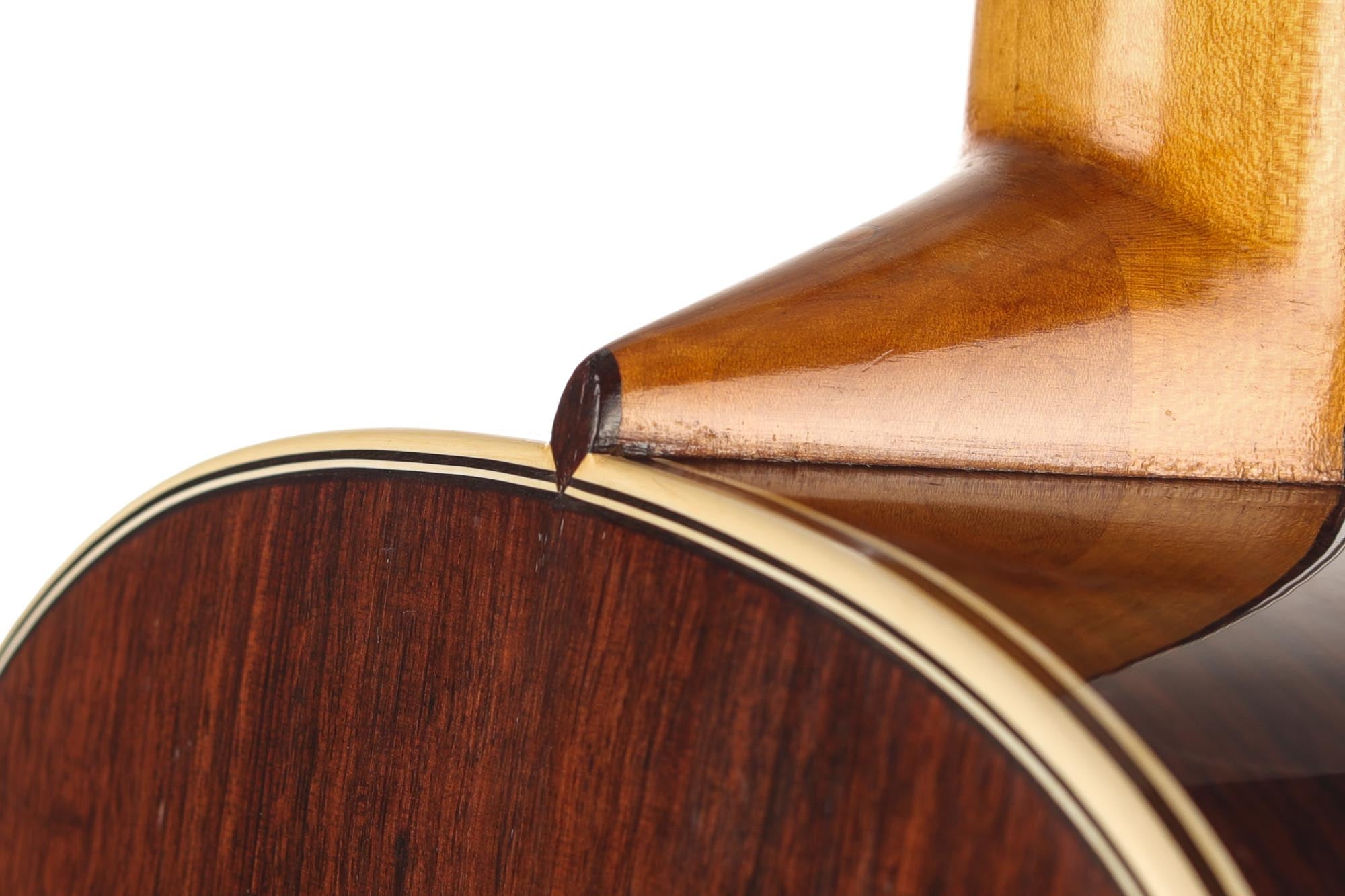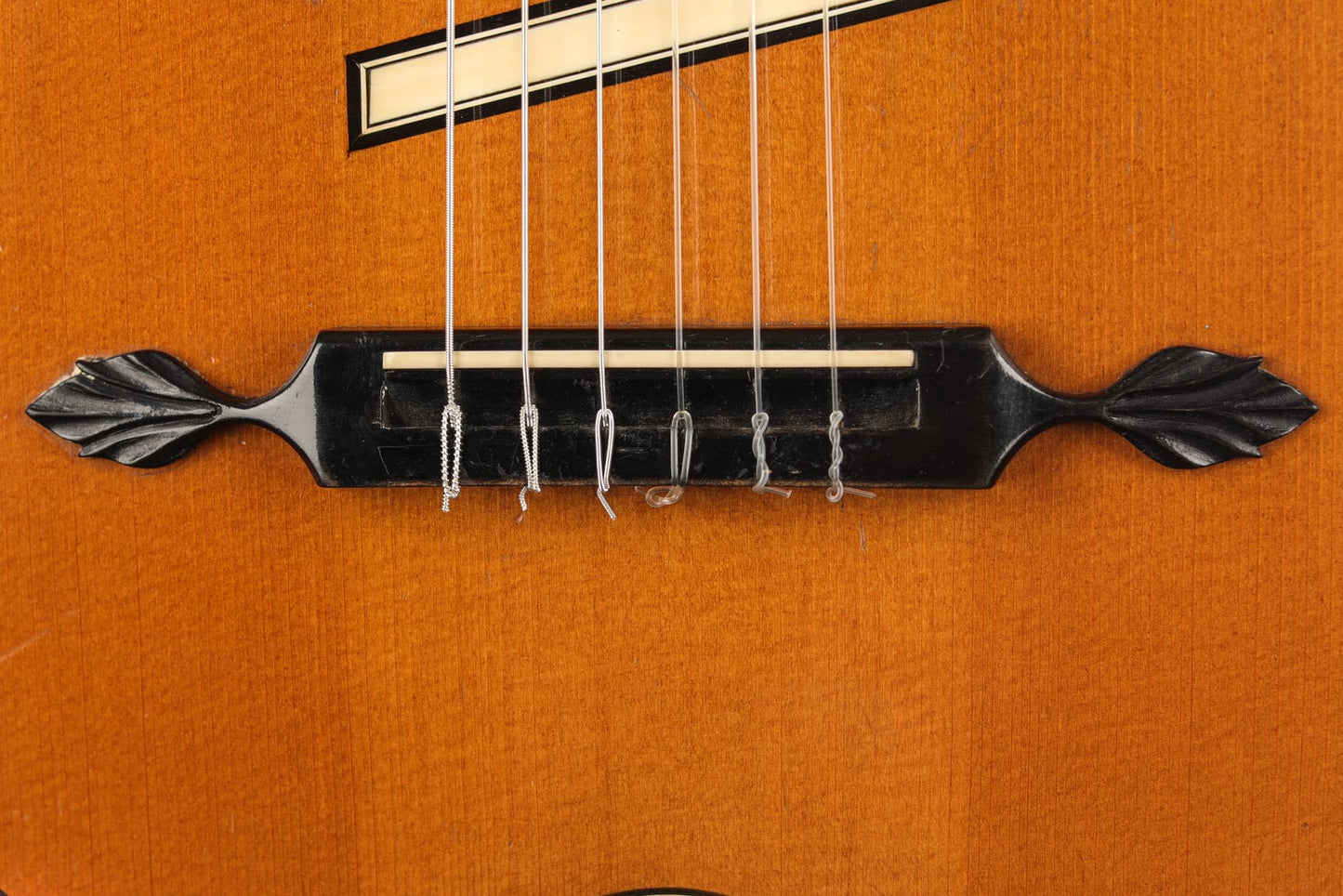 Die Bespielbarkeit dieser Gitarre ist perfekt und ihr Klang bemerkenswert. Hier beweist Weissgerber das Ausmaß seiner Genialität, indem er eine vergleichsweise kleine Gitarre mit einem so großen Klang geschaffen hat. Die Töne sind klar und präzise, mit außergewöhnlicher Feinheit und Ausgewogenheit. Darüber hinaus ist dieses Instrument in perfektem Spielzustand und bietet dem Gitarristen große Spielfreude mit reichen Klangfarben und einem einzigartigen Charakter. Schließlich befindet es sich in einem hervorragenden Zustand für sein 100-jähriges Jubiläum in diesem Jahr und weist nur zwei perfekt reparierte Risse an der Decke und zwei an den Zargen auf. Die Wirbel sind original und in perfektem Zustand, und diese Gitarre wird mit ihrem original passenden Koffer geliefert.