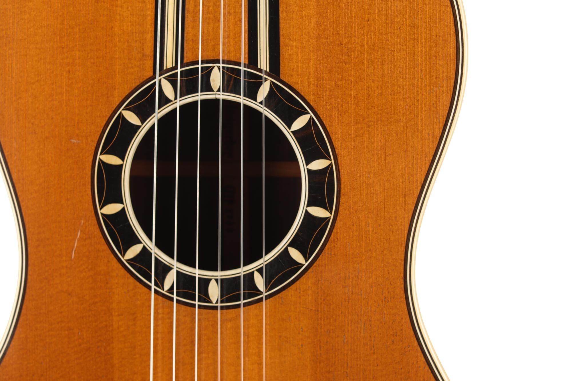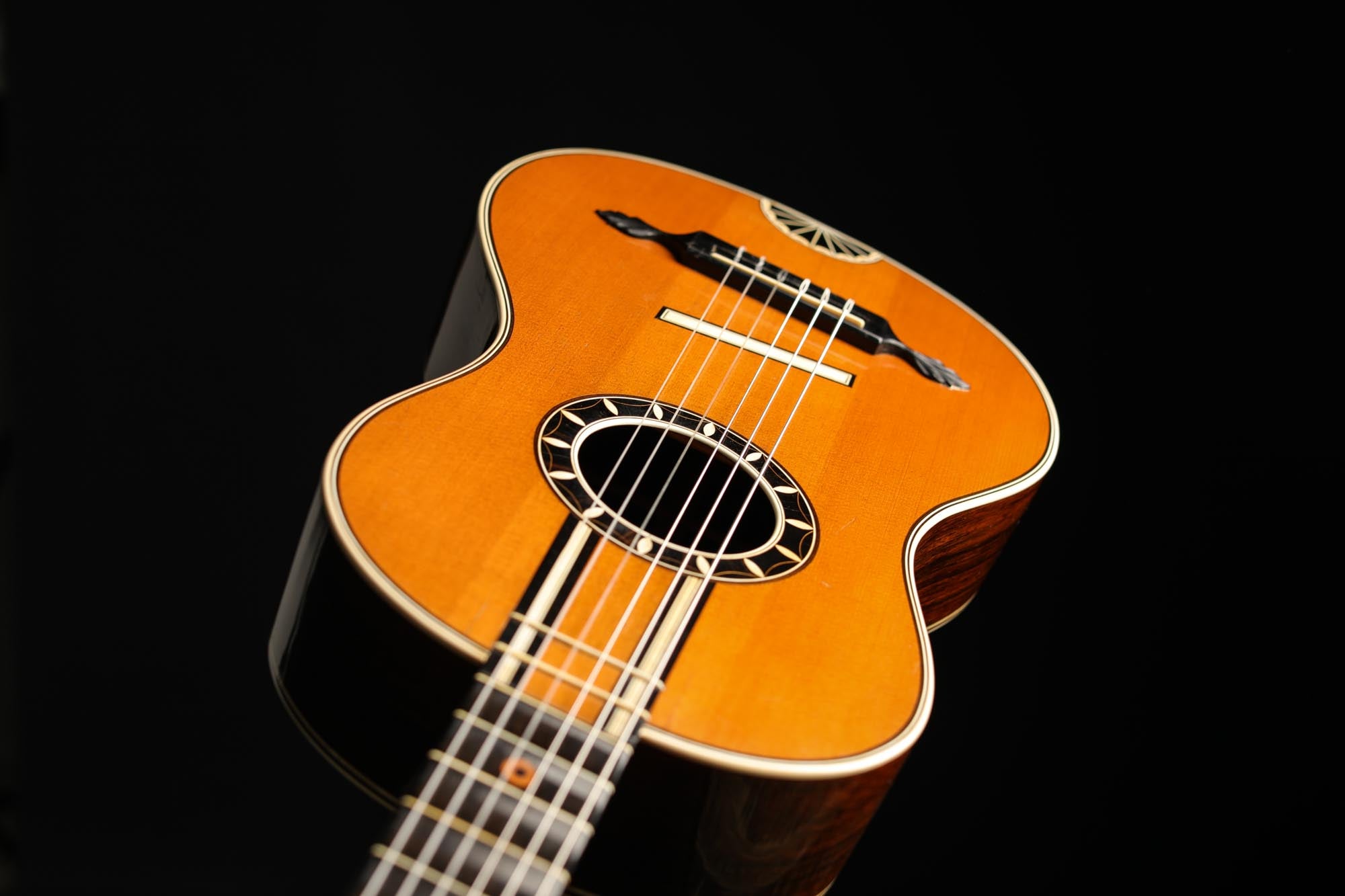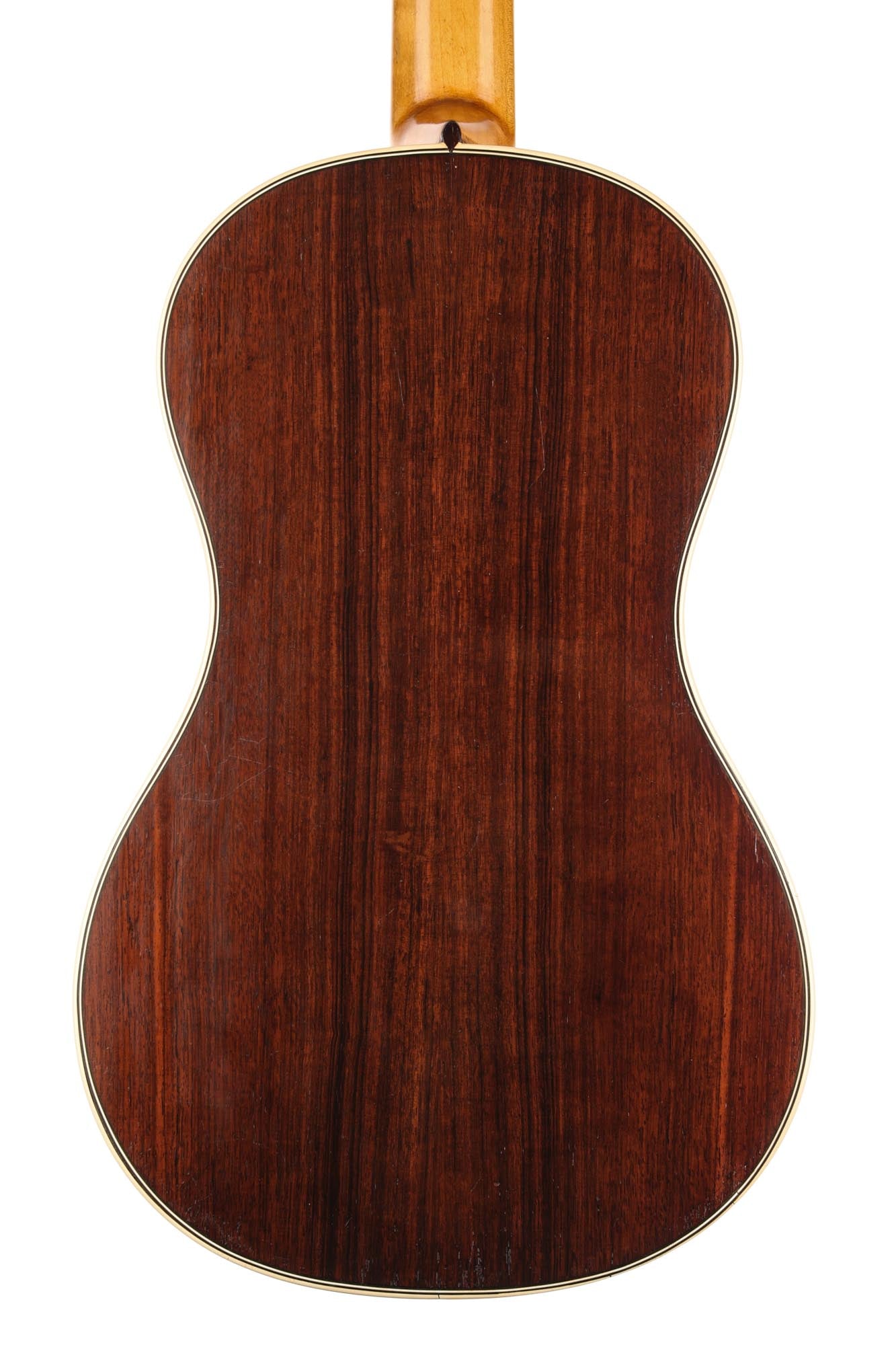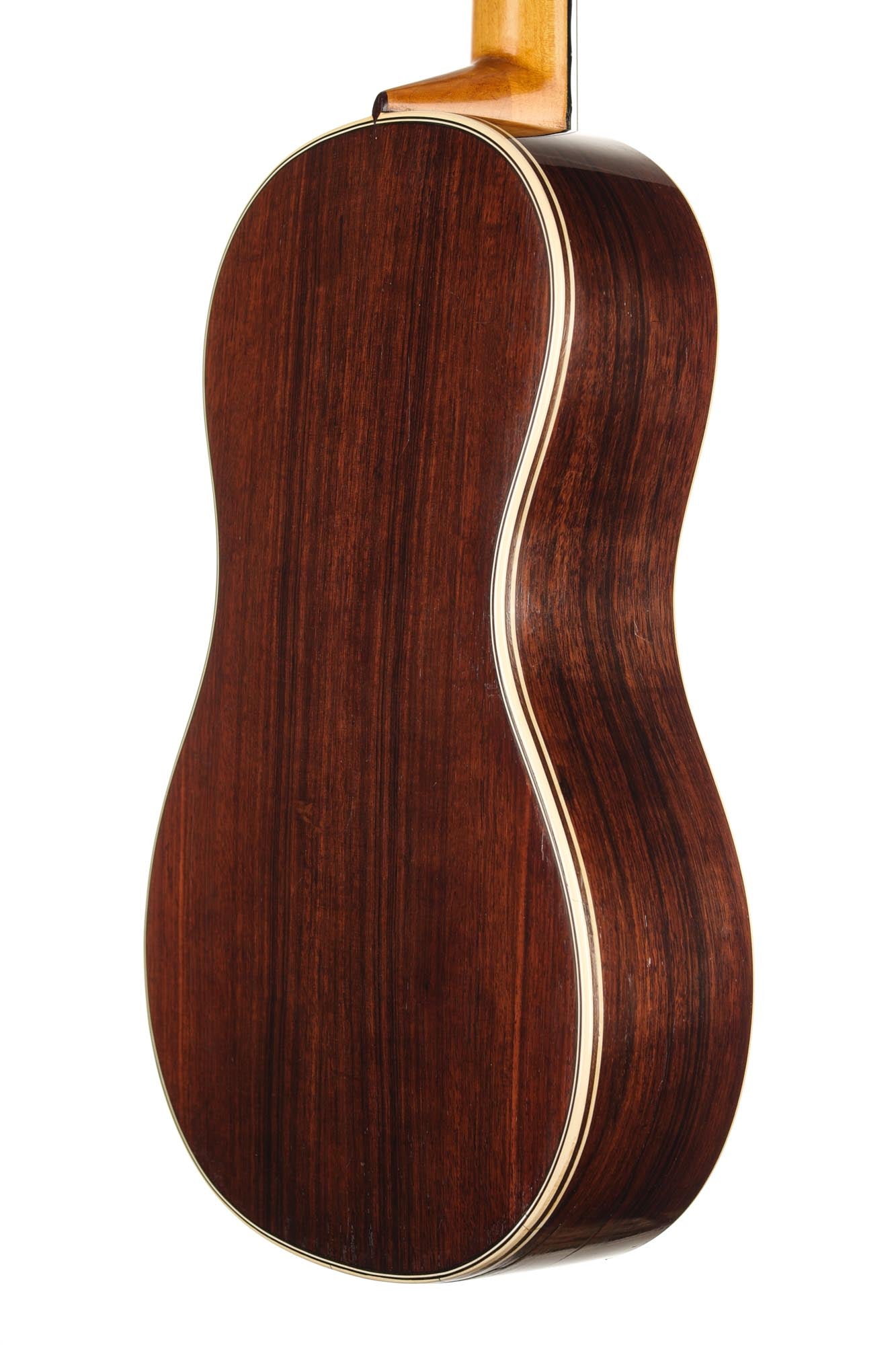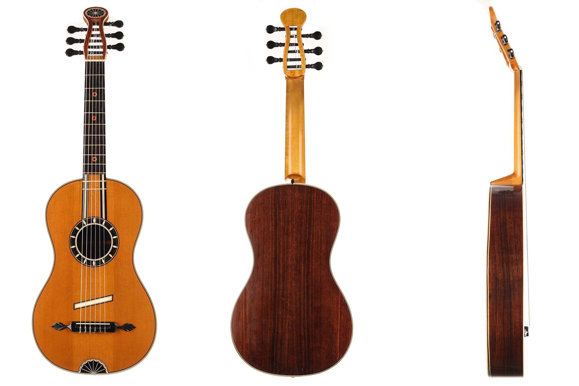 Richard Jacob Weissgerber baute diese prächtige Gitarre 1920 nach dem Vorbild eines 1804 von Johann Knößing gebauten Modells. Er verwendete für dieses Gitarre die besten Materialien, wählte ein wunderschönes Fichtenholz für die Decke und herrliches Palisanderholz für den Boden und die Zargen. Dieses sehr reich verzierte Modell weist eine Fülle subtiler Details auf, die es absolut einzigartig und wertig machen.