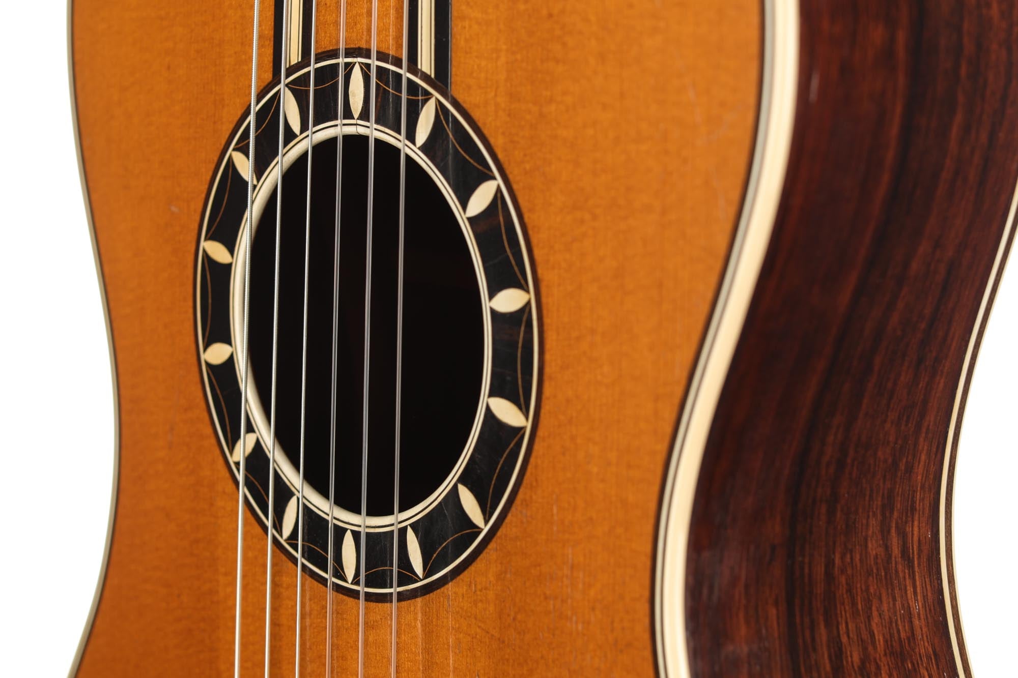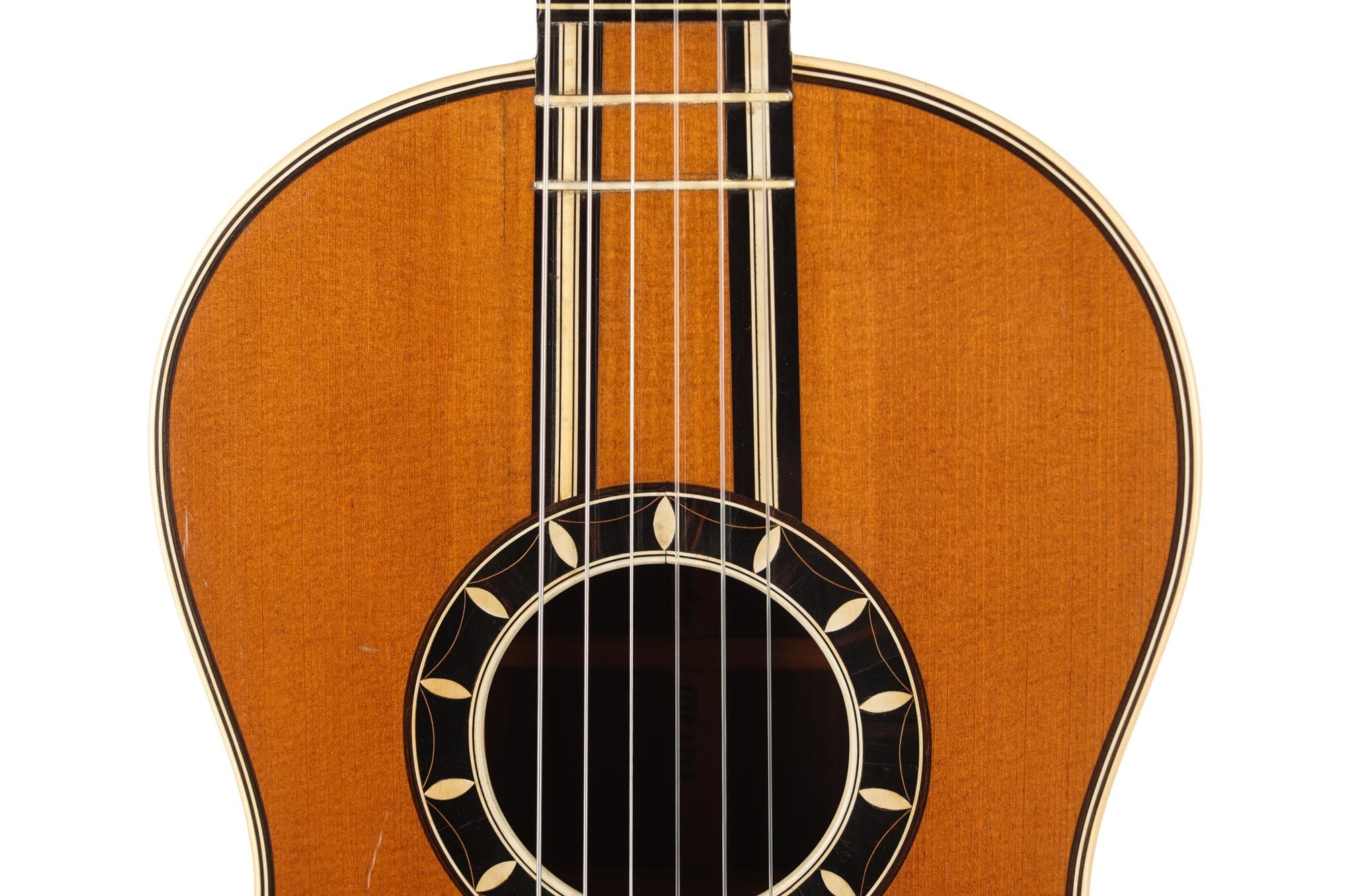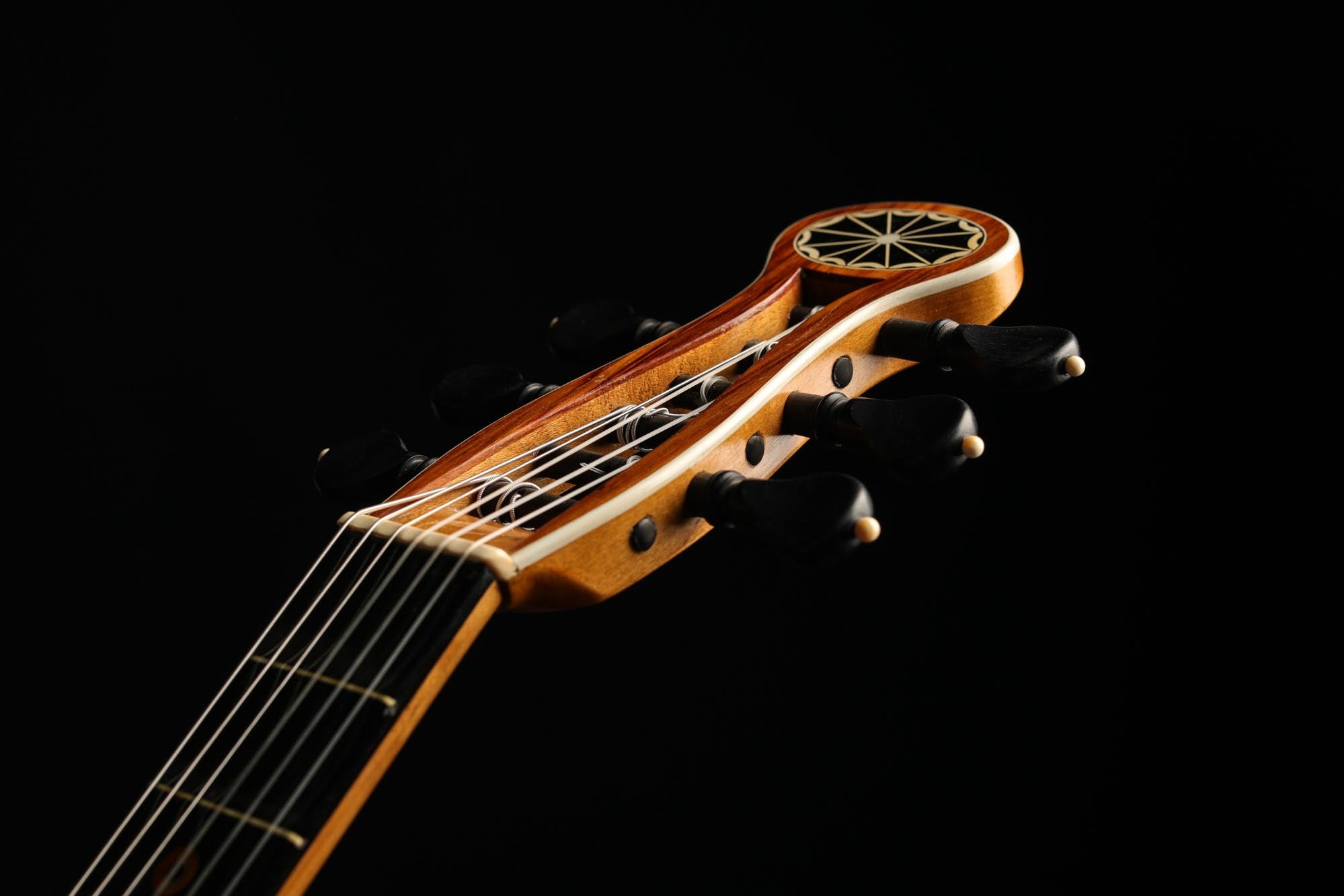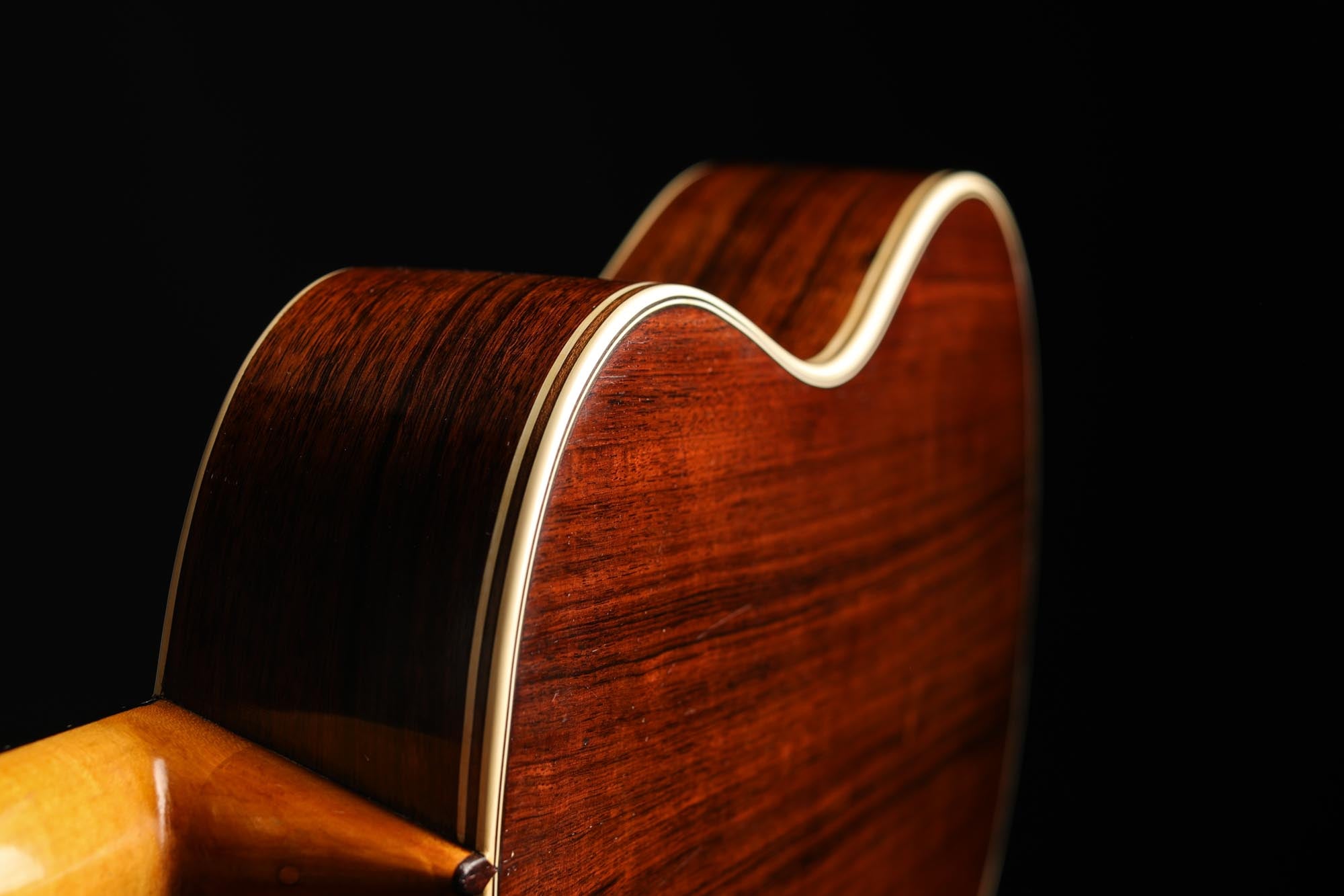 Richard Jacob Weissgerber baute diese prächtige Gitarre 1920 nach dem Vorbild eines 1804 von Johann Knößing gebauten Modells. Er verwendete für dieses Gitarre die besten Materialien, wählte ein wunderschönes Fichtenholz für die Decke und herrliches Palisanderholz für den Boden und die Zargen. Dieses sehr reich verzierte Modell weist eine Fülle subtiler Details auf, die es absolut einzigartig und wertig machen.
