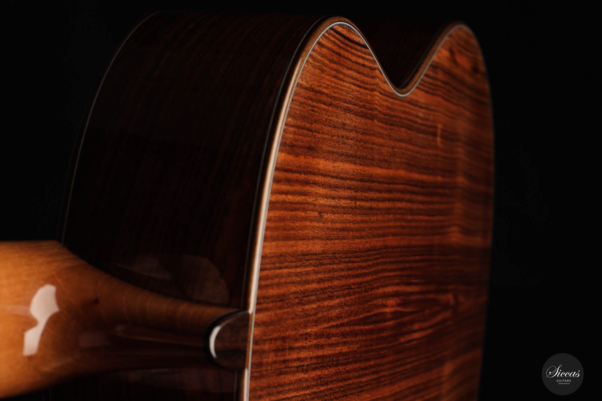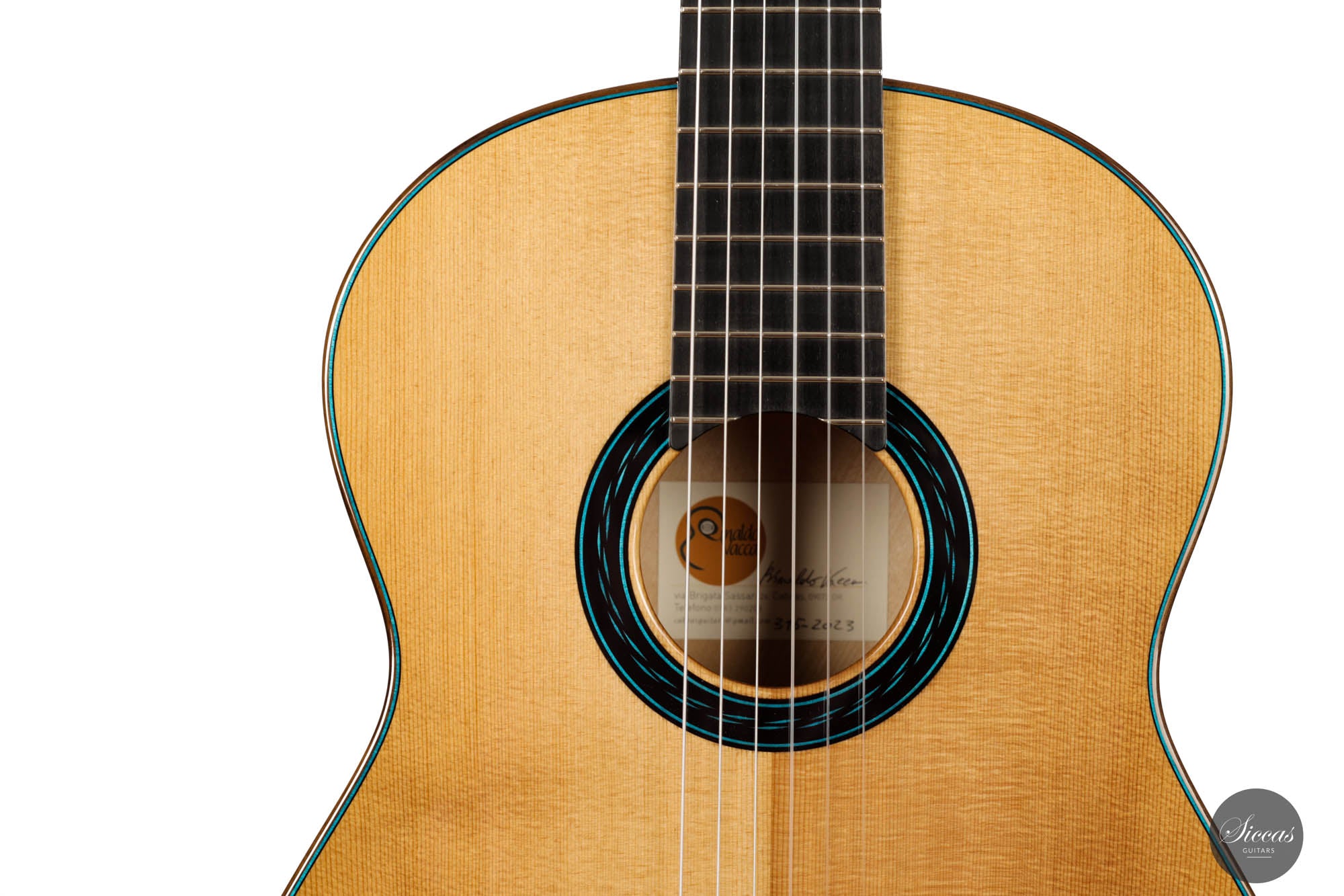 Hier präsentieren wir die 2023 Rinaldo Vacca 64 cm Gitarre, ein wahres Zeugnis der exquisiten Kunstfertigkeit der angesehenen italienischen Gitarrenbauer. Diese Gitarre entstammt den Händen von Rinaldo Vacca, einem weltweit anerkannten Meister-Luthier, der seine Fähigkeiten über Jahre hinweg verfeinert hat, um die einzigartige Alchemie des traditionellen Gitarrenbaus zu perfektionieren. Ohne den Einsatz von Karbon oder Balsaholz gebaut, ist diese Gitarre ein Wunderwerk der akustischen Technik. Die Gitarre erzeugt ein kraftvolles Volumen, das die rohe, unverfälschte Kraft ihres natürlichen Klangs nutzt. Jedes Zupfen der Saite erzeugt einen reichen, authentischen Ton, der jeden Raum mit seiner harmonischen Präsenz erfüllt. Die Rinaldo Vacca Gitarre von 2023 ist nicht nur ein Musikinstrument, sondern auch ein optisches Meisterwerk. Sie zeigt eine wunderschöne Fichtendecke, die einen zeitlosen Charme ausstrahlt, kontrastiert durch die dunkleren Töne von indischem Palisander für Rücken und Zargen, innen verstärkt mit spanischer Zypresse. Diese Holzkombination verleiht dem Instrument eine organische Ästhetik, die an die klassischen Gitarren vergangener Zeiten erinnert. Die Haltbarkeit wird durch ein Lackfinish sichergestellt, das vor den üblichen Gebrauchsspuren des leidenschaftlichen Spielens schützt. Diese Schutzschicht erhält das atemberaubende Aussehen der Gitarre und bewahrt ihre hervorragenden klanglichen Eigenschaften über die Zeit. Vor allem ist die Bespielbarkeit dieser Gitarre hervorragend. Die Länge von 64 cm bietet eine komfortable Handhabung und leichten Zugang zu allen Bünden. Dies ermöglicht es den Musikern, ihre Musik vielseitig zu interpretieren und ermutigt zur Erforschung und Innovation ohne Grenzen. Ob schnelle Arpeggios, komplexe Akkordformen oder komplexe Fingerstyle-Passagen, diese Gitarre ist ein treuer Begleiter auf Ihrer musikalischen Reise. Die Rinaldo Vacca 64 cm Gitarre von 2023 ist wahrhaftig eine Schnittstelle von Tradition und Innovation. Es handelt sich nicht nur um ein Instrument, sondern um ein Erlebnis, das alle Sinne anspricht und die Grenzen der Gitarrenperformance neu definiert.