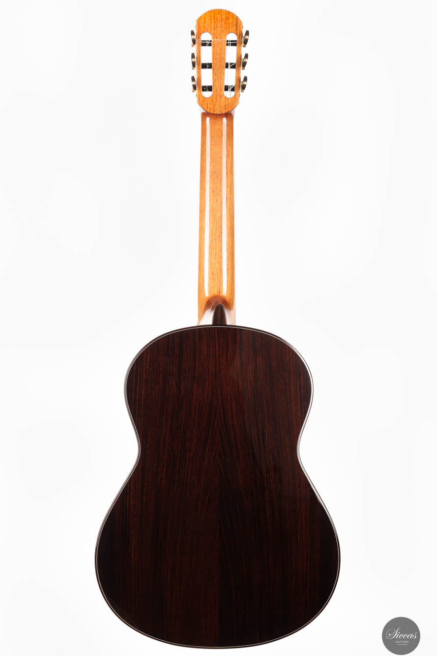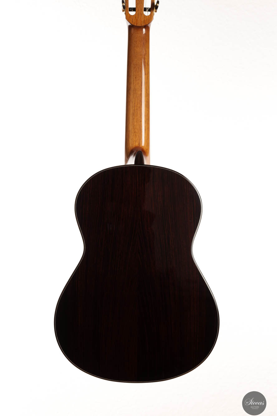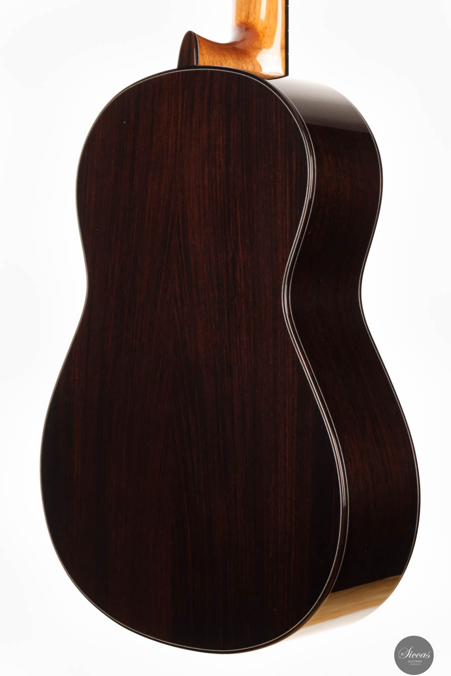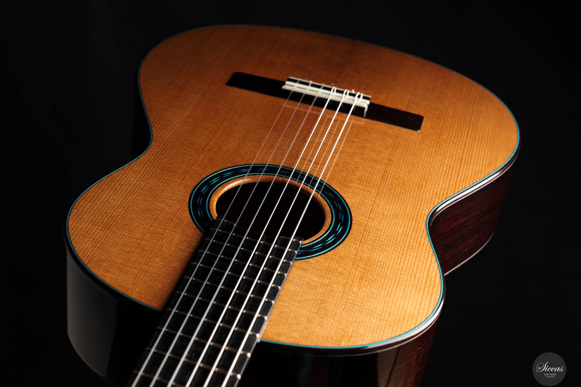 Die Ästhetik dieser Gitarre wird durch ihre Spielbarkeit ergänzt, wobei die Mensurlänge von 64 cm ein komfortables und ergonomisches Erlebnis für Gitarristen aller Stile bietet. Die durchdachte Konstruktion ermöglicht eine mühelose Navigation über das Griffbrett und erleichtert eine breite Palette musikalischer Ausdrücke, von zartem Fingerpicking bis zu robusten Schlagmustern. Die Lackierung erhöht nicht nur die Widerstandsfähigkeit der Gitarre gegen die Strapazen häufigen Gebrauchs, sondern dient auch dazu, ihre Schönheit und akustische Integrität über die Zeit zu bewahren. Für Musiker, die eine Mischung aus traditionellem Handwerk, außergewöhnlicher Klangqualität und einfacher Spielbarkeit suchen, sticht die Gitarre von Rinaldo Vacca aus dem Jahr 2024 als ein Instrument hervor, das Kreativität inspiriert und die Grenzen musikalischer Erkundung erweitert. Sie ist ein Zeugnis für Vaccas Können und Hingabe und bietet eine nahtlose Fusion aus Kunstfertigkeit und Funktionalität, die zweifellos das Repertoire jedes ernsthaften Gitarristen bereichern wird.