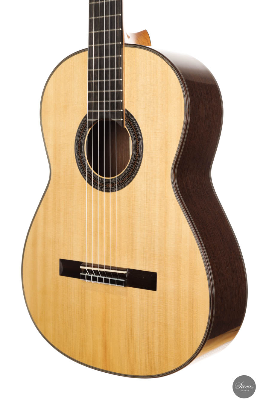 Die klassische Gitarre mit ihren weichen Nylonsaiten und ihrem charakteristischen Timbre ist zum Symbol der Kammermusik, der spanischen Tradition und des Konzertrepertoires geworden. Ihre moderne Form prägte Antonio de Torres im 19. Jahrhundert, indem er den Standard für Korpus, Fächerbeleistung und die 65-Zentimeter-Mensur setzte, die bis heute verwendet werden. Instrumente dieser Kategorie eröffnen eine reiche Palette von den feinen romantischen Miniaturen Tárregas bis zu den majestätischen Konzerten Rodrigos. Hier finden Sie Gitarren, die historische Kontinuität bewahren und zugleich zu neuen Interpretationen anregen.