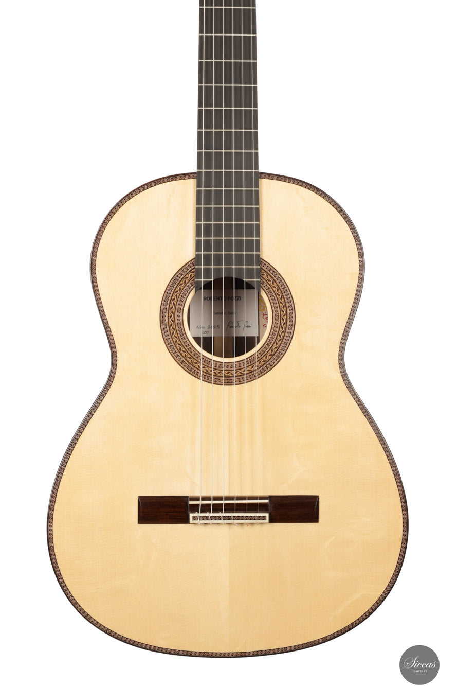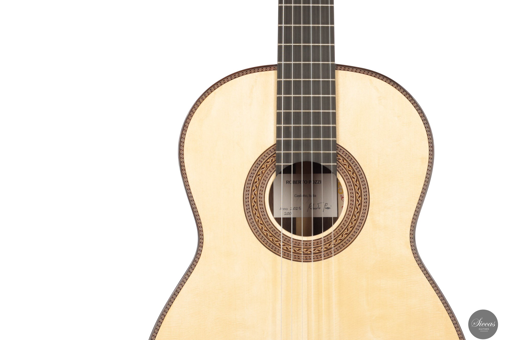 Roberto Pozzi wurde 1970 in Mariano Comense, Italien, geboren. Schon früh entwickelte er ein starkes Interesse am Bau von Saiteninstrumenten und studierte an der Civica Scuola di Liuteria in Mailand. Während seiner Ausbildung konzentrierte er sich auf den Nachbau historischer Gitarren von Antonio de Torres, Enrique Garcia und Pietro Gallinotti – einflussreiche Meister, die seinen handwerklichen Stil maßgeblich prägten. Heute baut Roberto Pozzi Gitarren, die tief in der spanischen Tradition verwurzelt sind und zugleich eine unverkennbare ästhetische und klangliche Handschrift tragen.