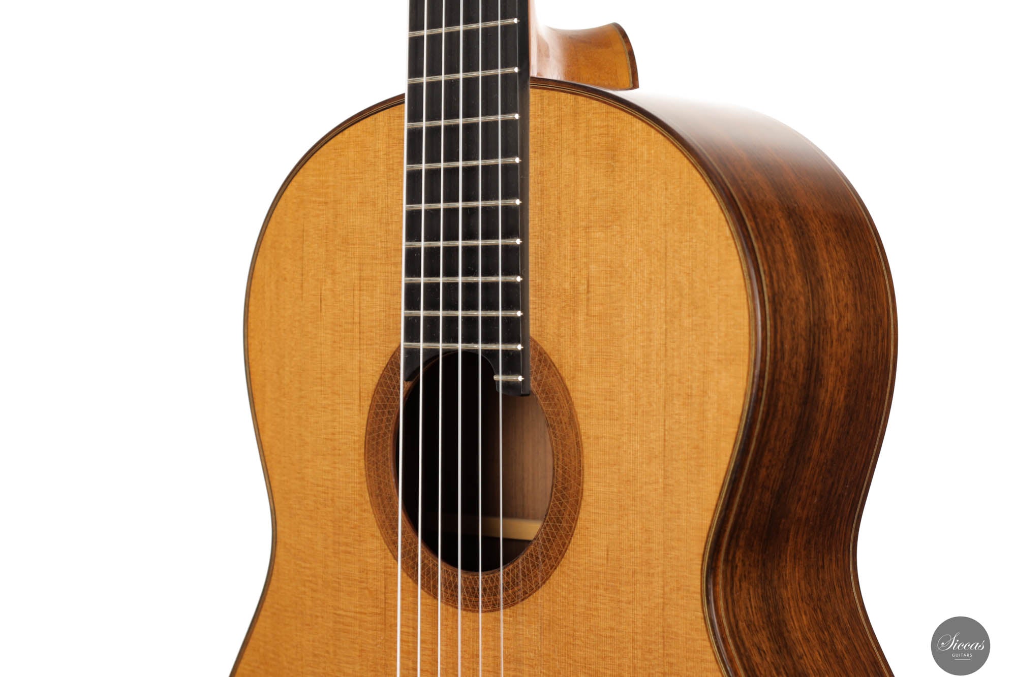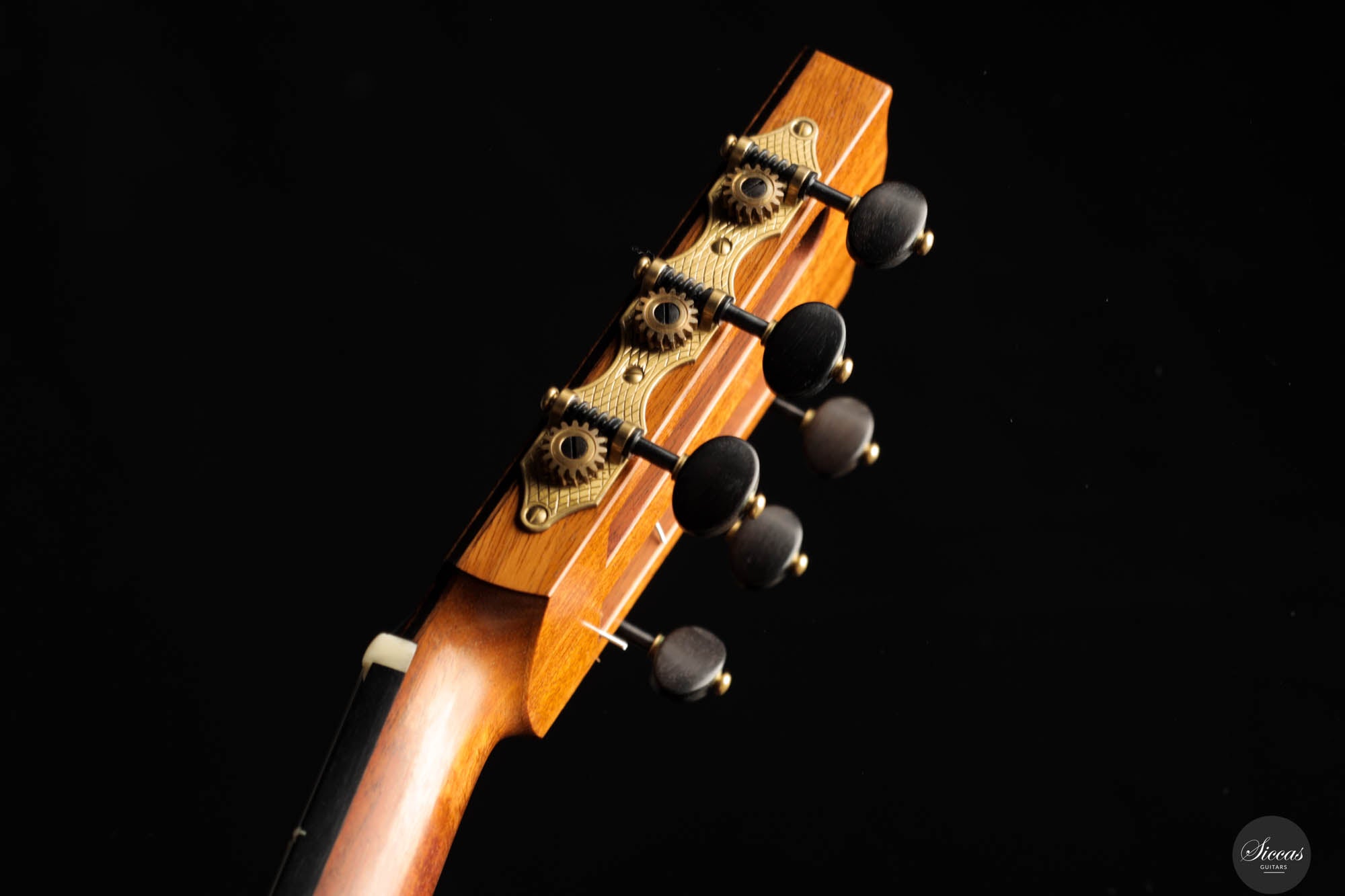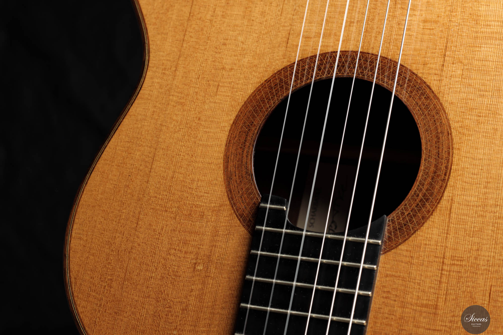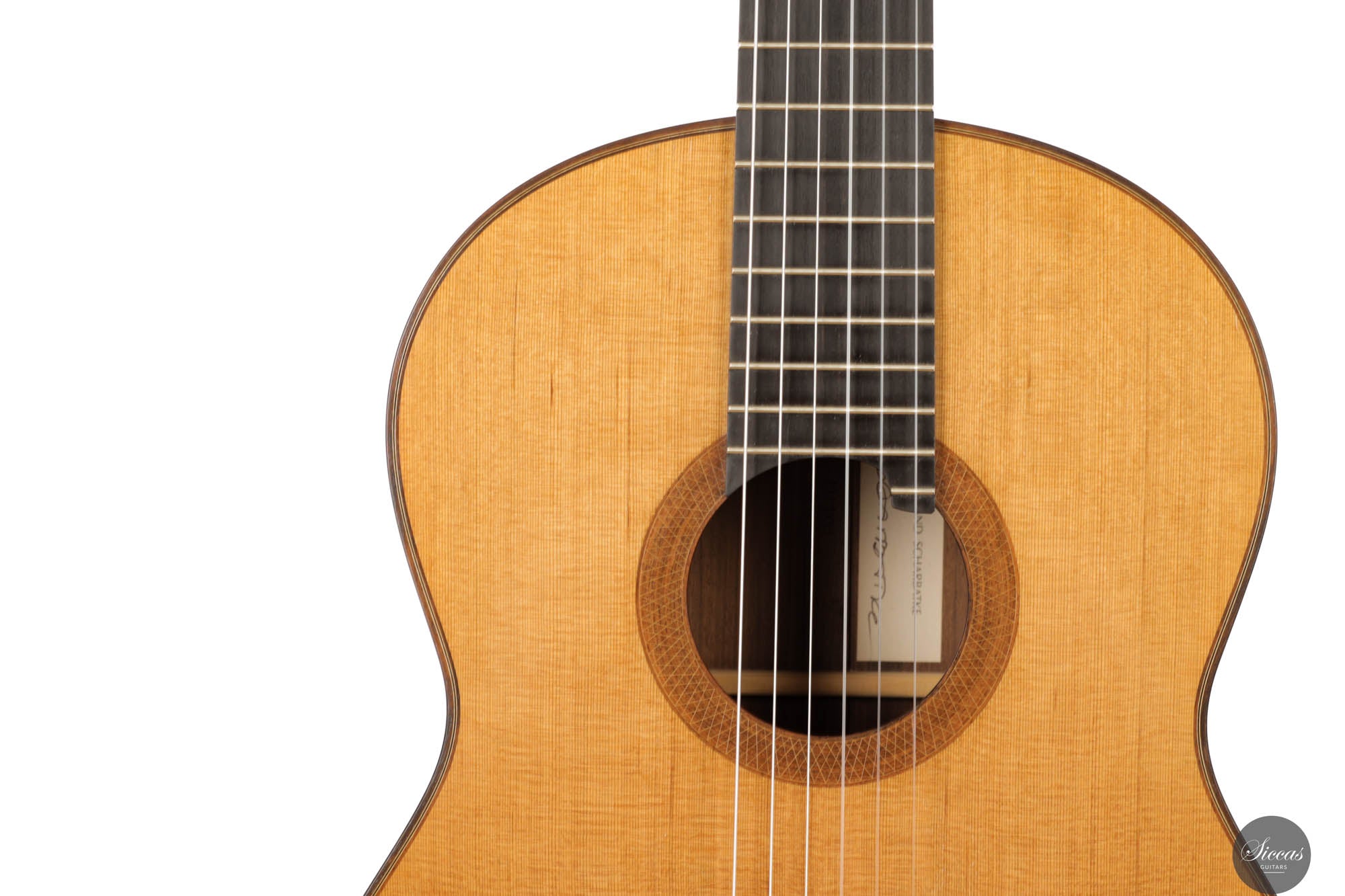 Klanglich ist diese Gitarre von Roland Scharbatke nichts weniger als phänomenal und wird den Erwartungen des Gitarrenbauers gerecht. Basierend auf einem traditionellen 7-Fächer-Verstrebungssystem, verfügt die Gitarre über eine kraftvolle Lautstärke, die mühelos jeden Raum durchdringt und die Zuhörer mit ihrer kühnen und ausdrucksstarken Stimme fesselt. Diese bemerkenswerte Projektion opfert weder die Klarheit noch die Tiefe des Klangs, was sie zu einem außergewöhnlichen Instrument für Interpreten macht, die ihr Publikum mit den nuancierten Tönen der klassischen Gitarrenmusik fesseln möchten. Die Kombination aus ihrem einzigartigen Design, überlegener Materialqualität und außergewöhnlichem Klang macht diese 2016er Scharbatke-Gitarre zu einem begehrten Stück für Musiker und Sammler gleichermaßen und bietet sowohl ein visuell beeindruckendes als auch klanglich reiches Erlebnis, das die Kunstfertigkeit und das Können ihres Schöpfers unterstreicht.