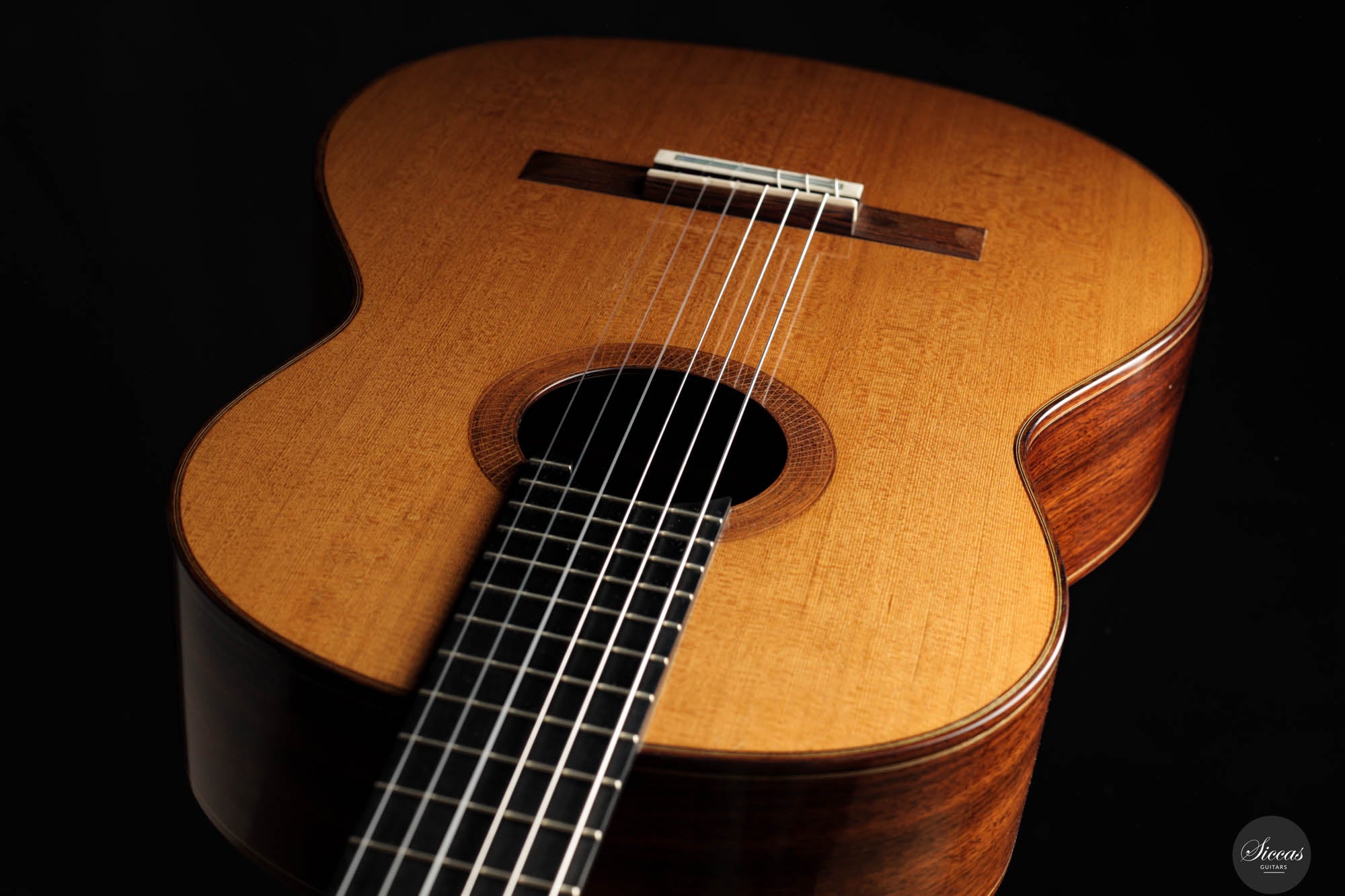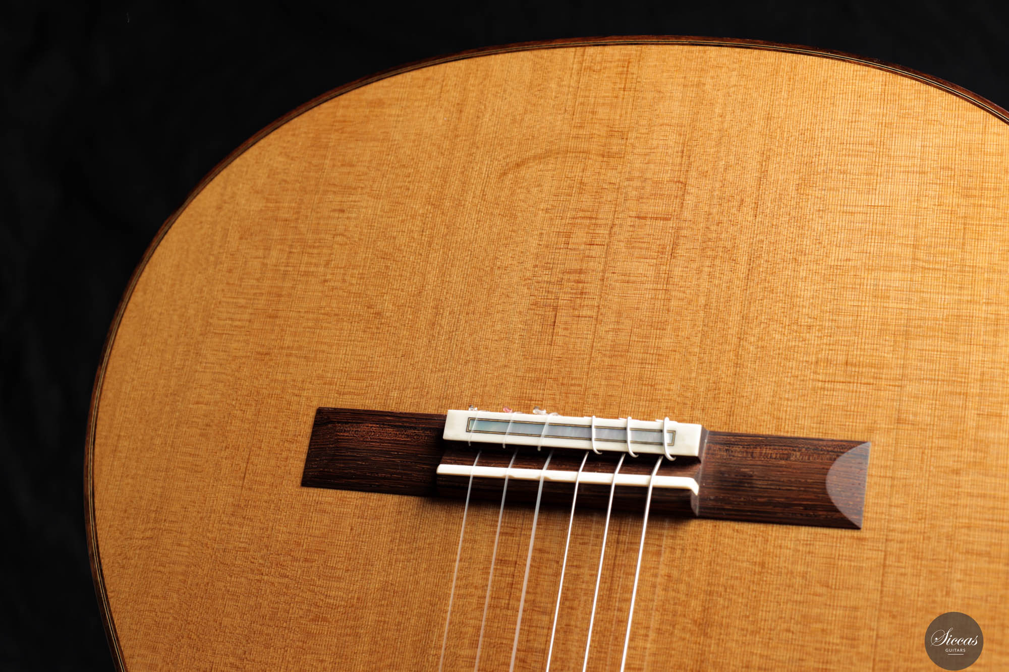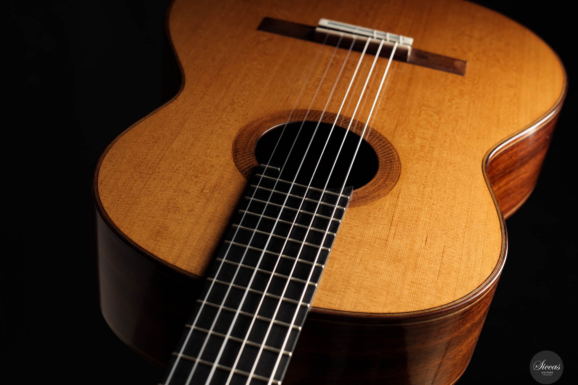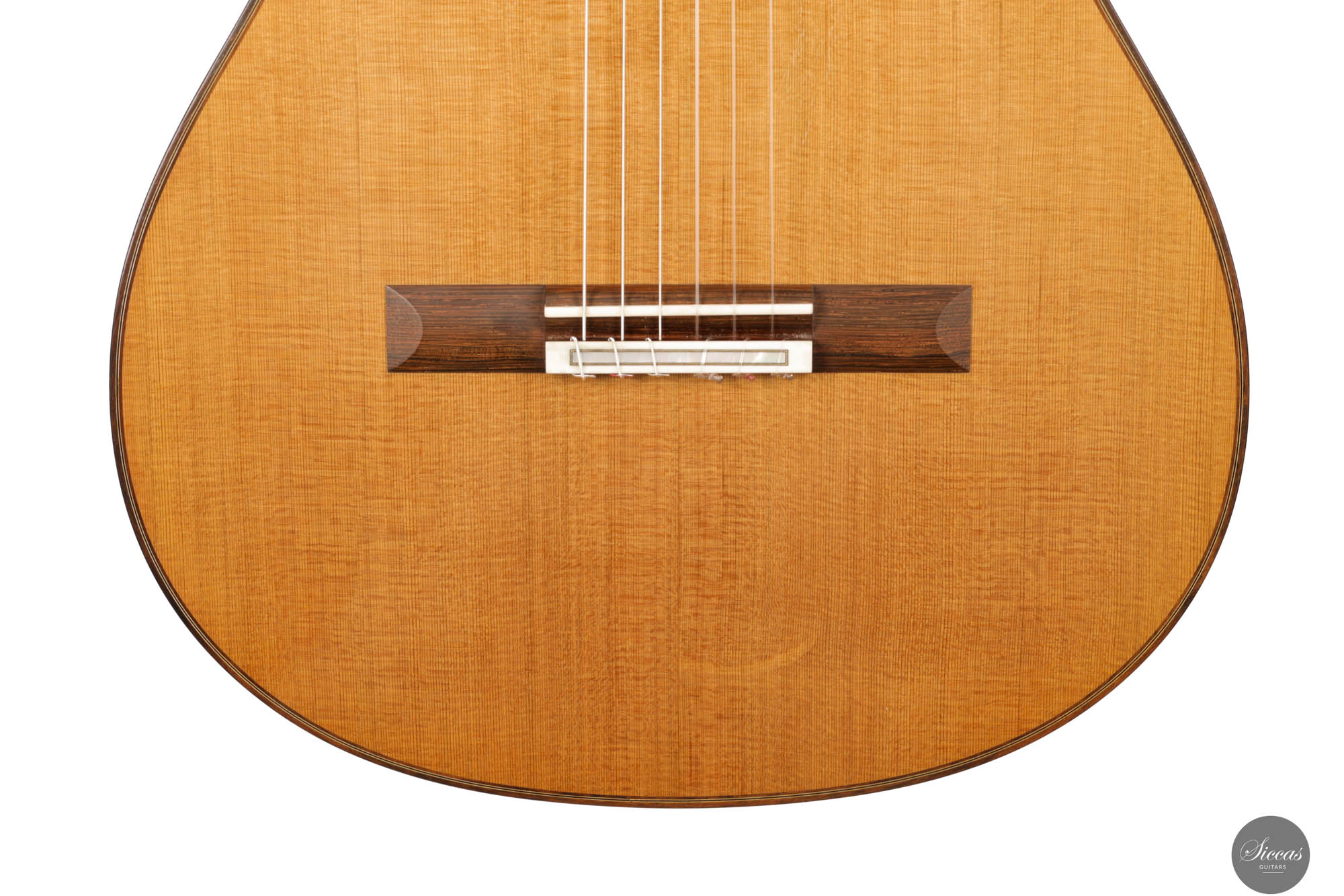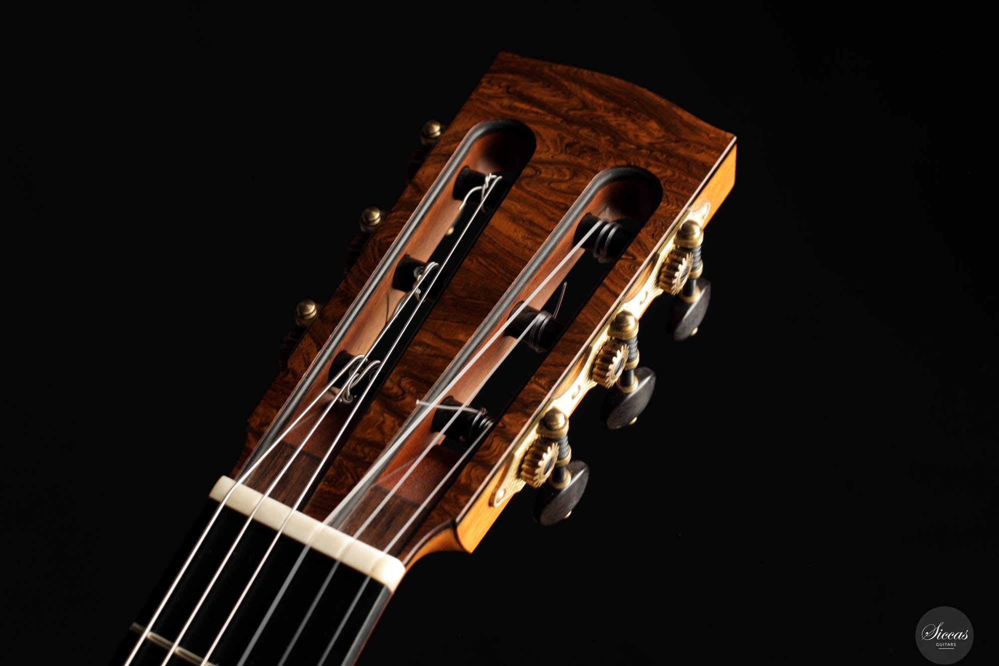 Klanglich ist diese Gitarre von Roland Scharbatke nichts weniger als phänomenal und wird den Erwartungen des Gitarrenbauers gerecht. Basierend auf einem traditionellen 7-Fächer-Verstrebungssystem, verfügt die Gitarre über eine kraftvolle Lautstärke, die mühelos jeden Raum durchdringt und die Zuhörer mit ihrer kühnen und ausdrucksstarken Stimme fesselt. Diese bemerkenswerte Projektion opfert weder die Klarheit noch die Tiefe des Klangs, was sie zu einem außergewöhnlichen Instrument für Interpreten macht, die ihr Publikum mit den nuancierten Tönen der klassischen Gitarrenmusik fesseln möchten. Die Kombination aus ihrem einzigartigen Design, überlegener Materialqualität und außergewöhnlichem Klang macht diese 2016er Scharbatke-Gitarre zu einem begehrten Stück für Musiker und Sammler gleichermaßen und bietet sowohl ein visuell beeindruckendes als auch klanglich reiches Erlebnis, das die Kunstfertigkeit und das Können ihres Schöpfers unterstreicht.