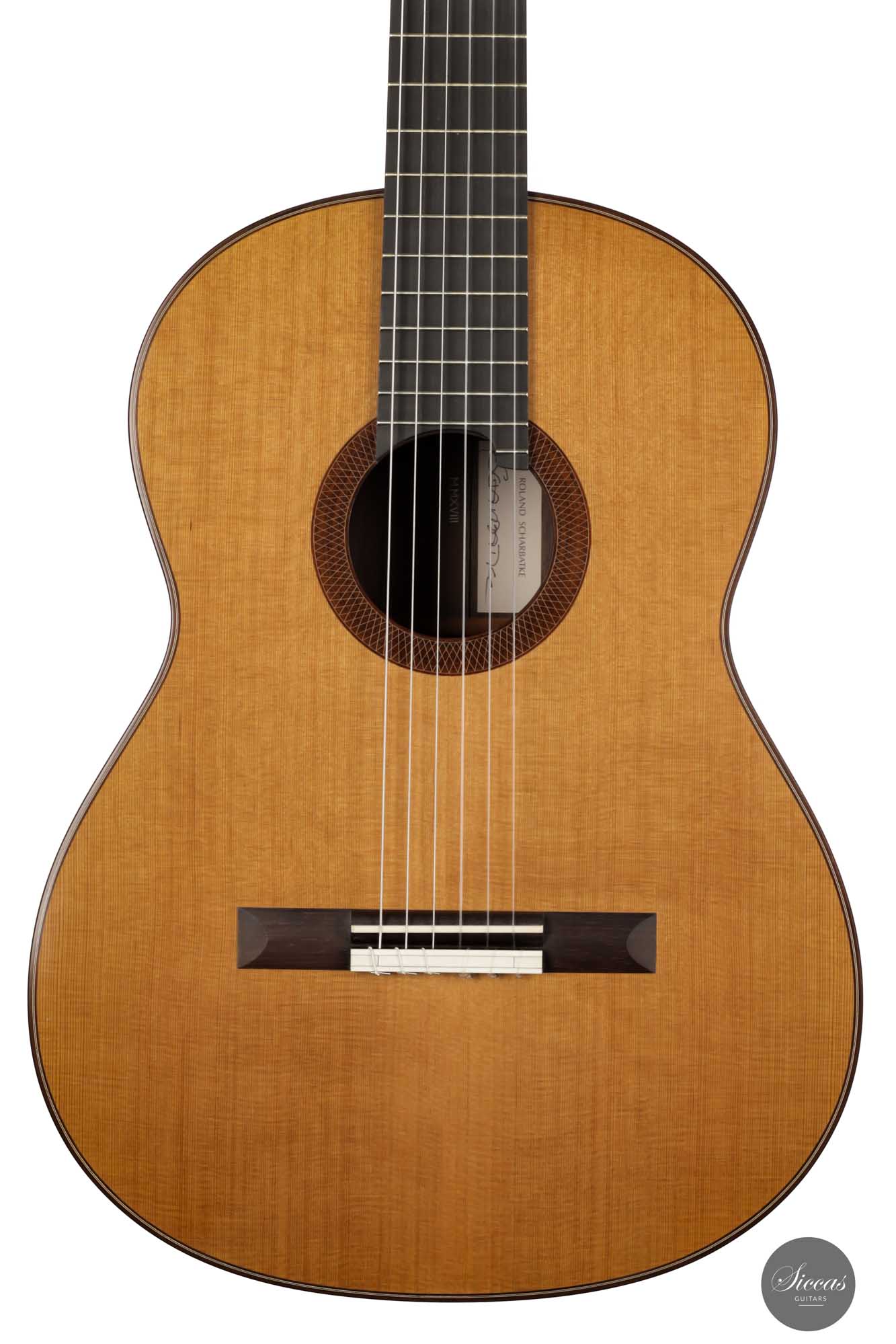 Roland Scharbatke baut seine Gitarren ausschließlich nach höchsten handwerklichen und ästhetischen Ansprüchen, Purismus ist sein Markenzeichen. Sein Sinn für Ästhetik drückt sich in der gesamten Gitarre aus, insbesondere in der Rosette und der Kopfplatte. Fasziniert vom japanischen Stilempfinden, den klaren Linien und der Schlichtheit, baut Roland Scharbatke seine Gitarren kompromisslos als Musikinstrument und Kunstwerk zugleich.