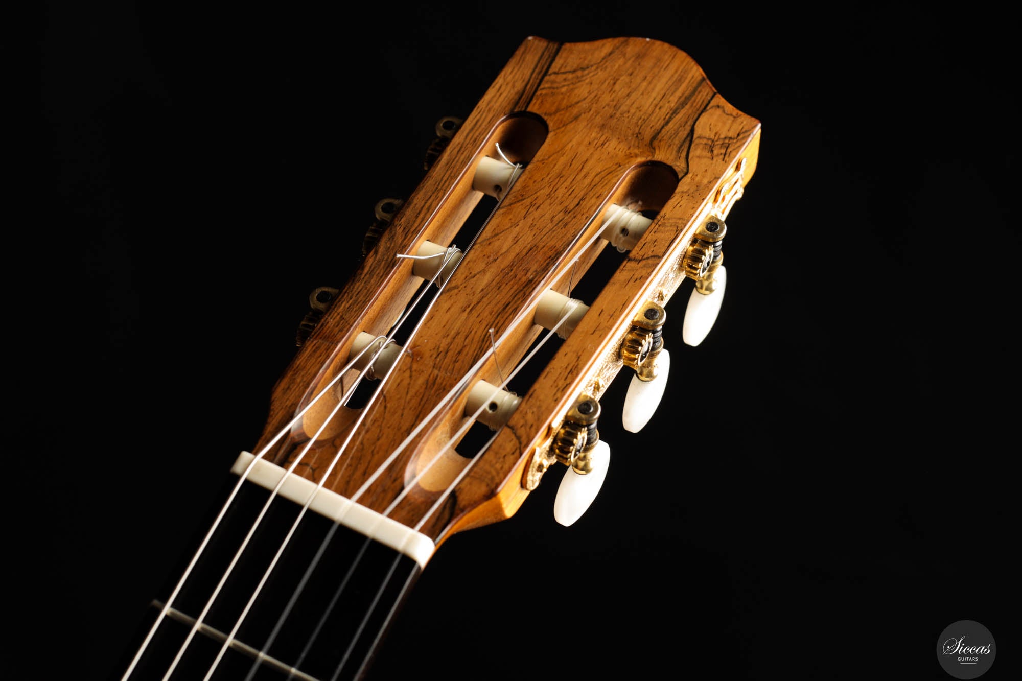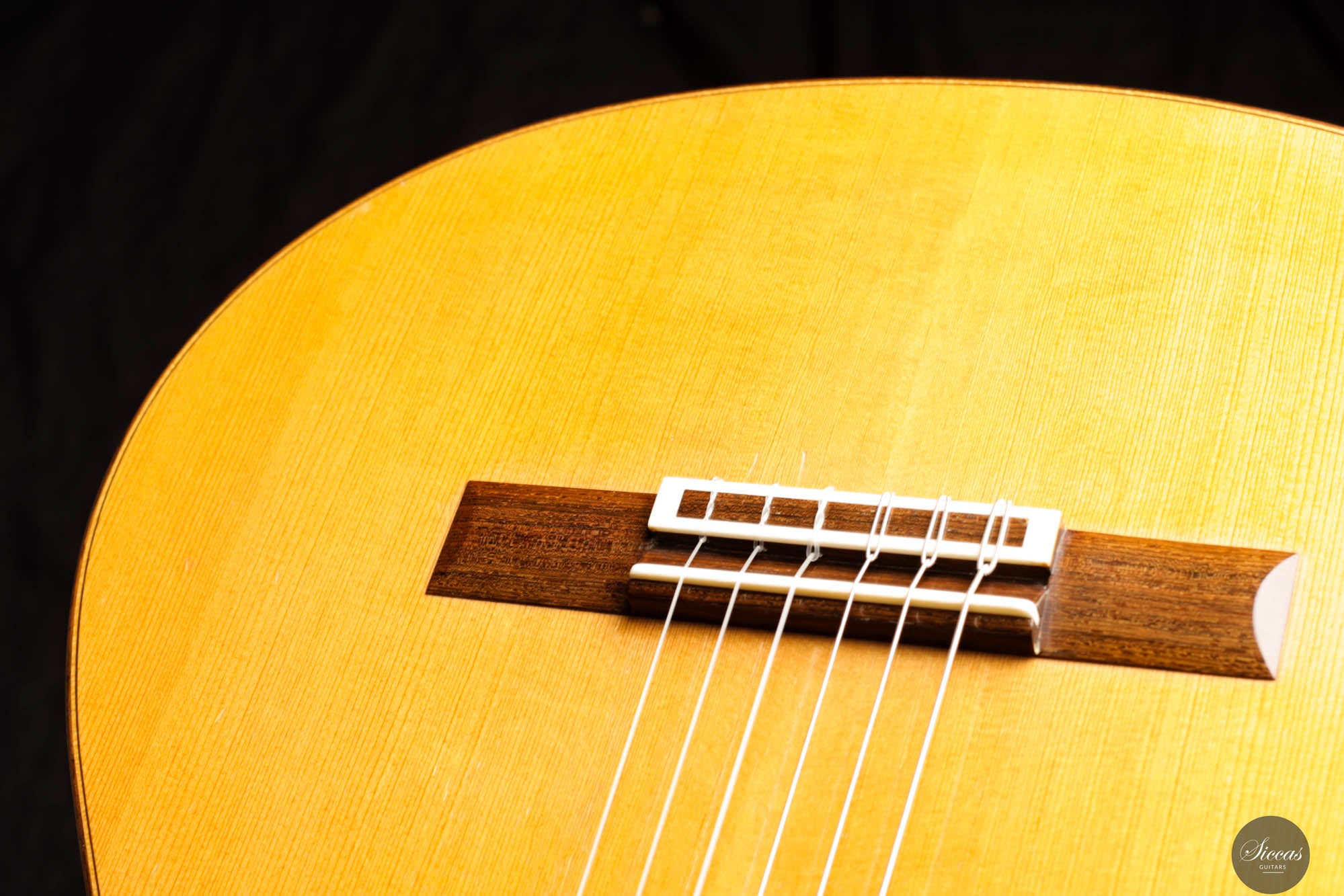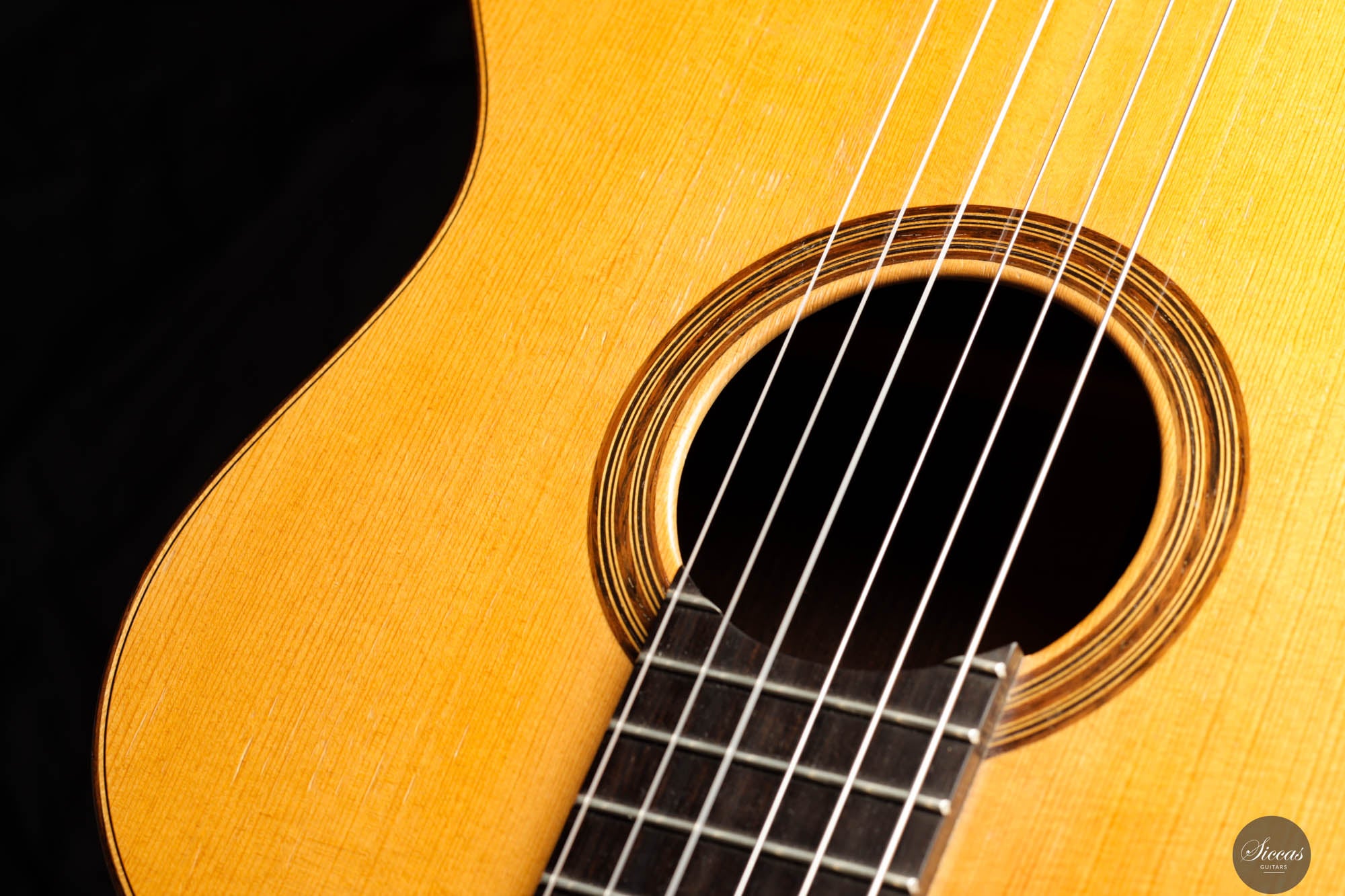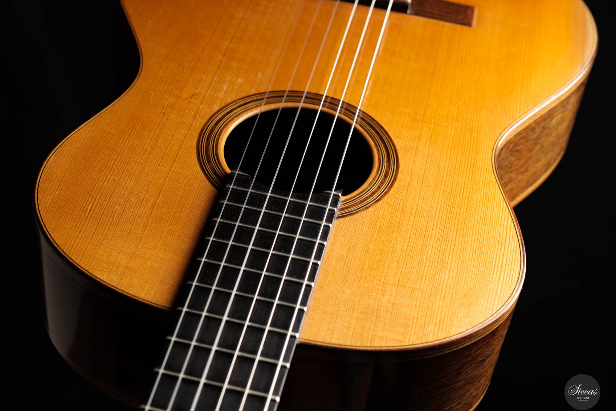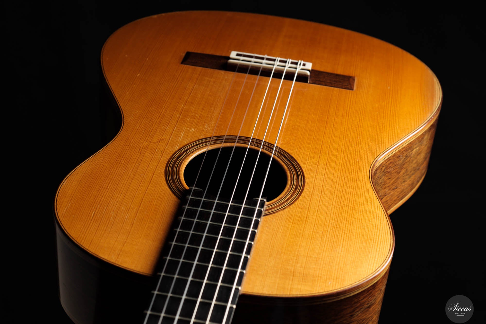 Dieses bemerkenswerte Instrument verbindet das reiche Erbe der spanischen Tradition mit der Präzision deutscher Ingenieurskunst und spiegelt Rolfs Status als einer der herausragendsten deutschen Gitarrenbauer wider. Es zeigt seine tiefe akustische Expertise und bietet beeindruckende Kraft, Spielbarkeit und eine verfeinerte Klangpalette. Die Höhen sind geschmeidig und äußerst reaktionsschnell, während der Korpus aus brasilianischem Palisander von seltener und außergewöhnlicher Qualität gefertigt ist, die heute nur schwer zu finden ist. In gutem Zustand zeigt die Gitarre Zeichen regelmäßigen Spielens, was ihren Charakter und Charme verstärkt. Die Kopfplatte weist zwei nicht durchgehende Risse auf, die rein kosmetisch sind und weder die strukturelle Integrität noch die Leistung der Gitarre beeinträchtigen.