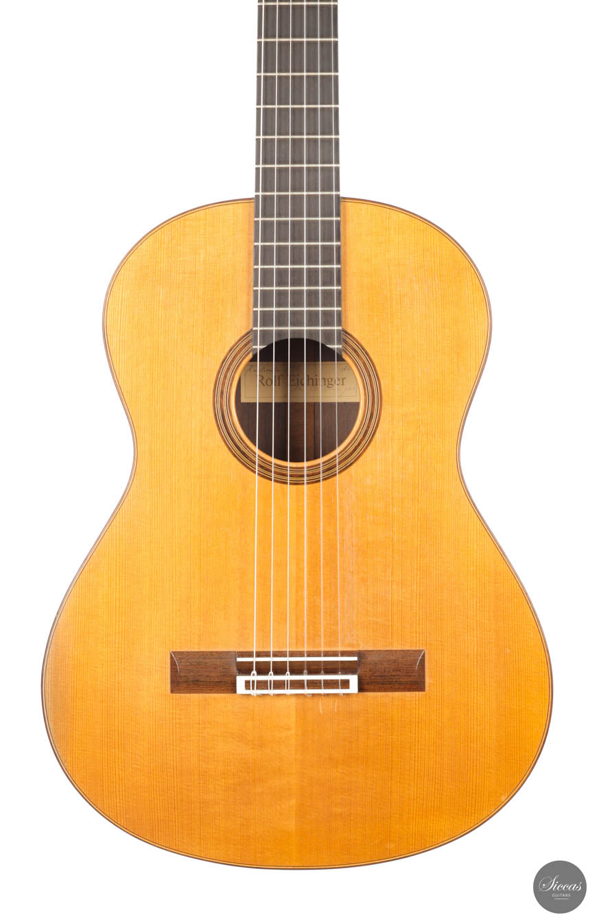 Rolf Eichinger wurde am 10. September 1944 in Stuttgart geboren. Als junger Mann studierte er Industriedesign. Mit zunehmendem Interesse am Gitarrenspiel erwies er sich als ausgezeichneter Gitarrist und arbeitete mehrere Jahre als Gitarrenlehrer an der Stuttgarter Musikschule. Auf ausgedehnten Reisen und Aufenthalten in Spanien, insbesondere in Andalusien, lernte er die Sprache und freundete sich mit einigen der besten Gitarrenbauer Granadas an, z.B. Antonio Marin Montero oder Jose Lopez Bellido. Rolf brachte von seinen Reisen für seine Schüler immer wieder Gitarren nach Deutschland mit. Die Nachfrage stieg so stark, dass er sich entschied, einen Gitarrenladen zu eröffnen. 1997 beschloss Rolf, nach Granada zu ziehen, wo seiner Meinung nach die bedeutendsten zeitgenössischen Meister des Gitarrenbaus lebten und von wo er die große Inspiration für sein eigenes Werk gewonnen hatte, um sich dort als Geigenbauer zu etablieren. Im Jahr 2007 erkrankte er schwer an Krebs und zog nach Salobrena an der Südküste Andalusiens. Dort starb er am 18. September 2009. Während seiner Zeit als Gitarrenbauer baute Rolf Eichinger rund 300 Instrumente.