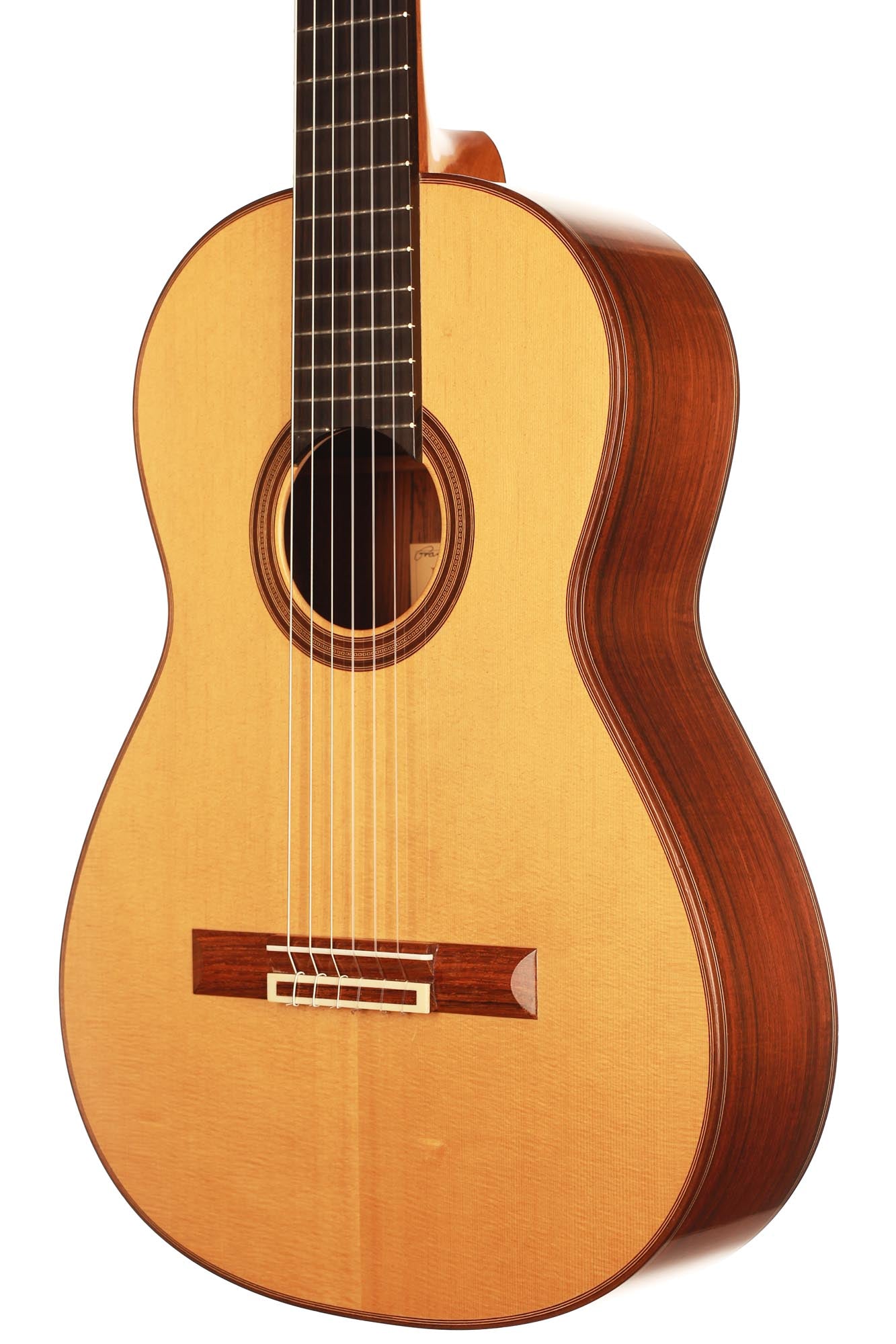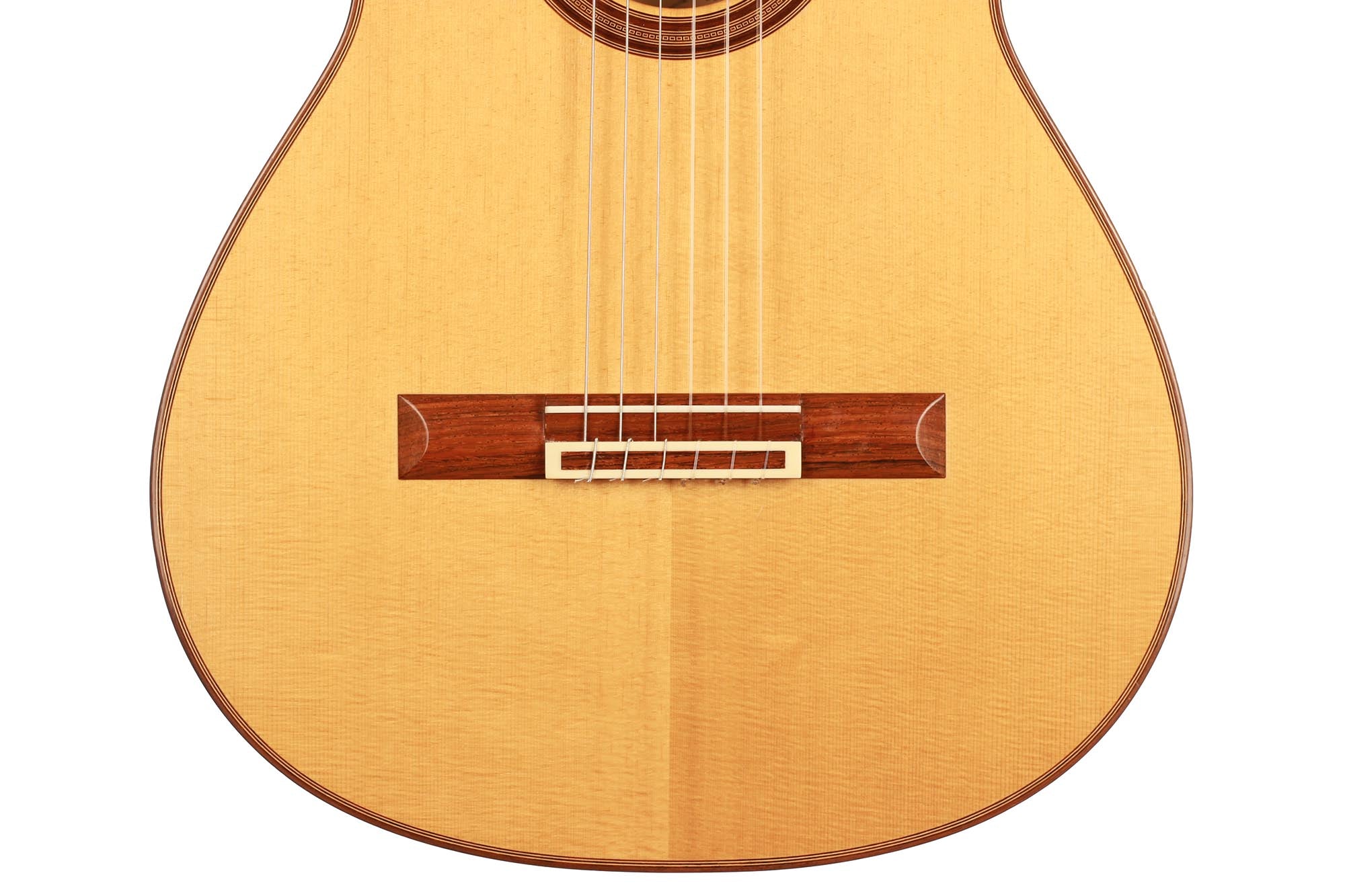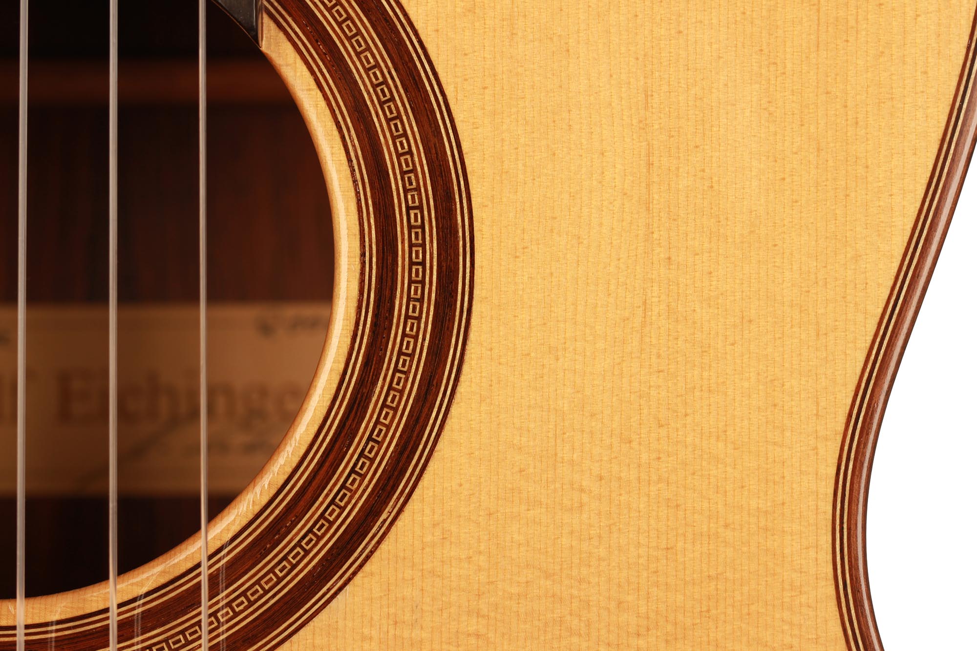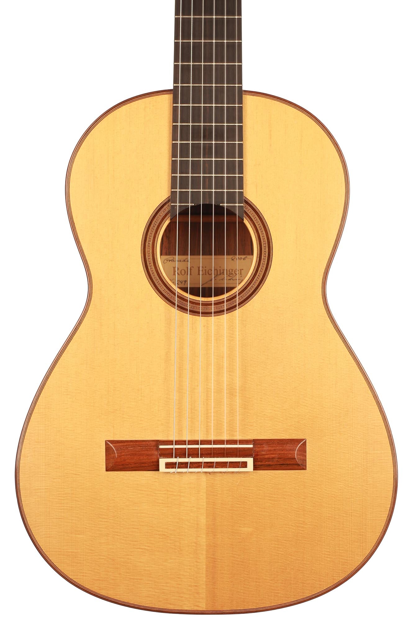 This sublime guitar built in 2006 has a slightly smaller body and a scale length of only 64 cm, which makes it very easy and pleasant to play. Make no mistake about it, this guitar is a little bomb and has an impressive reactivity and volume. Rolf Eichinger's guitars are known for their rich and distinctive sound, and this one is an outstanding example of this. The great balance of this instrument and the charm of its sound really makes it a special guitar. Besides it is in great condition with a single repaired hair line crack on the side and a perfectly repaired part on the lower bout of the back (thanks to Bernhard Kresse’s fine craftsmanship).