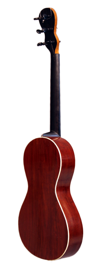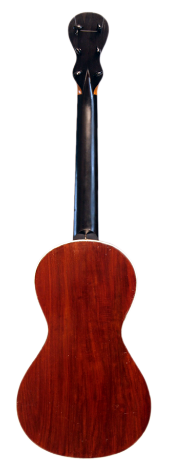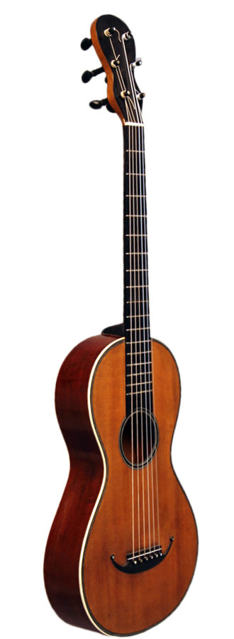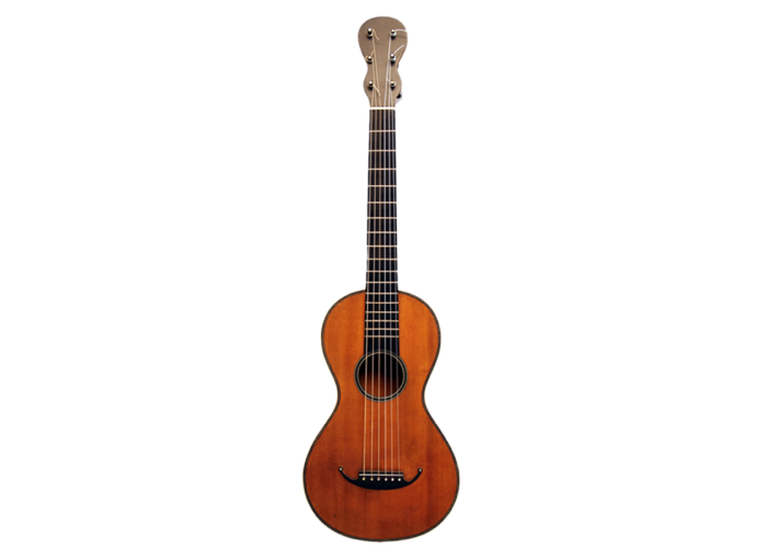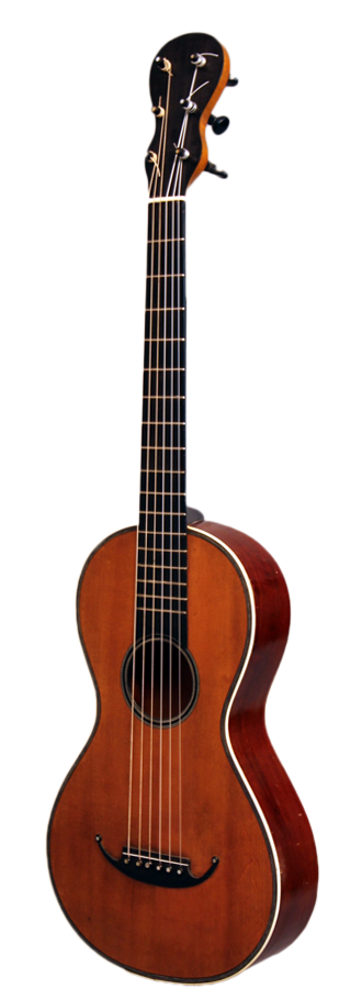 Diese Gitarre wurde in Mirecourt um 1825 gebaut und ist innen mit "Blanchard à Paris" gestempelt. Sie besitzt eine Decke aus fein gemaserter Fichte und der Deckenrand sowie das Schallloch sind mit dunklen Holzeinlagen verziert. Zudem hat die Decke und der Boden einen dekorativen weißen Rand aus Knochen. Der typisch französische Steg besitzt an seinen Enden jeweil ein Perlmuttauge. Boden und Zargen bestehen vermutlich aus Acajou. Der Hals besteht vermutlich aus Ahorn und wird von einem dünnen Furnier umfasst. Die achtförmige Kopfplatte ist ebenso mit einem Furnier belegt.