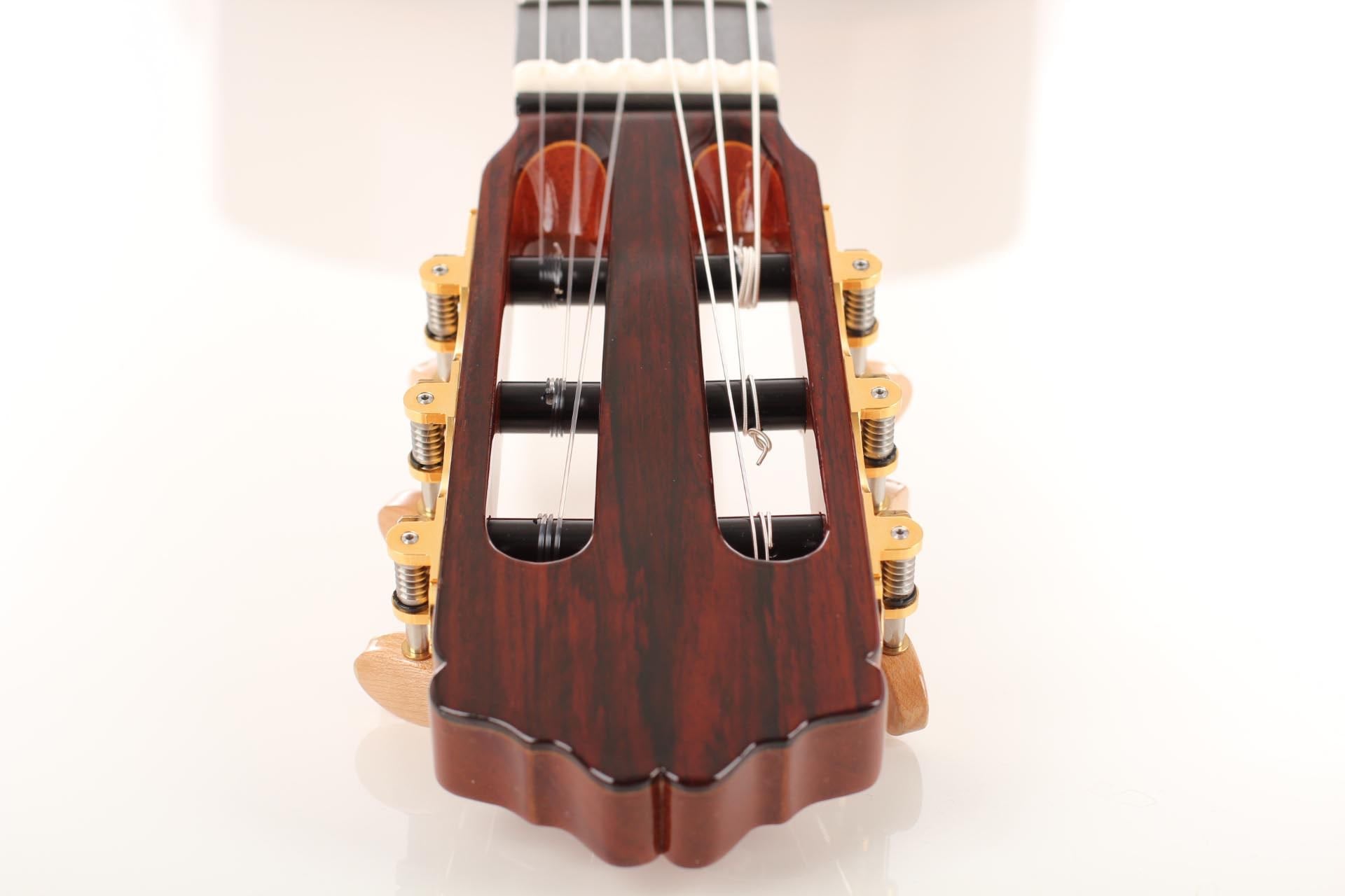 Die klassische Gitarre mit ihren weichen Nylonsaiten und ihrem charakteristischen Timbre ist zum Symbol der Kammermusik, der spanischen Tradition und des Konzertrepertoires geworden. Ihre moderne Form prägte Antonio de Torres im 19. Jahrhundert, indem er den Standard für Korpus, Fächerbeleistung und die 65-Zentimeter-Mensur setzte, die bis heute verwendet werden. Instrumente dieser Kategorie eröffnen eine reiche Palette von den feinen romantischen Miniaturen Tárregas bis zu den majestätischen Konzerten Rodrigos. Hier finden Sie Gitarren, die historische Kontinuität bewahren und zugleich zu neuen Interpretationen anregen.Alle Produkte der Kollektion ansehen -