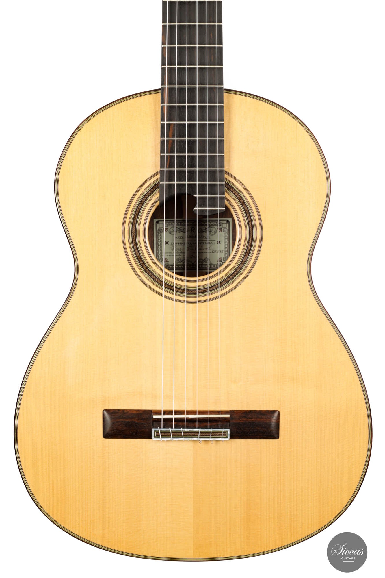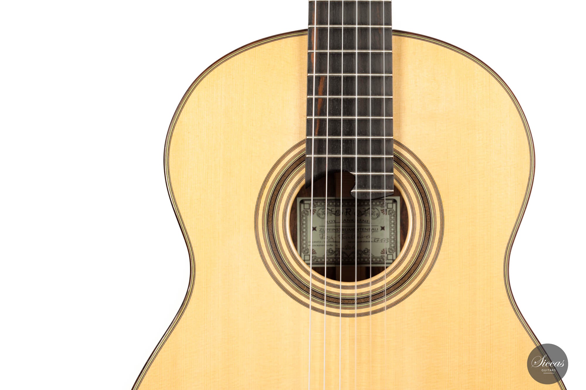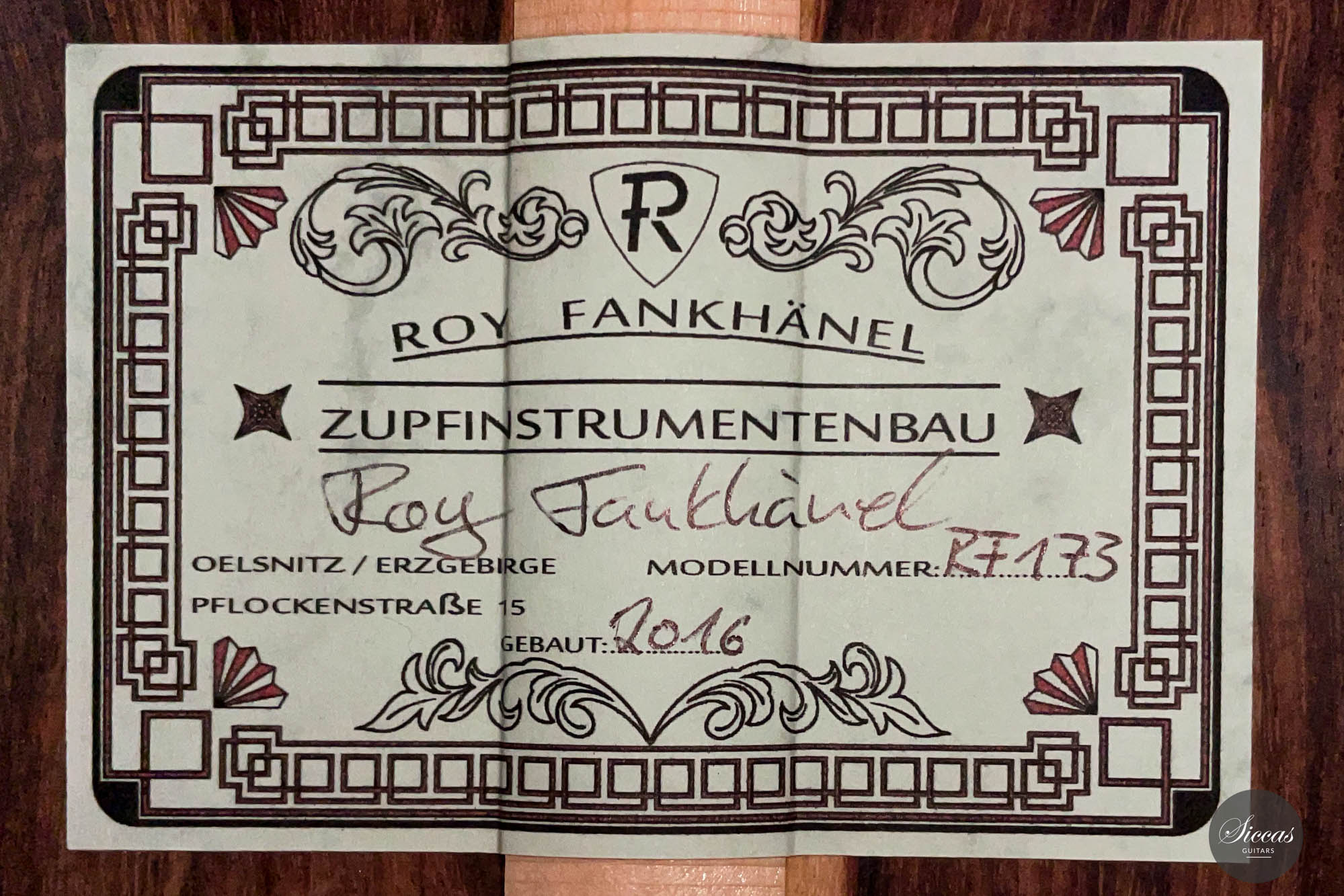 Roy Fankhänel betreibt seine Werkstatt in Oelsnitz, Deutschland, wo er Gitarren in der deutschen Tradition baut. Er zeigt ein sehr hohes Niveau an Handwerkskunst, das man in Details wie dem V-Gelenk, den Details der Rosette, dem Design des Kopfes und der allgemeinen Bauqualität sehen kann. Seine Gitarren sind kraftvolle Instrumente mit einem großzügigen, reichen Klang. Sie sind sehr leicht zu spielen und verfügen über ein leicht gewölbtes erhöhtes Griffbrett.