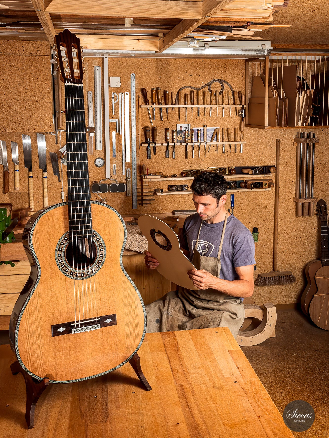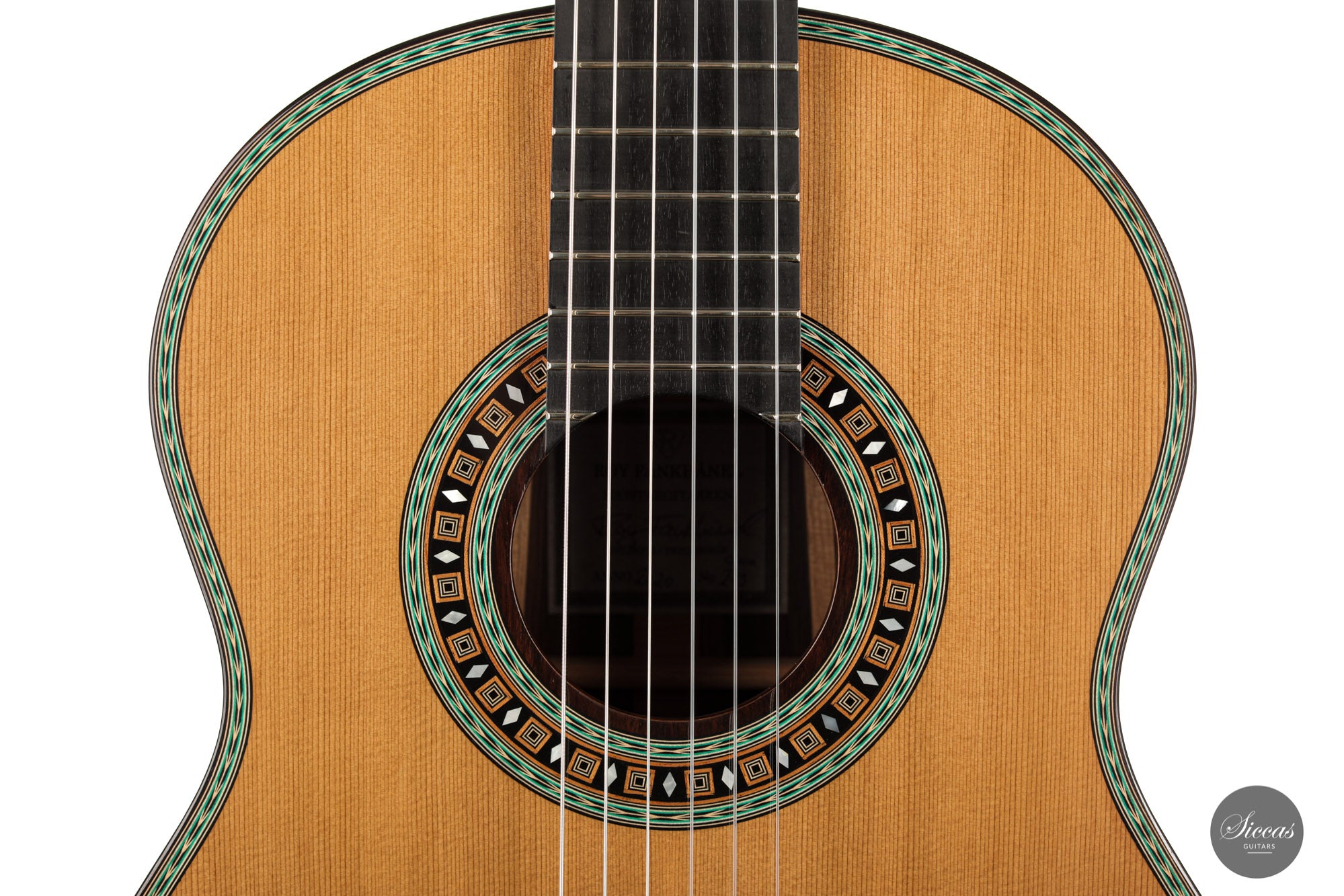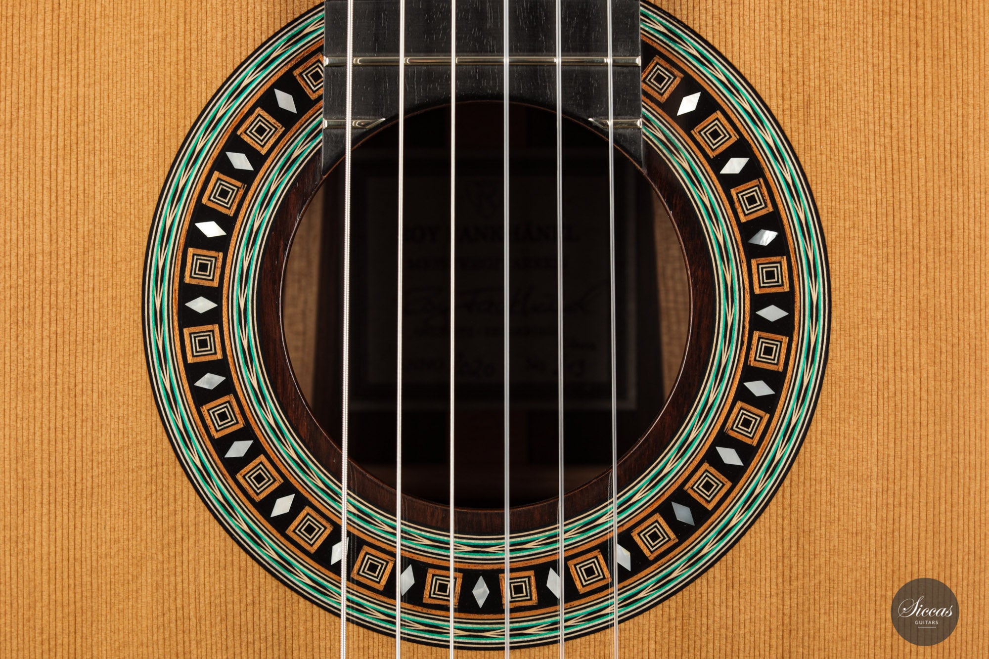 Roy Fankhänel’s runs his workshop in Oelsnitz, Germany, where he builds guitars in the German tradition. He shows a very high level of craftsmanship that can be seen in features such as the V-joint, the details of the rosette, the design of the head, and the quality of the construction in general. His guitars are powerful instruments with a generous rich sound. They are very easy to play and feature a slightly radiused elevated fingerboard.