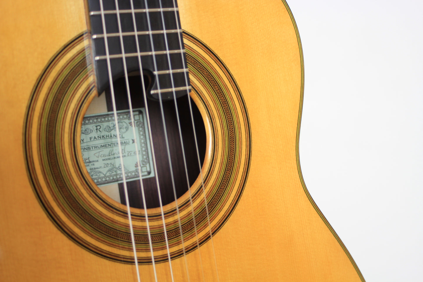 Diese wunderschöne Gitarre wurde in Zusammenarbeit mit Siccas Guitars entwickelt. Bei diesem Gitarrenmodell handelt es sich um eine Sonderserie, die nur bei Siccas Guitars erhältlich ist. Die Gitarre verfügt über eine Vielzahl von Besonderheiten, die so nur bei diesem Instrument zu finden sind. Dekorative Elemente wie Rosette und Randdekor wurden speziell von Roy Fankhänel entworfen und geben dem Instrument eine traditionelle und prächtige Optik. Perfekt in das Gesamtbild fügt sich der Steg mit 12-Loch-Bohrung ein. Das Innenleben (Klötzchen und Bodenleisten) besteht außer auf der Decke komplett aus Mahagoni. Boden und Zargen bestehen aus ostindischen Palisander und die Decke aus feinster Fichte. Die Deckenbeleistung besteht aus Fichte. Das erhöhte Griffbrett erleichtert das Spiel in den hohen Lagen und verbessert den Klang in diesem Bereich spürbar. Die Mechaniken sind von Alessi.