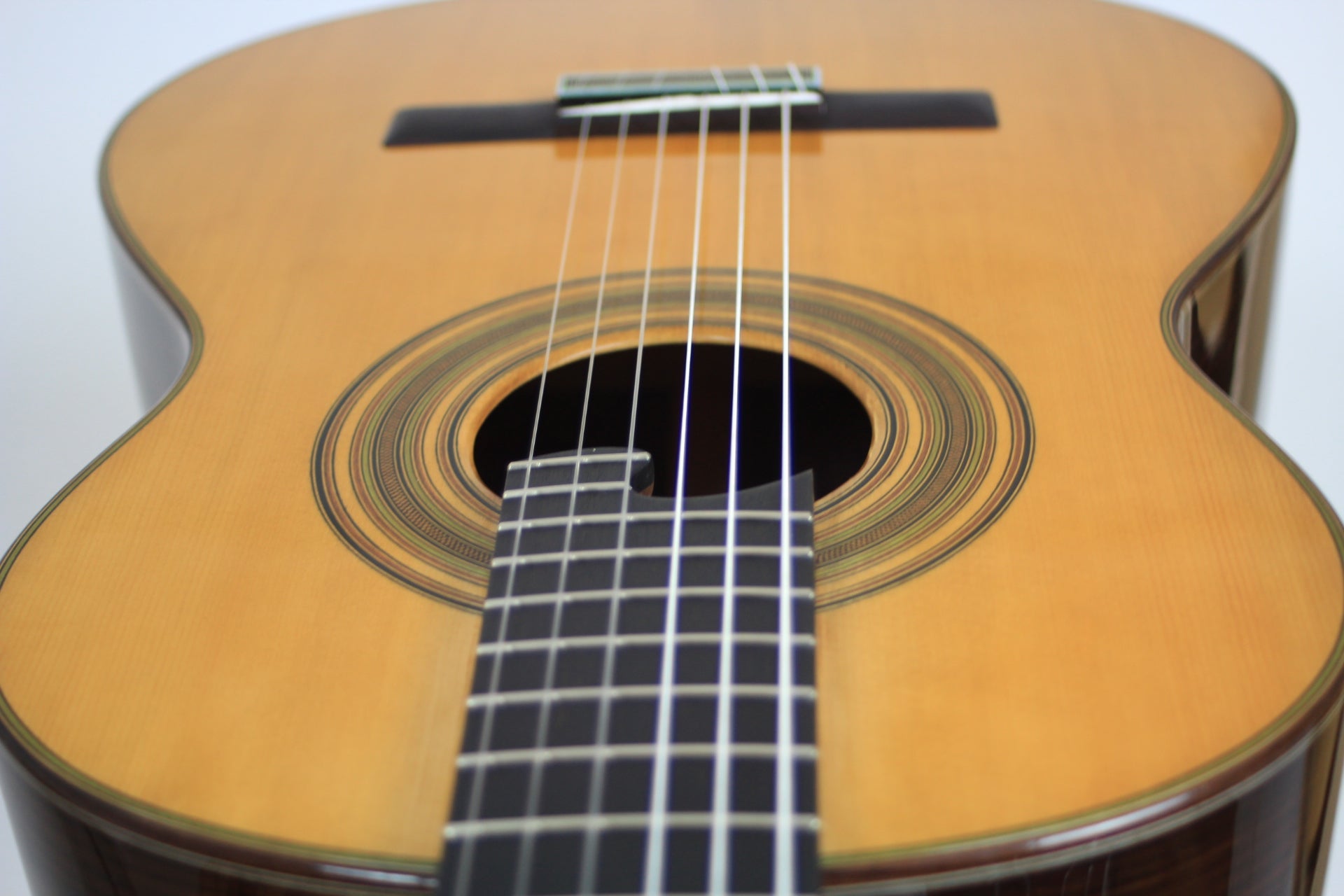 Die klassische Gitarre mit ihren weichen Nylonsaiten und ihrem charakteristischen Timbre ist zum Symbol der Kammermusik, der spanischen Tradition und des Konzertrepertoires geworden. Ihre moderne Form prägte Antonio de Torres im 19. Jahrhundert, indem er den Standard für Korpus, Fächerbeleistung und die 65-Zentimeter-Mensur setzte, die bis heute verwendet werden. Instrumente dieser Kategorie eröffnen eine reiche Palette von den feinen romantischen Miniaturen Tárregas bis zu den majestätischen Konzerten Rodrigos. Hier finden Sie Gitarren, die historische Kontinuität bewahren und zugleich zu neuen Interpretationen anregen.Alle Produkte der Kollektion ansehen -