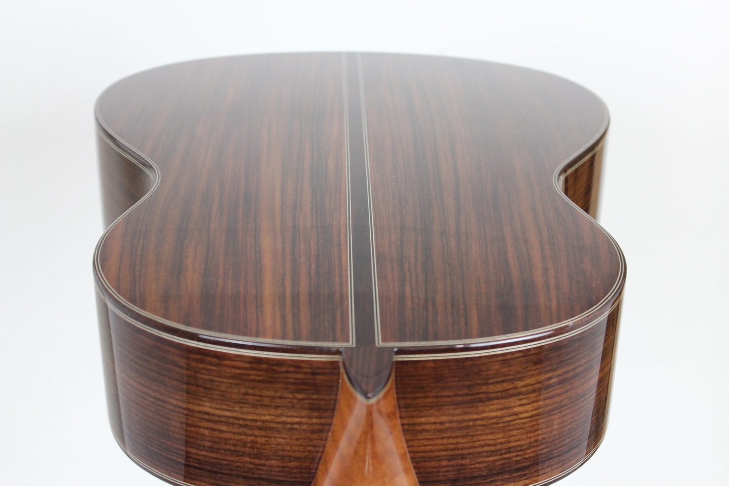 Preis auf AnfrageGitarrenbauer: Fritz OberBaujahr: 2019Decke: SpruceBoden und Zargen: Brazilian rosewood (CITES certified)Deckenoberfläche: French polishKorpusoberfläche: French polishLuftresonanz: C sharp / DGewicht (g): 1345Mechaniken: Klaus SchellerZustand: Excellent -