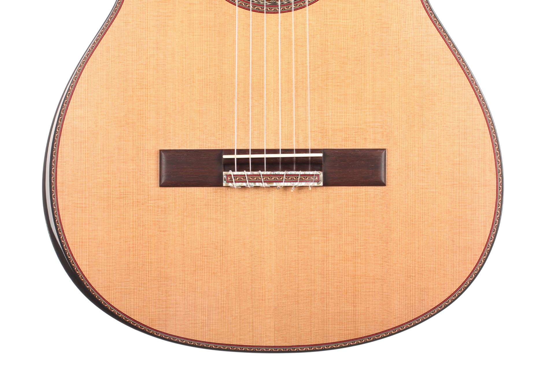 Die klassische Gitarre mit ihren weichen Nylonsaiten und ihrem charakteristischen Timbre ist zum Symbol der Kammermusik, der spanischen Tradition und des Konzertrepertoires geworden. Ihre moderne Form prägte Antonio de Torres im 19. Jahrhundert, indem er den Standard für Korpus, Fächerbeleistung und die 65-Zentimeter-Mensur setzte, die bis heute verwendet werden. Instrumente dieser Kategorie eröffnen eine reiche Palette von den feinen romantischen Miniaturen Tárregas bis zu den majestätischen Konzerten Rodrigos. Hier finden Sie Gitarren, die historische Kontinuität bewahren und zugleich zu neuen Interpretationen anregen.Alle Produkte der Kollektion ansehen -