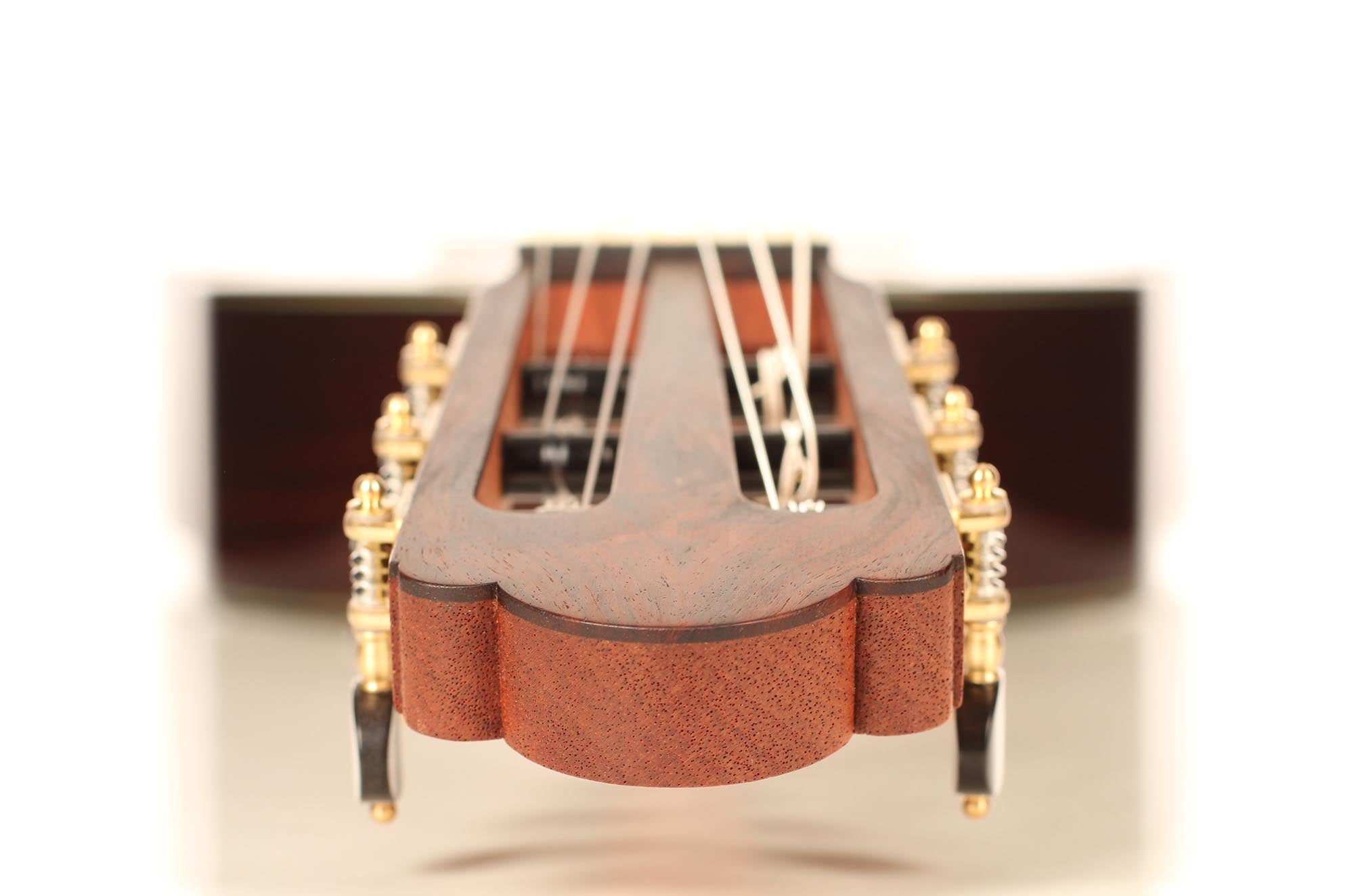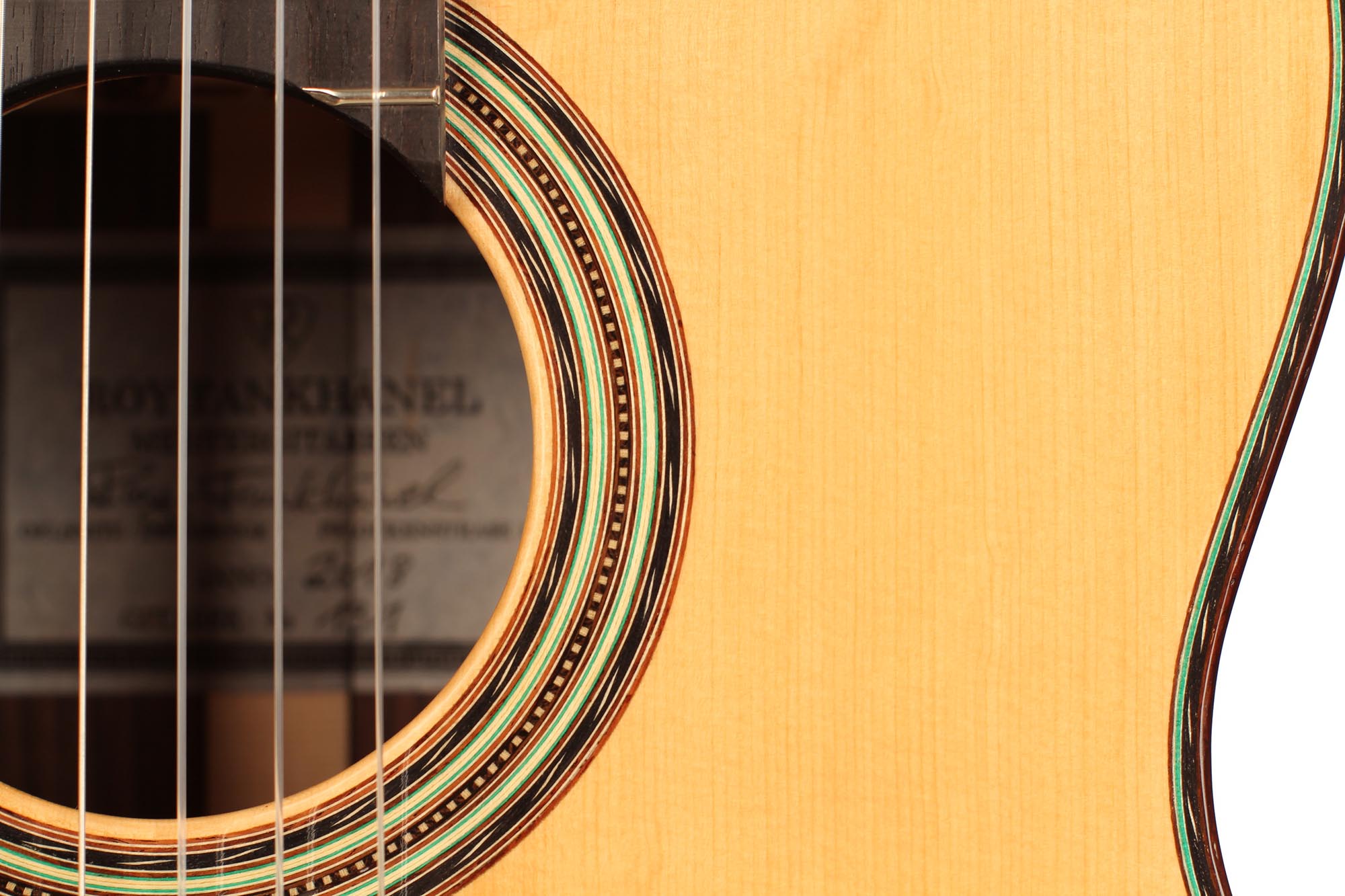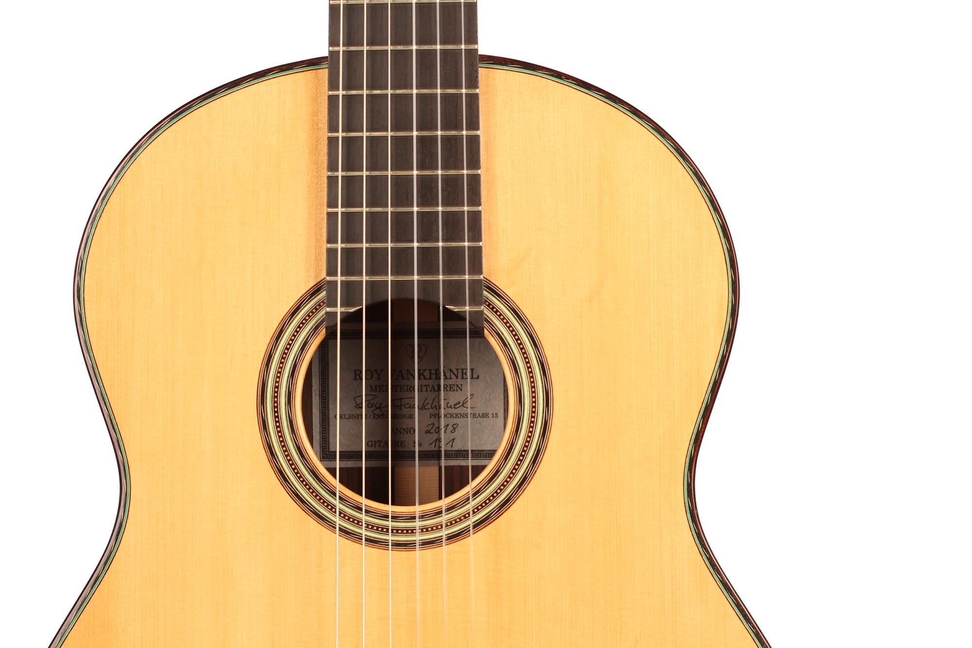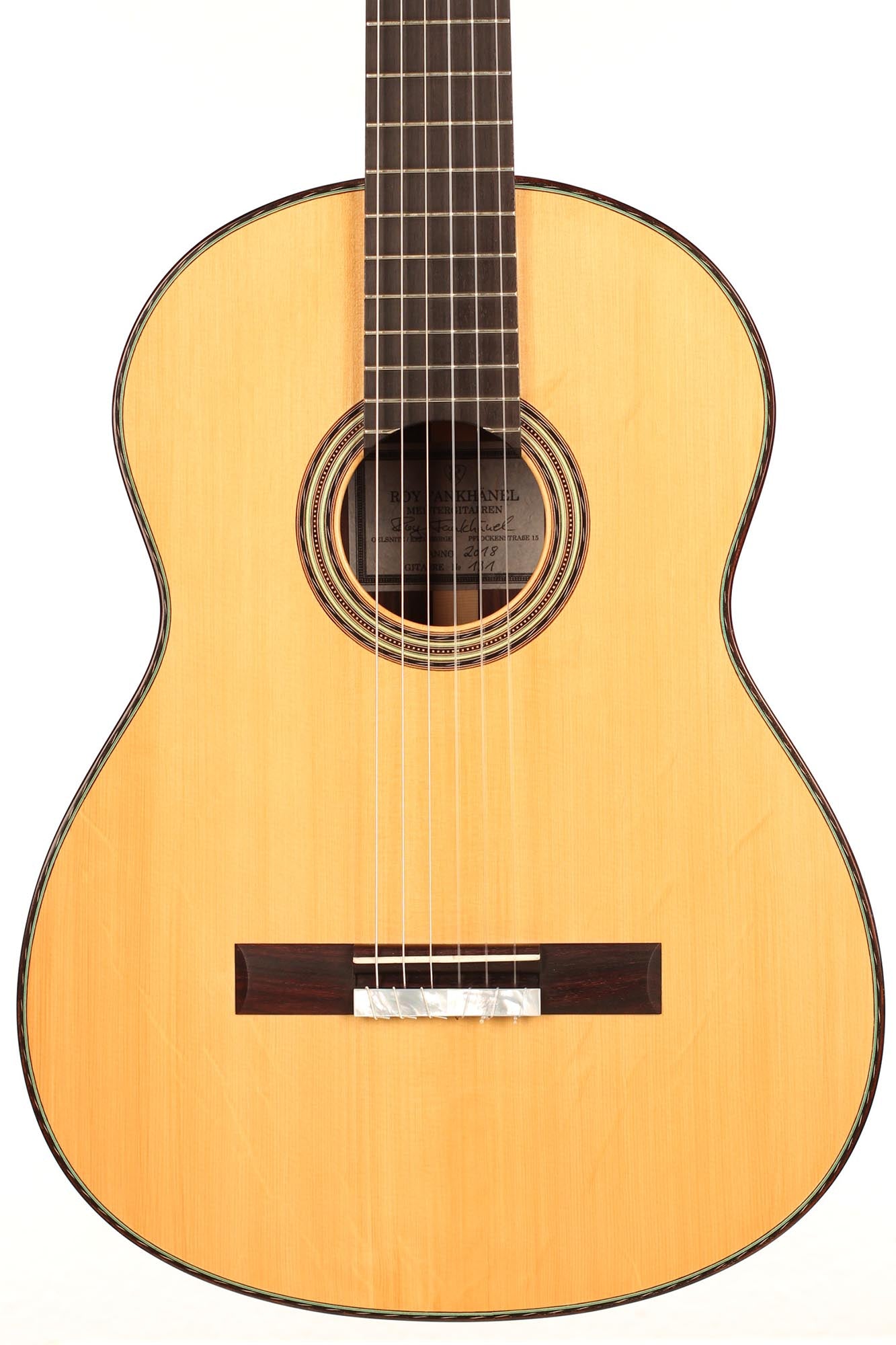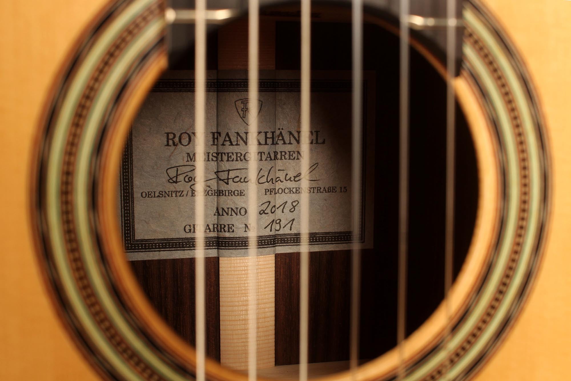 Roy Fankhänel’s workshop is located in Oelsnitz, Germany, where he builds guitars in the German tradition. He shows a very high level of craftmanship that can be seen in features such as the V-joint, the details of the rosette, the design of the head and the quality of the construction in general. His guitars are powerful instruments with a generous rich sound. They are very easy to play and feature a slightly radiused elevated fingerboard.