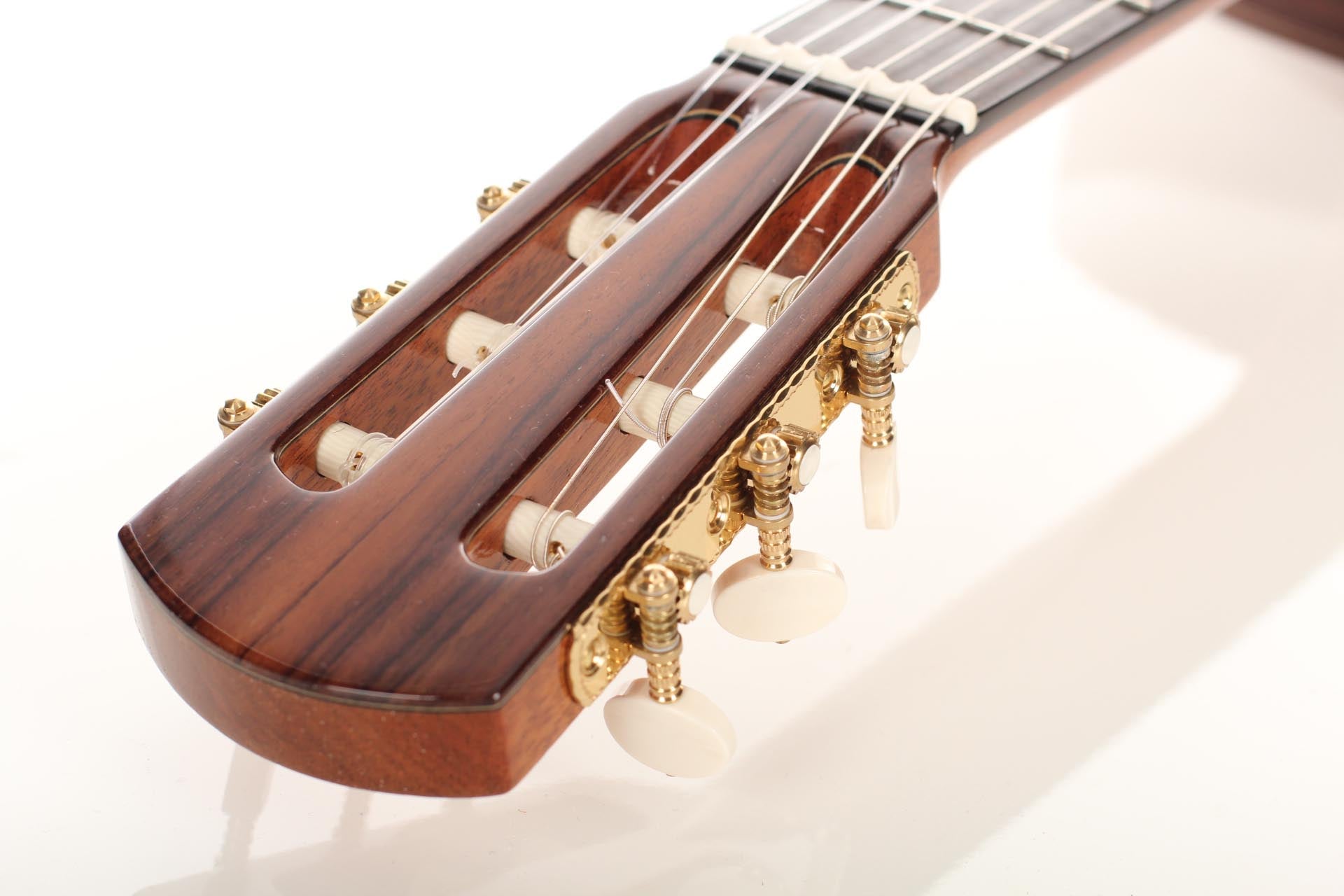 Gitarrenbauer: José Luis RomanillosBaujahr: 1979Decke: SpruceBoden und Zargen: Indian rosewoodDeckenoberfläche: French polishKorpusoberfläche: French polishLuftresonanz: G / G sharpGewicht (g): 1410Mechaniken: Klaus SchellerZustand: Excellent