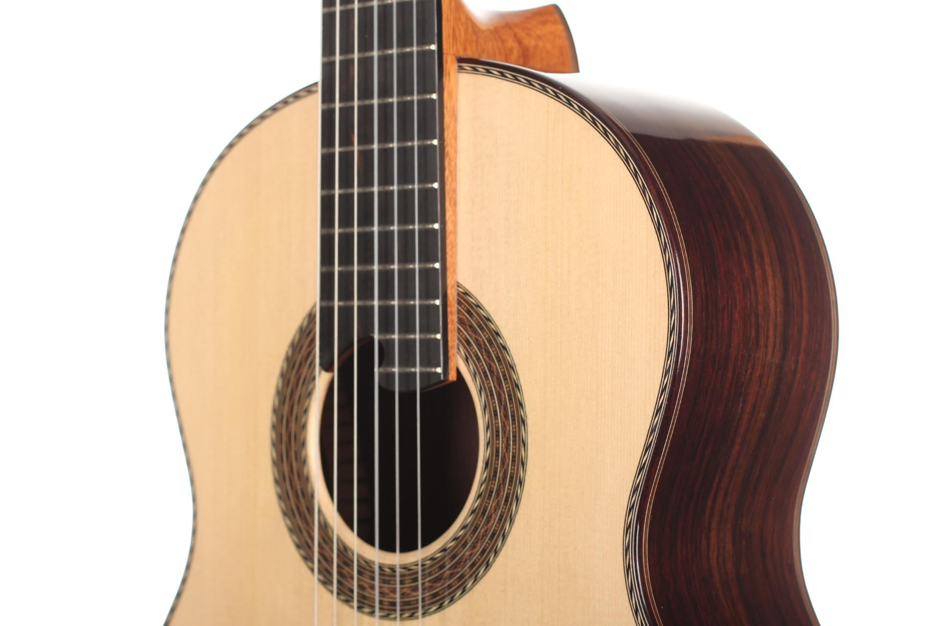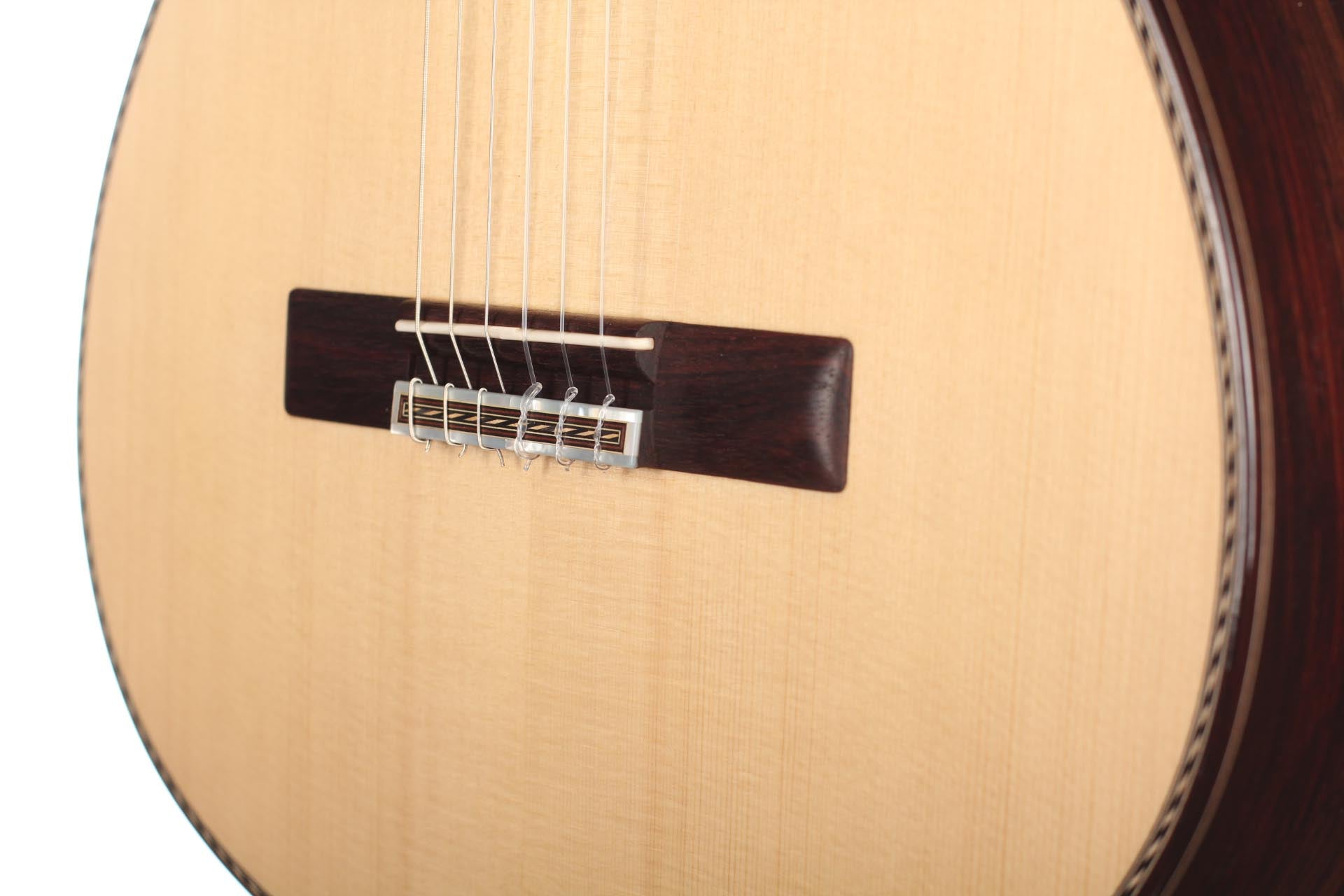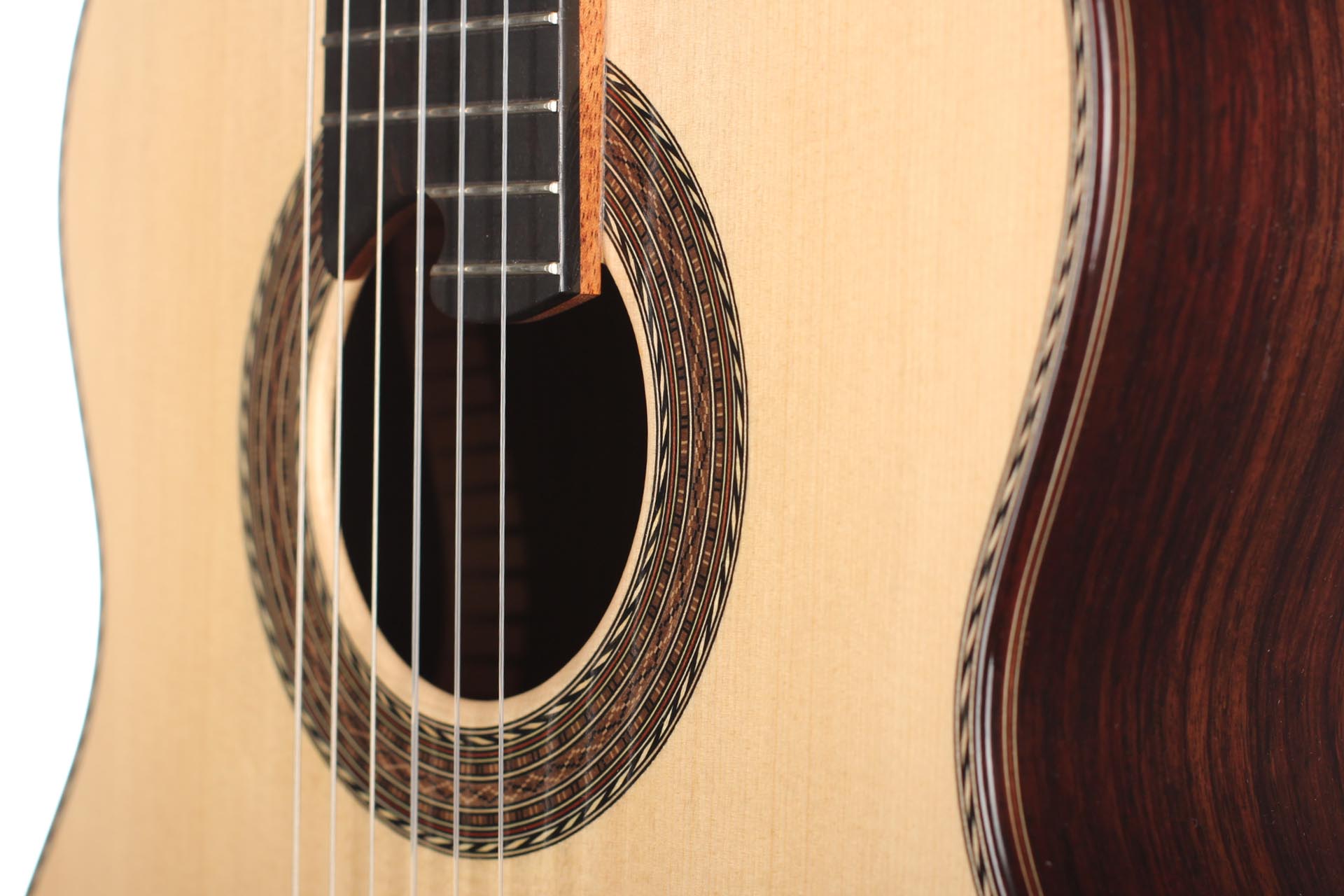 Die klassische Gitarre mit ihren weichen Nylonsaiten und ihrem charakteristischen Timbre ist zum Symbol der Kammermusik, der spanischen Tradition und des Konzertrepertoires geworden. Ihre moderne Form prägte Antonio de Torres im 19. Jahrhundert, indem er den Standard für Korpus, Fächerbeleistung und die 65-Zentimeter-Mensur setzte, die bis heute verwendet werden. Instrumente dieser Kategorie eröffnen eine reiche Palette von den feinen romantischen Miniaturen Tárregas bis zu den majestätischen Konzerten Rodrigos. Hier finden Sie Gitarren, die historische Kontinuität bewahren und zugleich zu neuen Interpretationen anregen.Alle Produkte der Kollektion ansehen -