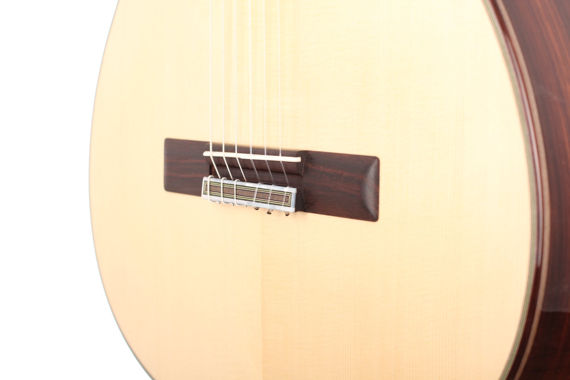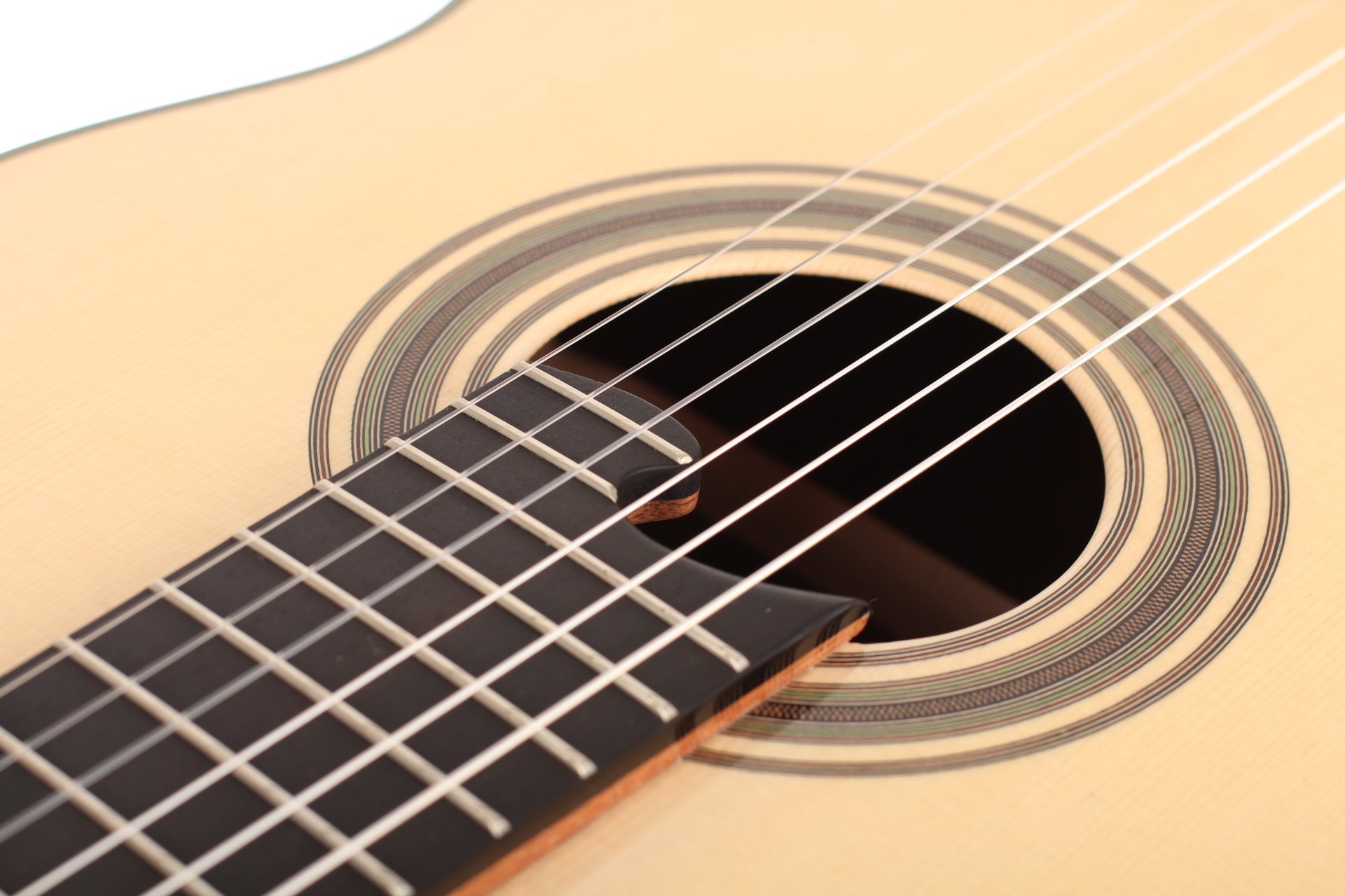 Die klassische Gitarre mit ihren weichen Nylonsaiten und ihrem charakteristischen Timbre ist zum Symbol der Kammermusik, der spanischen Tradition und des Konzertrepertoires geworden. Ihre moderne Form prägte Antonio de Torres im 19. Jahrhundert, indem er den Standard für Korpus, Fächerbeleistung und die 65-Zentimeter-Mensur setzte, die bis heute verwendet werden. Instrumente dieser Kategorie eröffnen eine reiche Palette von den feinen romantischen Miniaturen Tárregas bis zu den majestätischen Konzerten Rodrigos. Hier finden Sie Gitarren, die historische Kontinuität bewahren und zugleich zu neuen Interpretationen anregen.Alle Produkte der Kollektion ansehen -