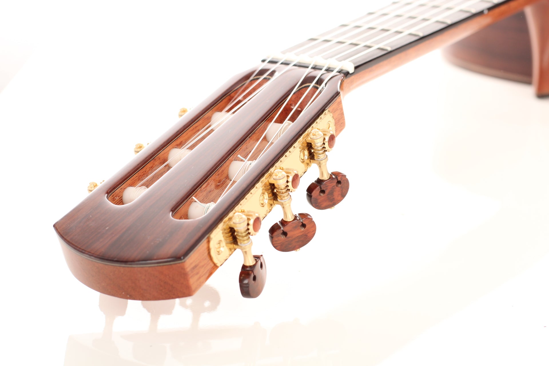 Gitarrenbauer: José Luis RomanillosBaujahr: 1979Decke: SpruceBoden und Zargen: Indian rosewoodDeckenoberfläche: French polishKorpusoberfläche: French polishLuftresonanz: G / G sharpGewicht (g): 1410Mechaniken: Klaus SchellerZustand: Excellent