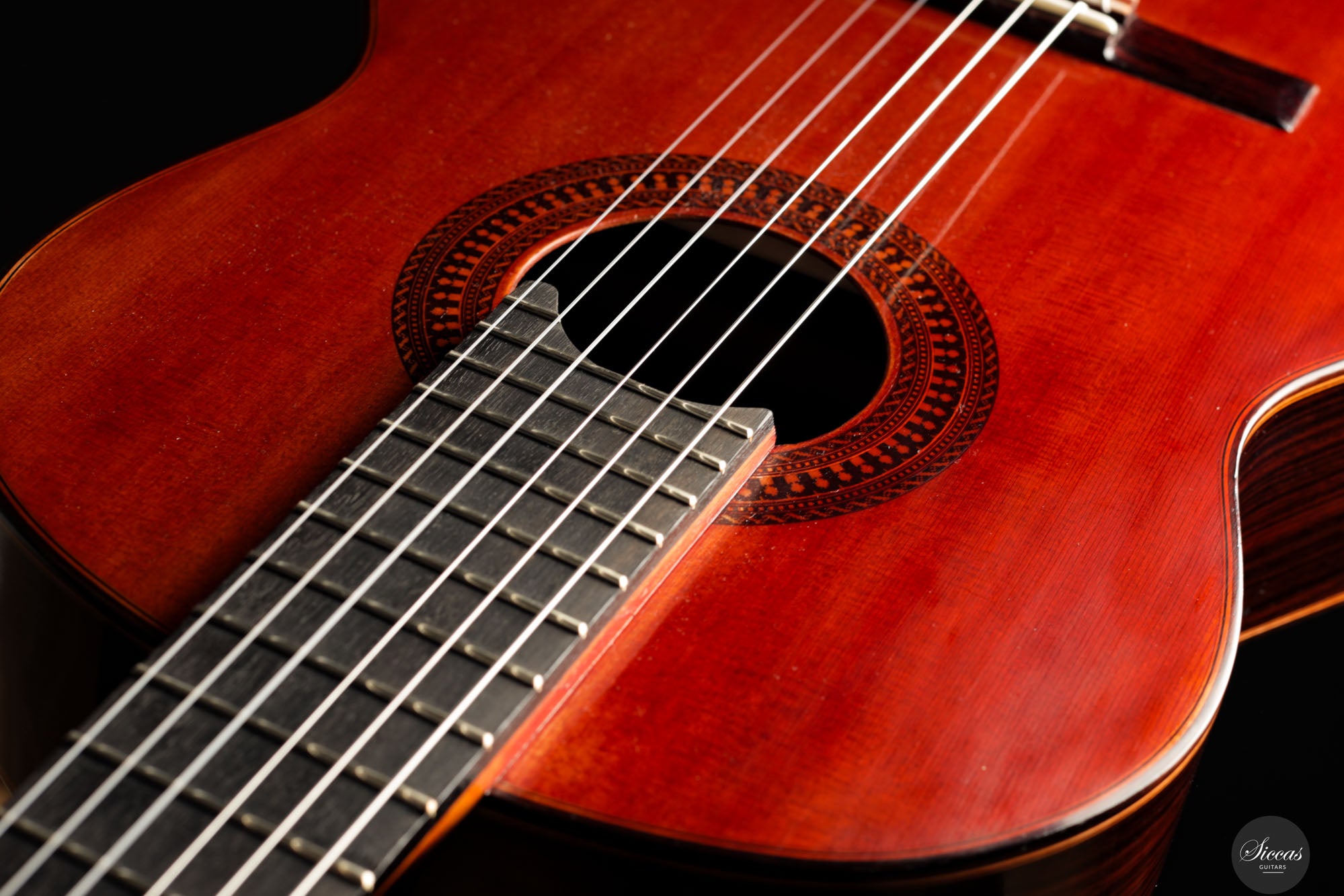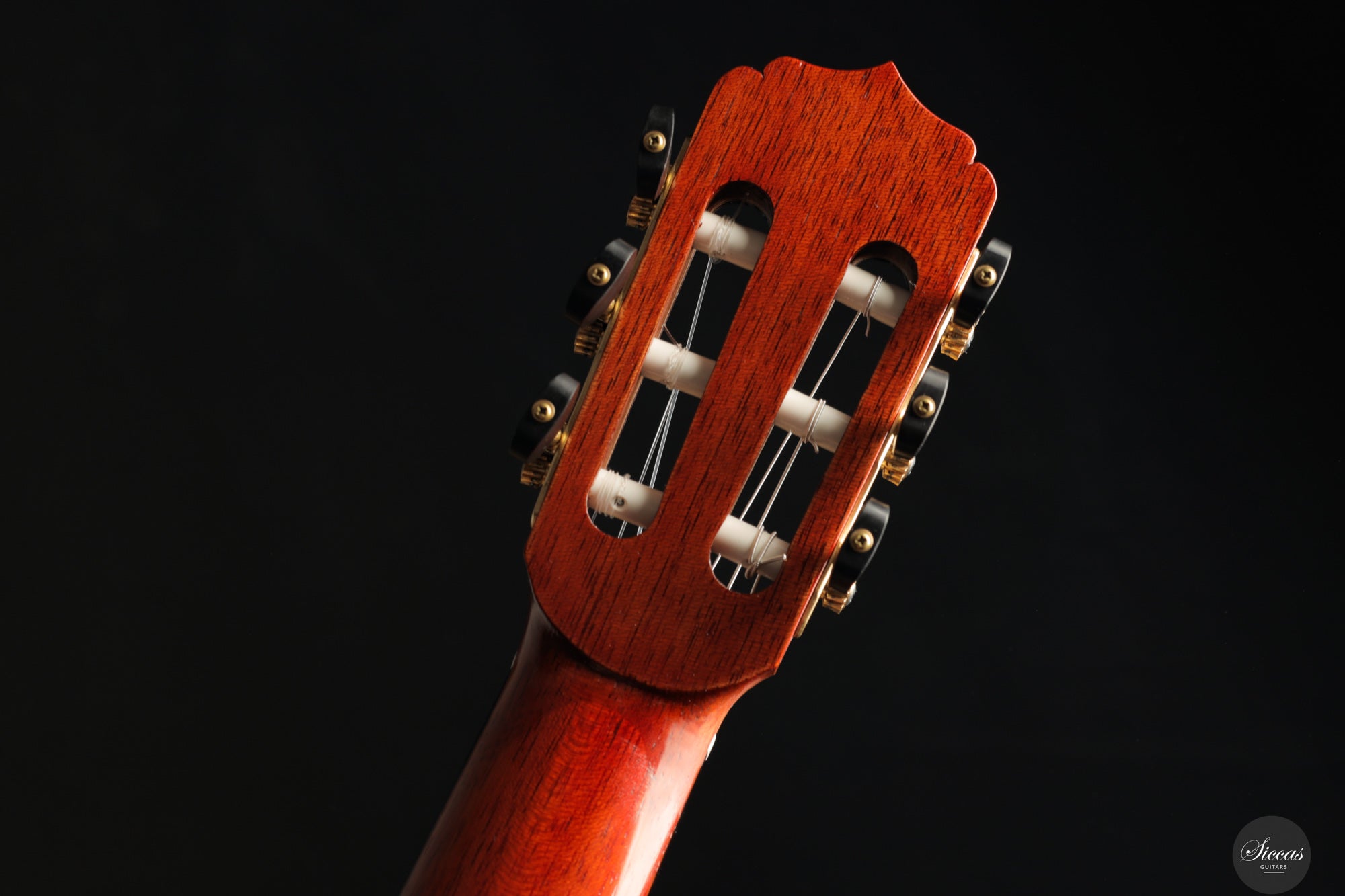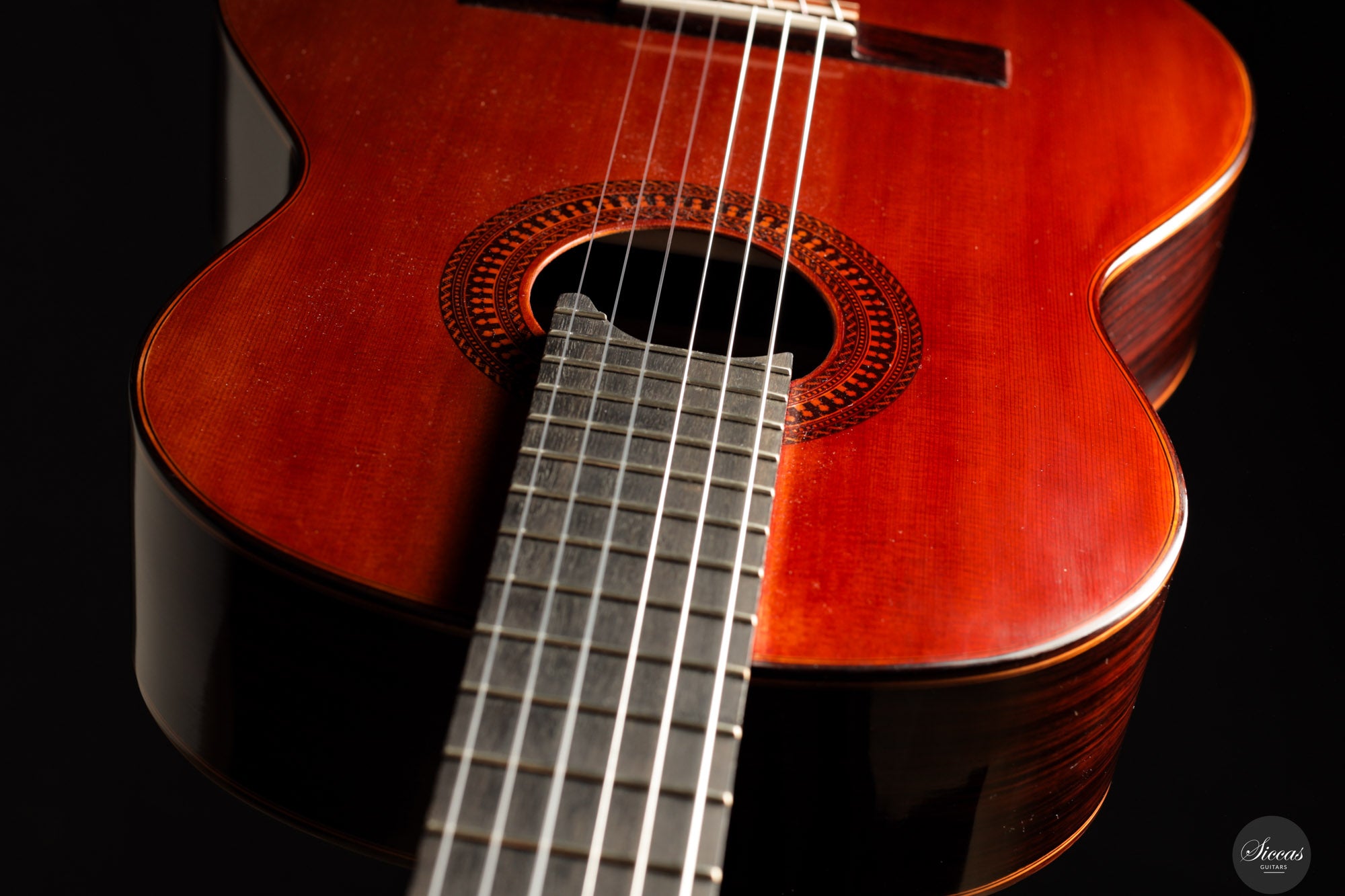 Die Bauweise mit Balsakern verleiht dem Instrument eine deutlich holzige Ansprache. Der Ton entwickelt sich unmittelbar, bleibt jedoch in seiner Hüllkurve kontrolliert und formbar. Über das gesamte Griffbrett hinweg zeigt sich eine bemerkenswerte Gleichmäßigkeit mit homogener Lautstärkeverteilung und nahtlosen Übergängen zwischen den Registern. Auch im differenzierten dynamischen Spiel bewahrt die Gitarre ihre strukturelle Stabilität.