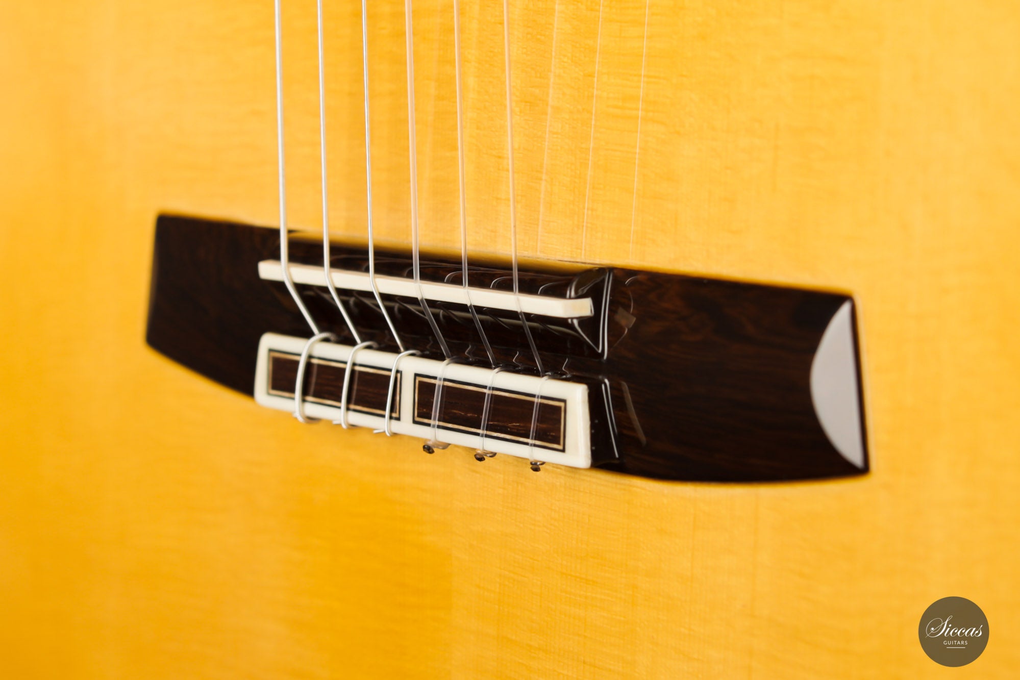 This guitar is very responsive and has excellent volume. Moreover, the sound is precise and projects clearly. It is an instrument with optimal balance and a relatively pure but very malleable tone. This allows the guitarist to express himself freely in all repertoires. It is rich in timbre, very pleasant to play and undoubtedly capable of filling concert halls. The 64 cm scale provides additional playing comfort for the left hand and at the same time all the sound volume and tonal quality of the standard 65 cm scale instruments.