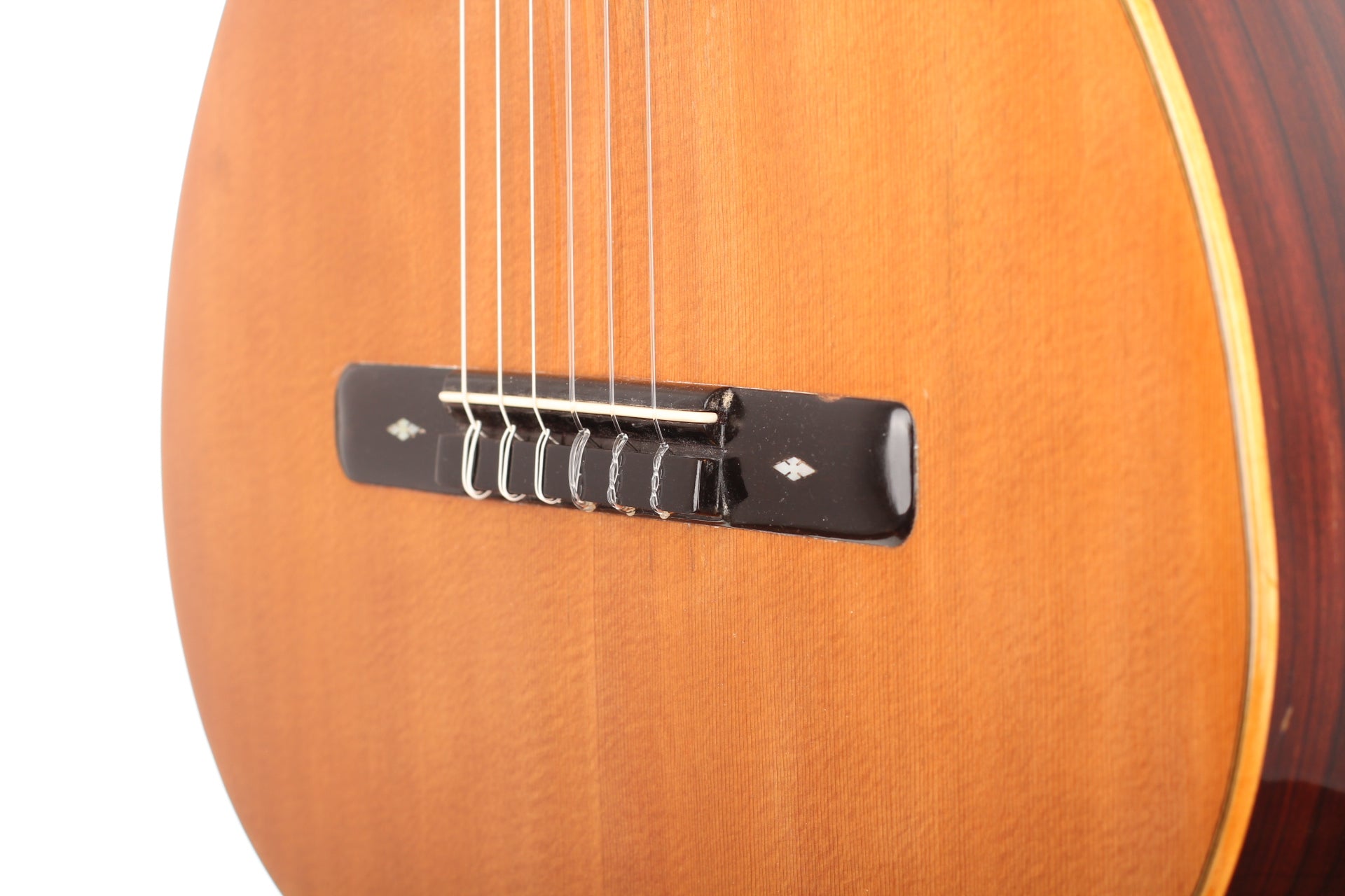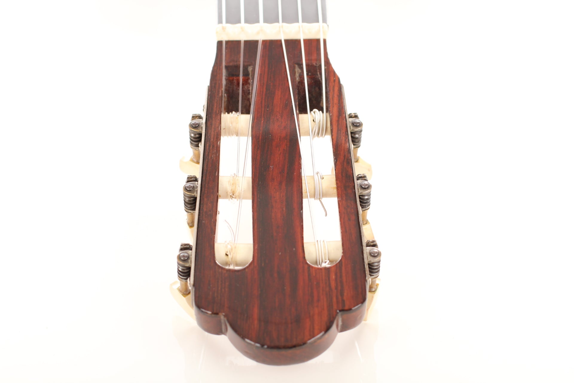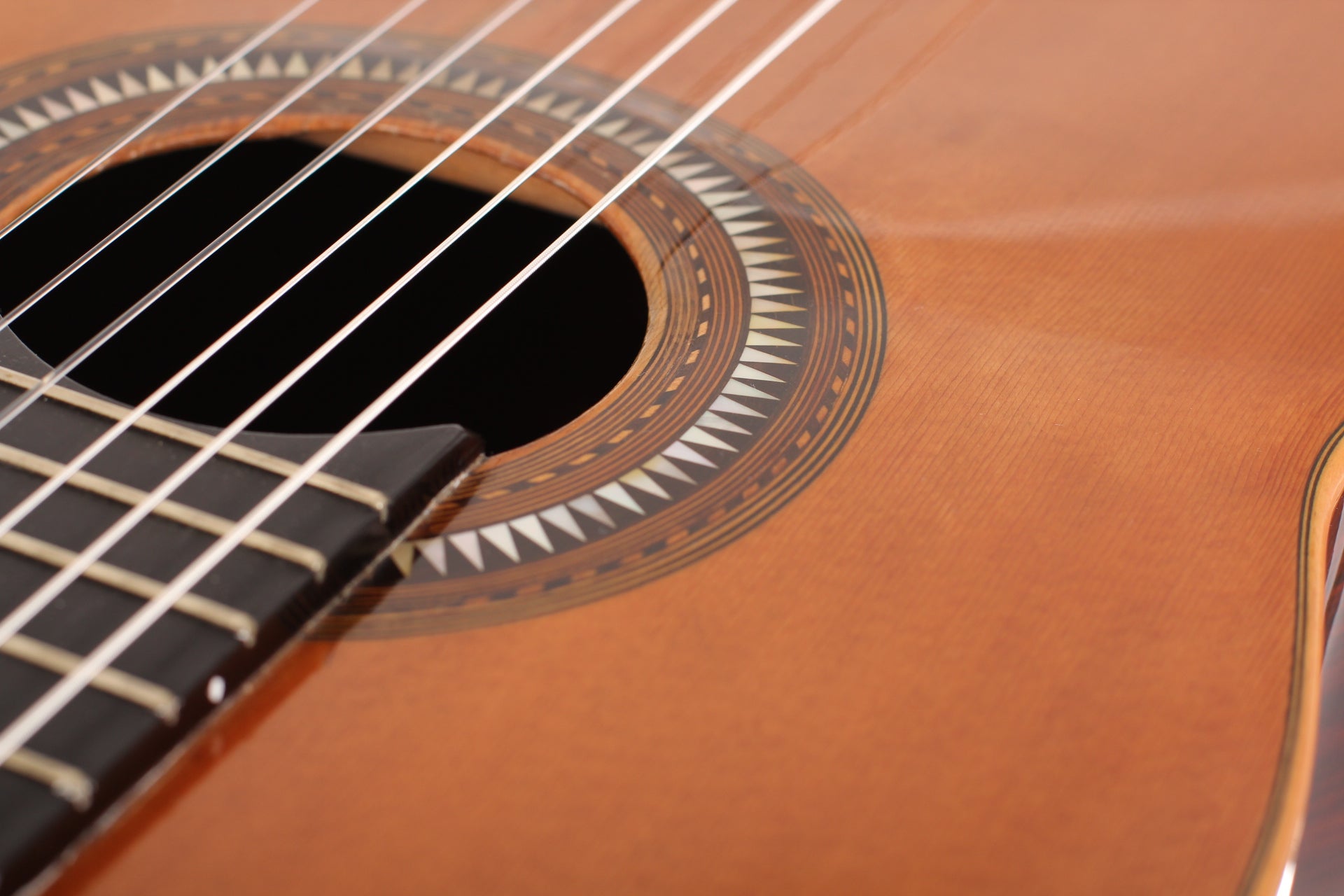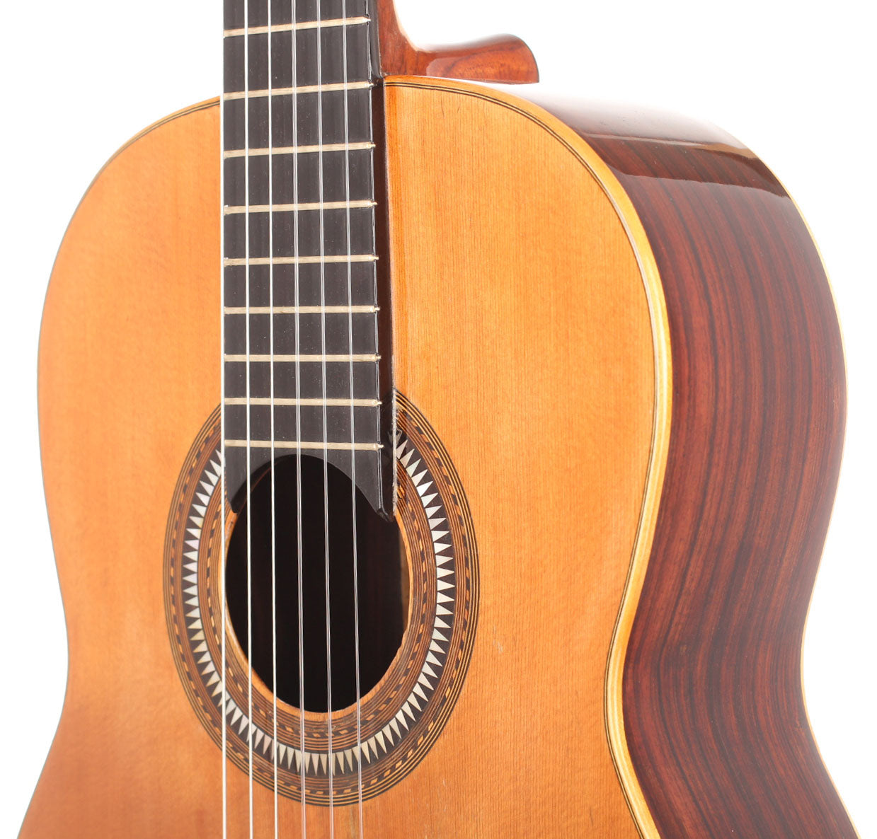 Salvador Ibáñez (* 1854 in Valencia; † 1920) began his apprenticeship as a luthier in Valencia. In 1870 he founded his own workshop where he built guitars, ukuleles, and mandolins. In 1897 he built one of the first double-neck guitars. After his death in 1920, his two sons took over the workshop. This guitar was built around 1900. The spruce top is in impressive condition and has a little repaired crack below the bridge. Back and sides are made of rosewood (one repaired crack). The rosette and the bridge are decorated with mother of pearl inlays. The original tuners have been replaced. A hardshell case is included.