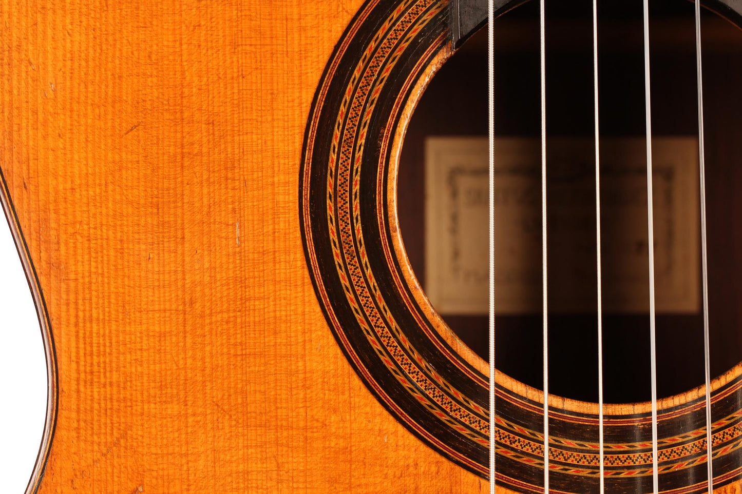 This fantastic 1921 Santos Hernandez is an absolute beauty. It has an authentic patina and a true pristine sound. The responsive warm and charming tone combines with incredibly deep basses and a perfect playability making it an incredibly fine instrument. The condition is very good with a few very well repaired cracks on the top. This guitar is a beautiful example of Santos Hernandez’ great ability to build instruments with a rich sound and finesse, that is often only found in his instruments.