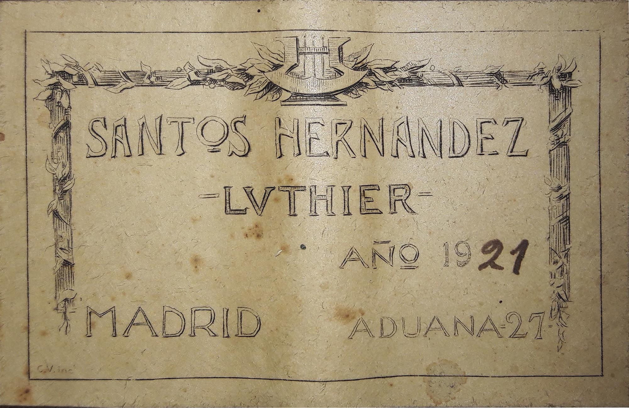 Santos Hernandez (Madrid, 1873-1943) started an apprenticeship very early in Valentin Viudes’s workshop and then moved to José Ortega’s Granadinian workshop. After moving to a few other workshops and serving as a soldier for Spain, he eventually took over Enrique Garcia’s position in Manuel Ramirez’s workshop in 1905.