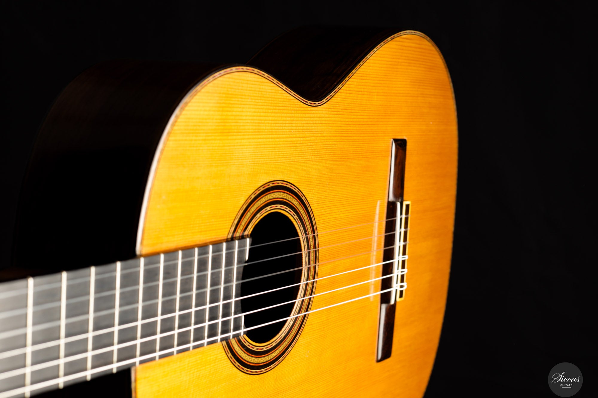 Klanglich ist diese Gitarre ein wahres Meisterwerk. Sie besitzt alle Qualitäten des „alten“ spanischen Klangs – warm, ausdrucksstark und nuancenreich – bleibt aber zugleich erstaunlich relevant für moderne Repertoires. Der Bass klingt frei und kraftvoll, die Höhen sind charmant, weich und dennoch klar artikuliert. Dieses Instrument bietet eine große Ausdrucksbreite und eignet sich gleichermaßen für historisch informierte Interpretationen wie für moderne Konzertaufführungen.Zustand