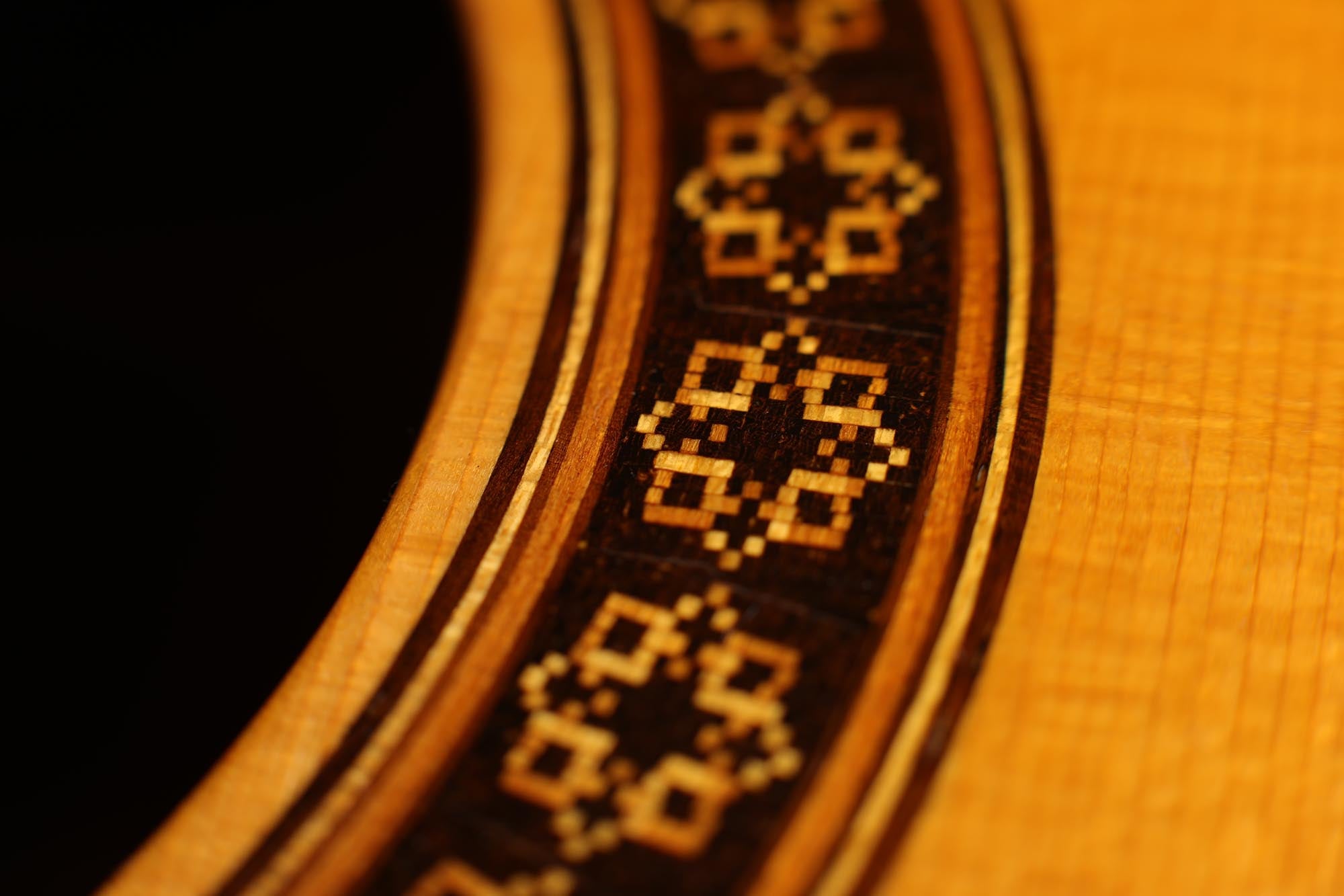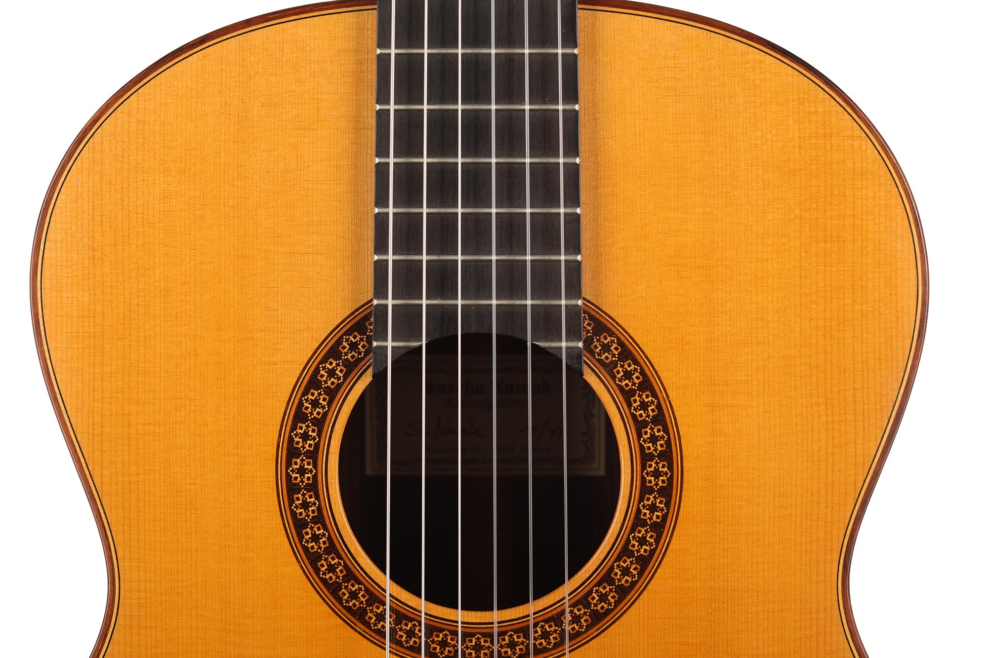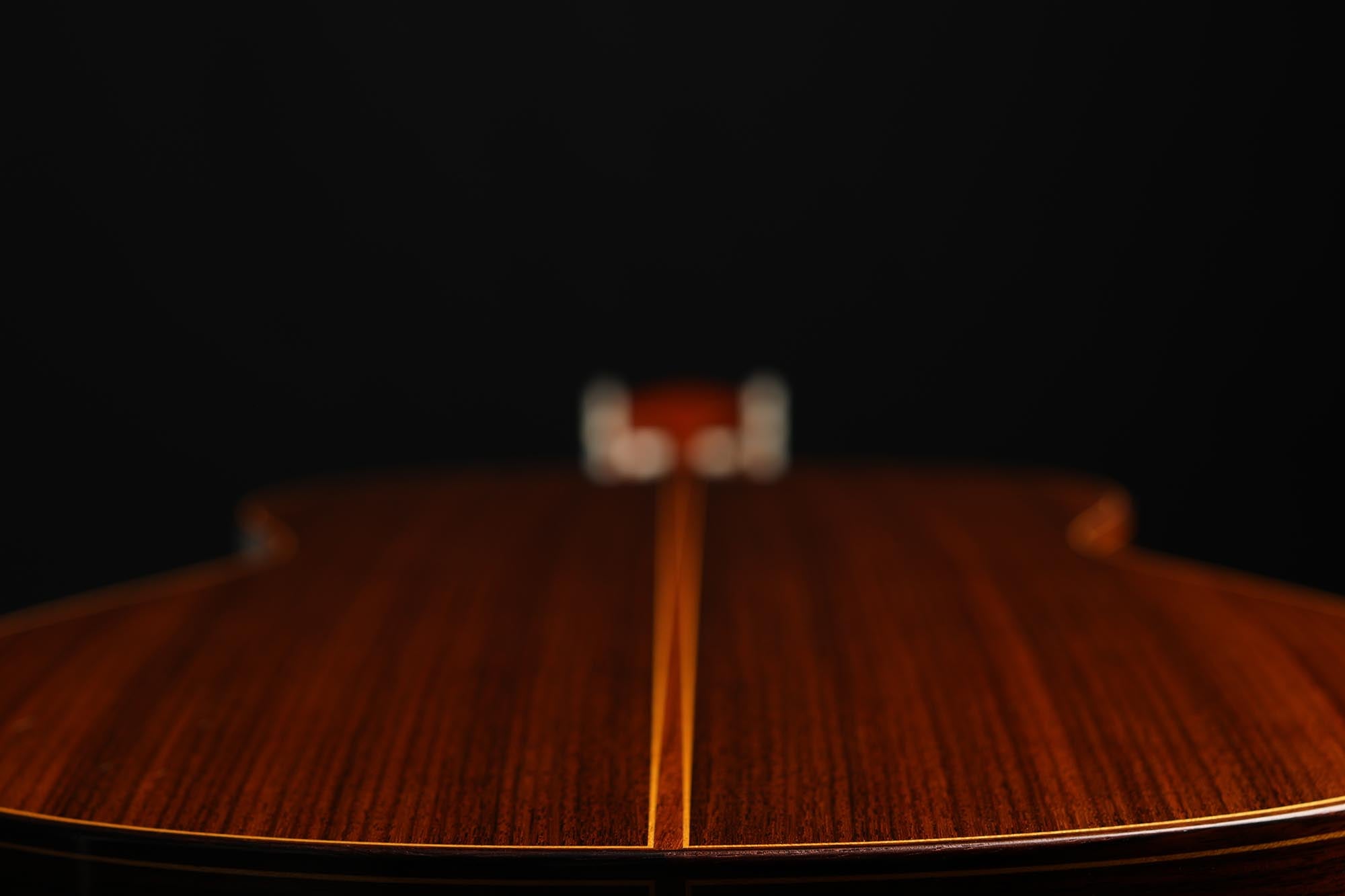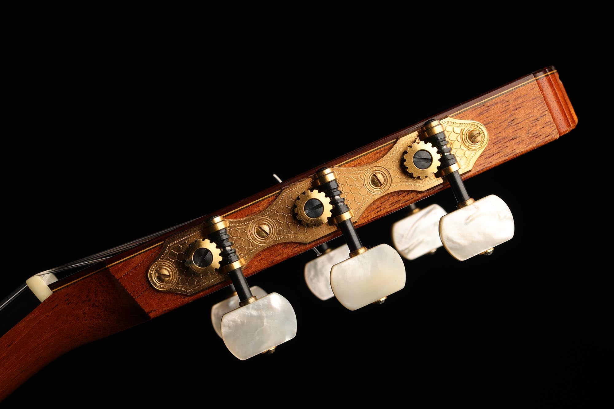 Diese 1997 gebaute Gitarre befindet sich in einem gut erhaltenen Zustand. Dem Alter entsprechend sind zwar einige Spielspuren sichtbar, aber es sind keine größeren Reparaturen oder Schäden an der Gitarre festszustellen. Die hochwertigen originalen Reischl Mechaniken sorgen für hochpräzises und perfektes Stimmen.Darüber hinaus unterstreicht die Kombination aus Fichtendecke, und Boden und Zargen aus elegantem indischem Palisander den traditionellen Charakter dieser Gitarre. Einige wunderbare geometrische Variationen sind in der Rosette sichtbar, deren Design ebenso wie der Rest dieses Instruments bewundernswert ist.
