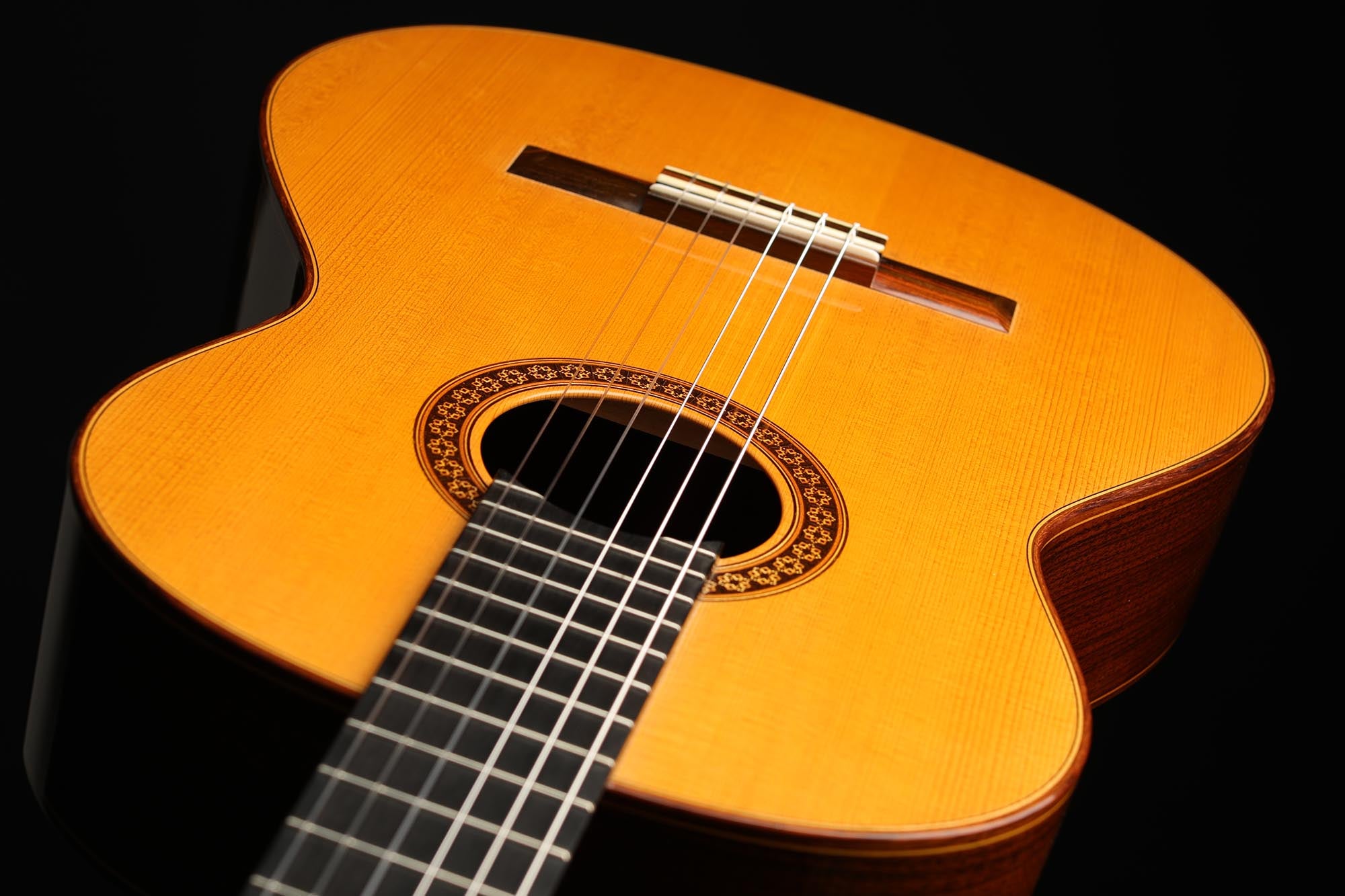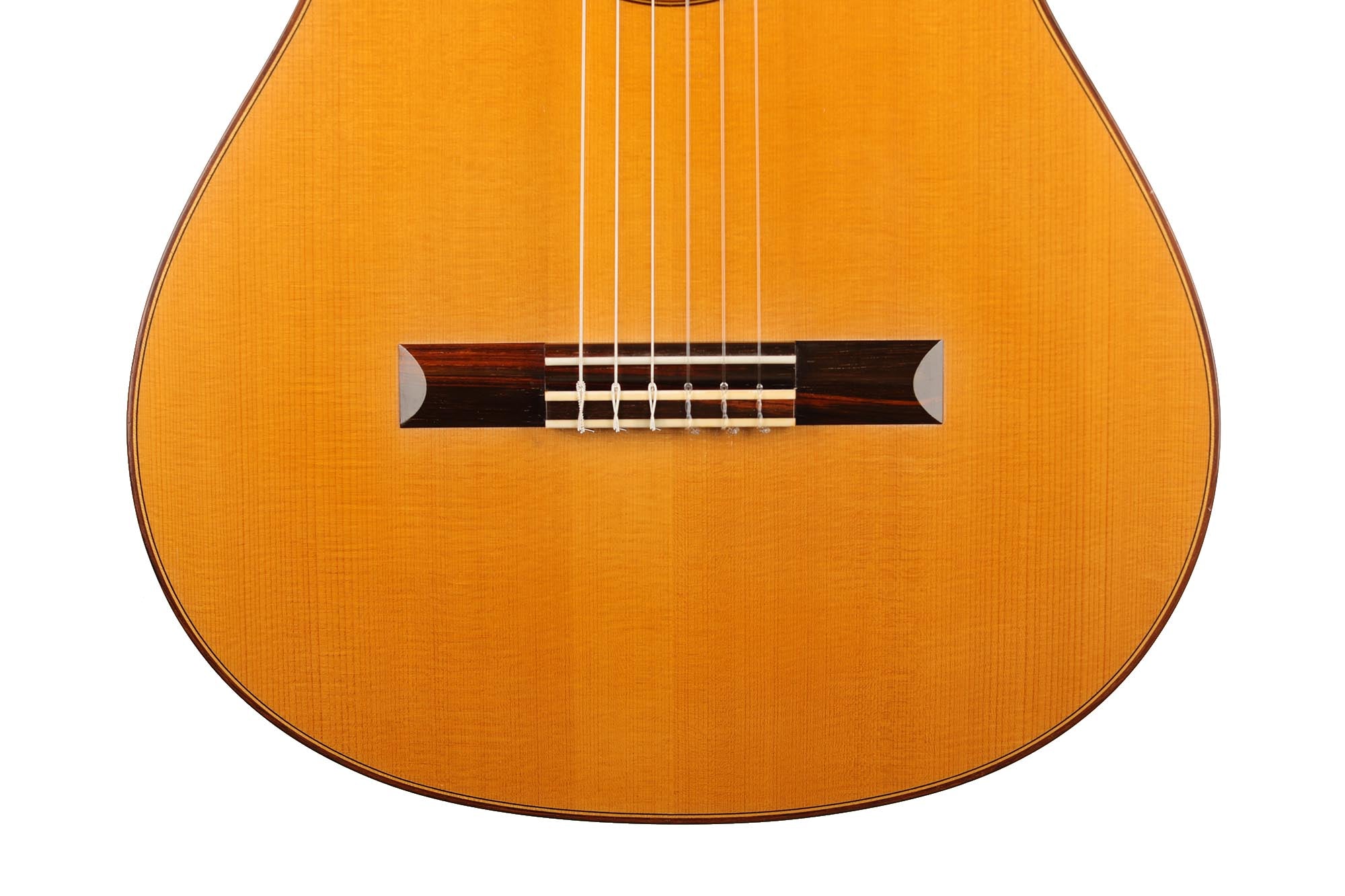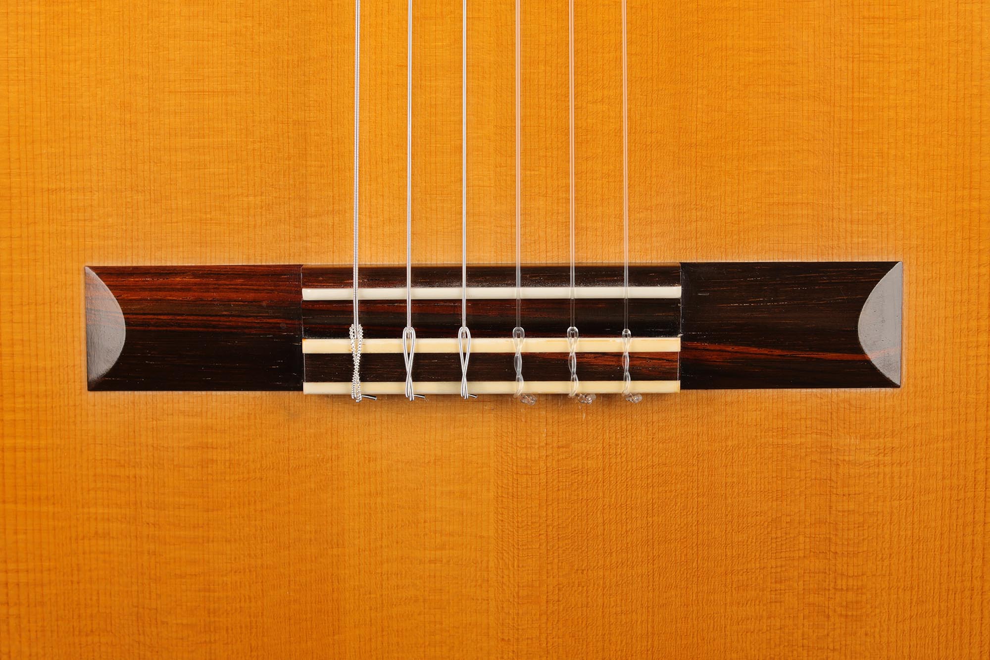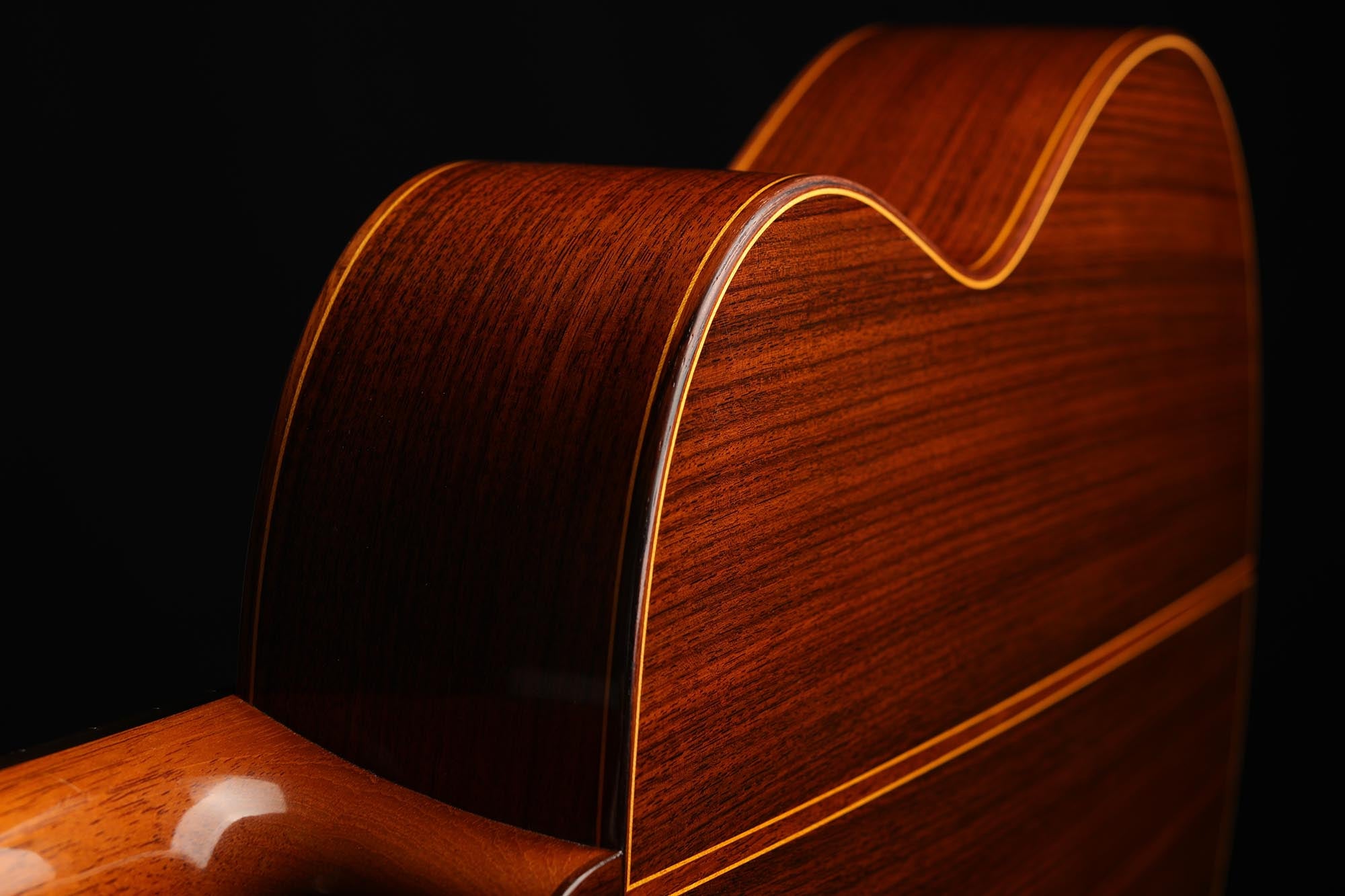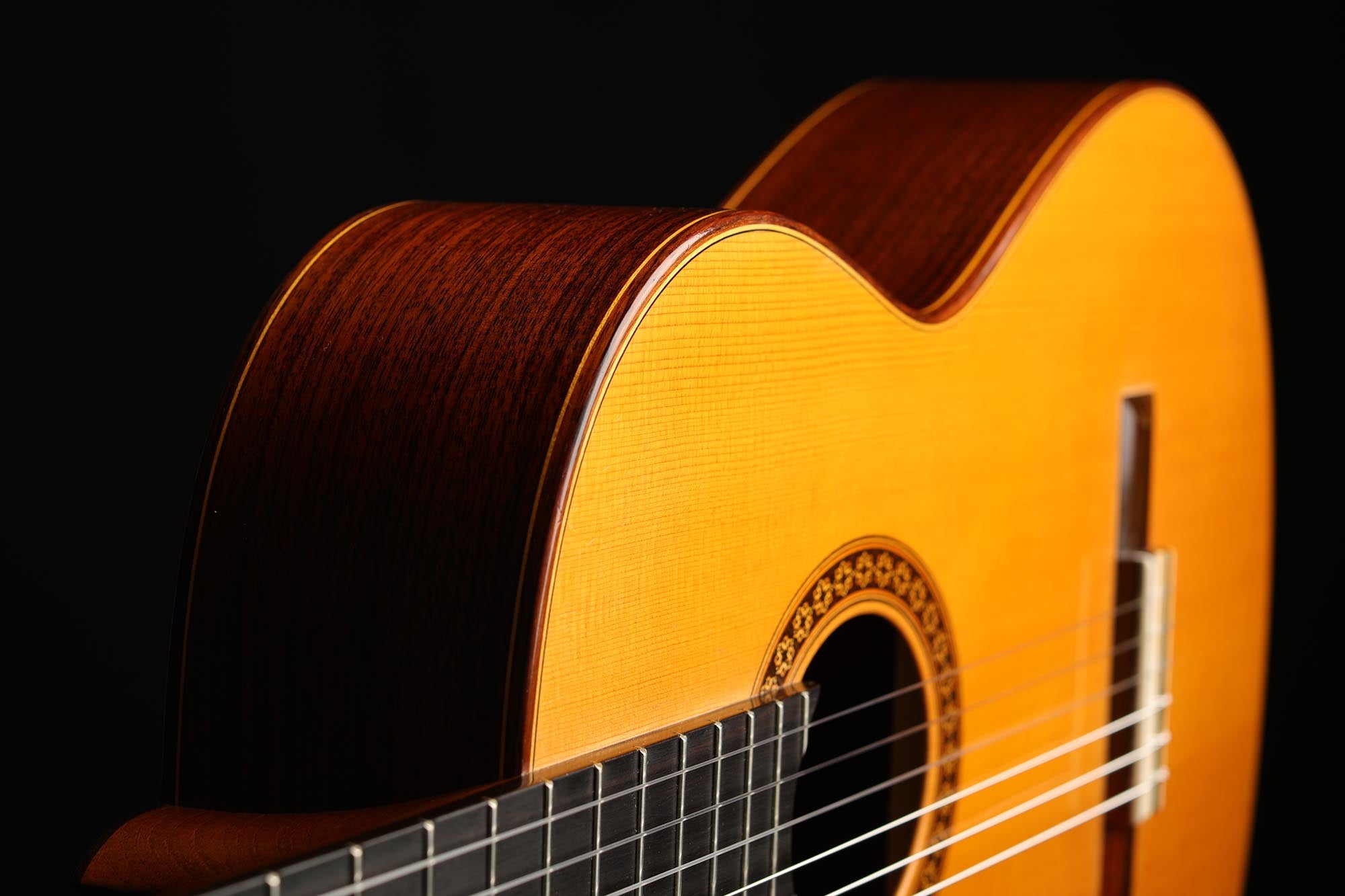 Diese 1997 gebaute Gitarre befindet sich in einem gut erhaltenen Zustand. Dem Alter entsprechend sind zwar einige Spielspuren sichtbar, aber es sind keine größeren Reparaturen oder Schäden an der Gitarre festszustellen. Die hochwertigen originalen Reischl Mechaniken sorgen für hochpräzises und perfektes Stimmen.Darüber hinaus unterstreicht die Kombination aus Fichtendecke, und Boden und Zargen aus elegantem indischem Palisander den traditionellen Charakter dieser Gitarre. Einige wunderbare geometrische Variationen sind in der Rosette sichtbar, deren Design ebenso wie der Rest dieses Instruments bewundernswert ist.