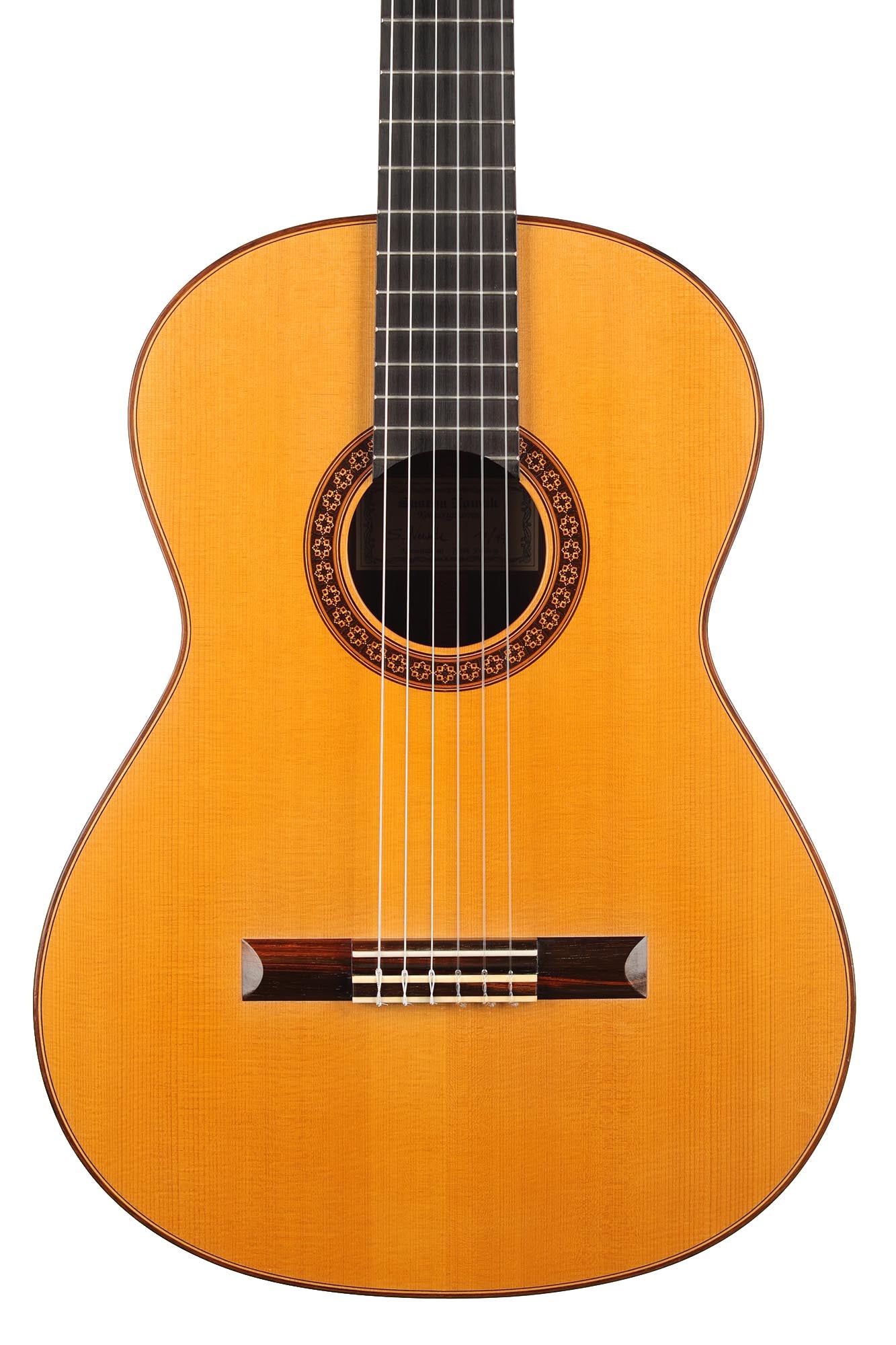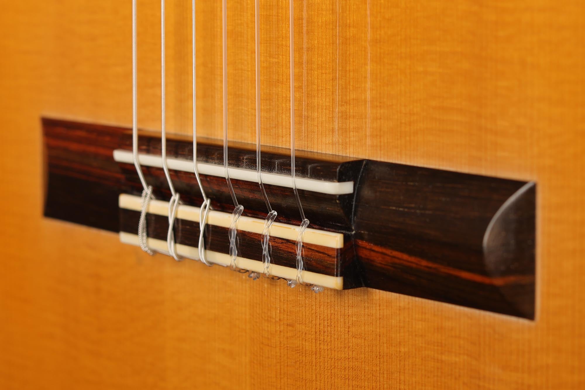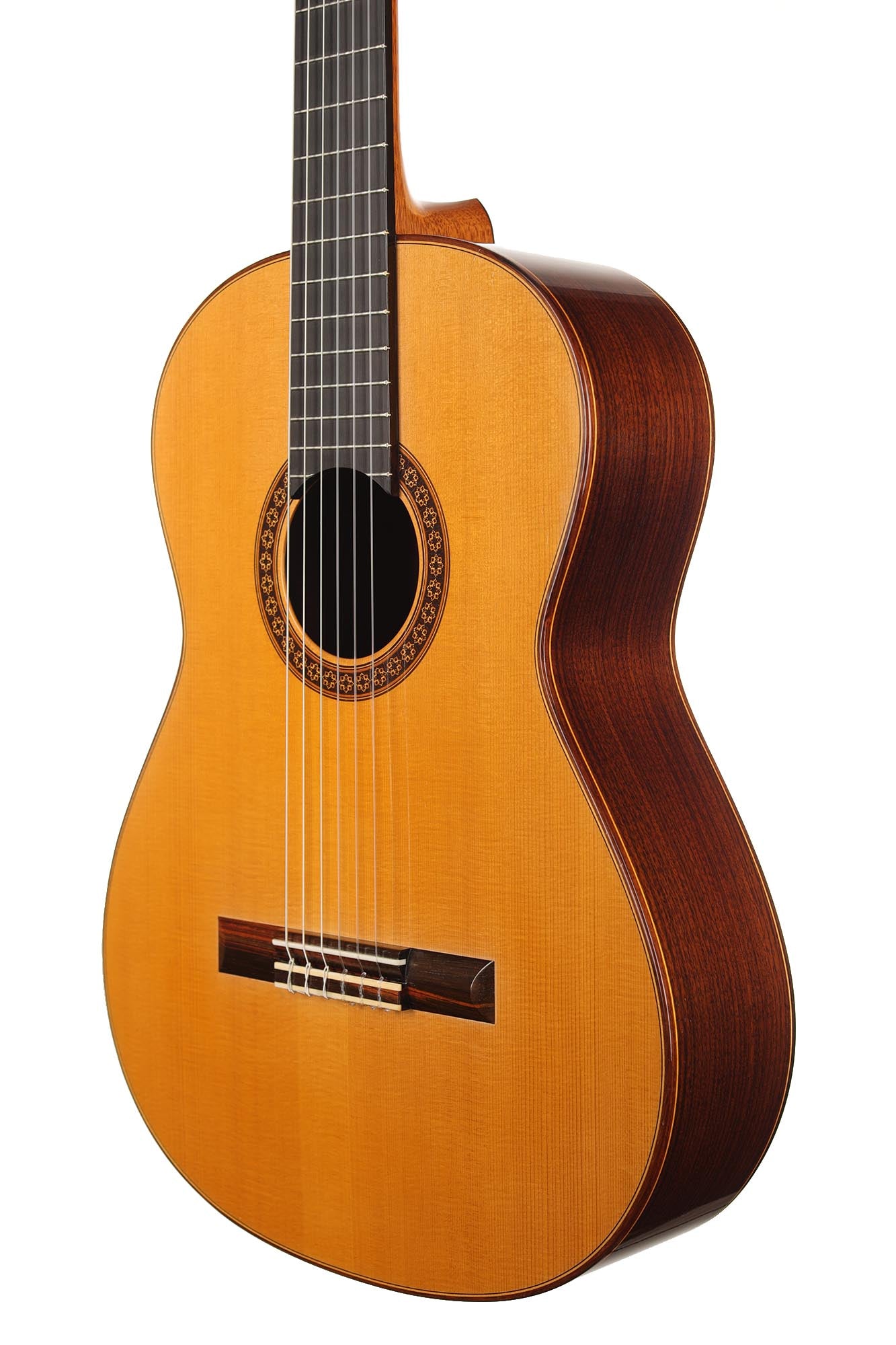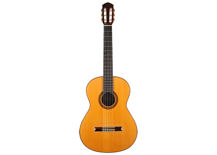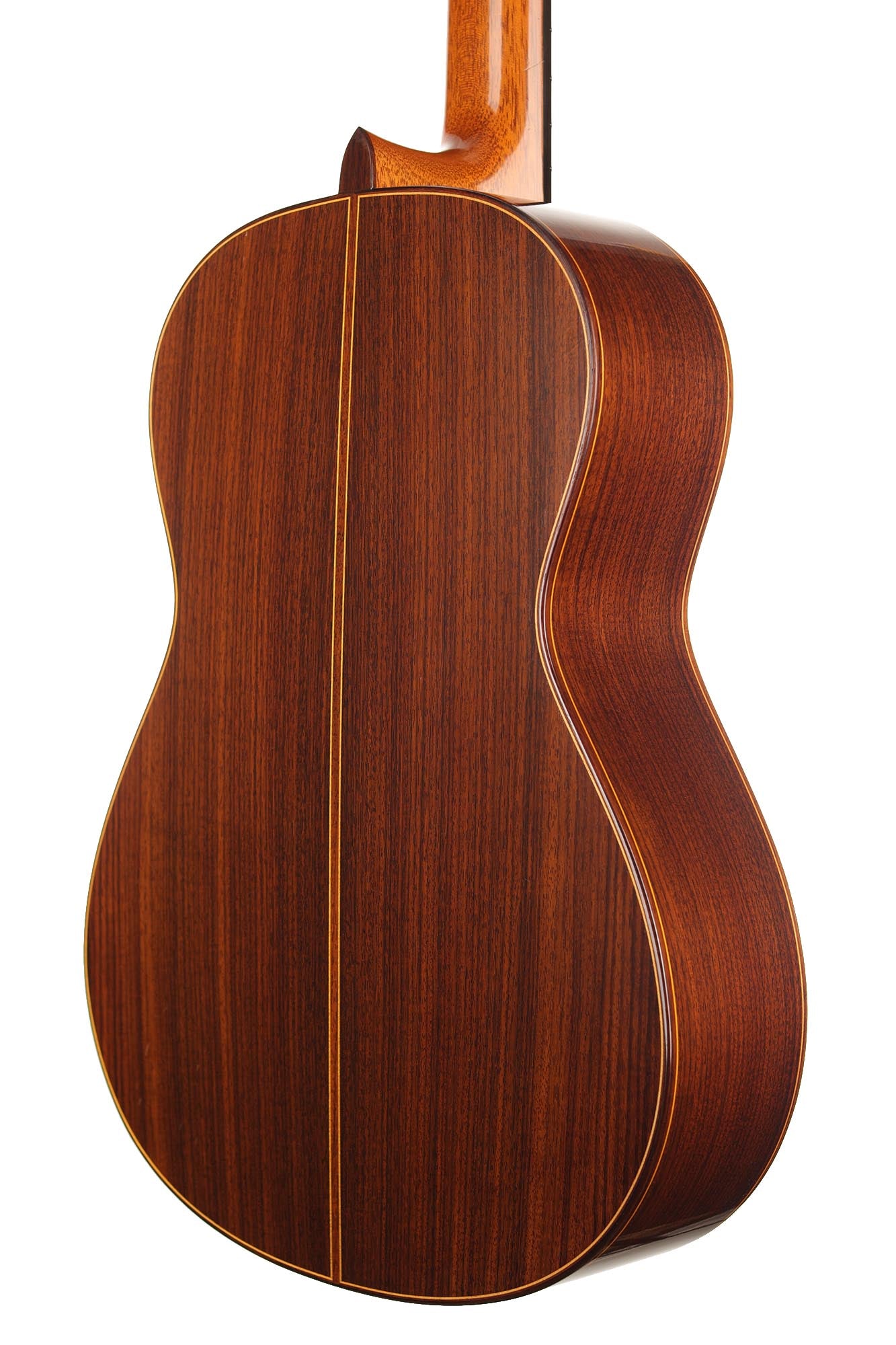 Diese 1997 gebaute Gitarre befindet sich in einem gut erhaltenen Zustand. Dem Alter entsprechend sind zwar einige Spielspuren sichtbar, aber es sind keine größeren Reparaturen oder Schäden an der Gitarre festszustellen. Die hochwertigen originalen Reischl Mechaniken sorgen für hochpräzises und perfektes Stimmen.Darüber hinaus unterstreicht die Kombination aus Fichtendecke, und Boden und Zargen aus elegantem indischem Palisander den traditionellen Charakter dieser Gitarre. Einige wunderbare geometrische Variationen sind in der Rosette sichtbar, deren Design ebenso wie der Rest dieses Instruments bewundernswert ist.