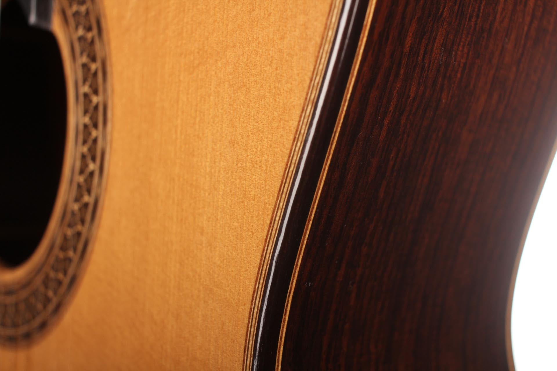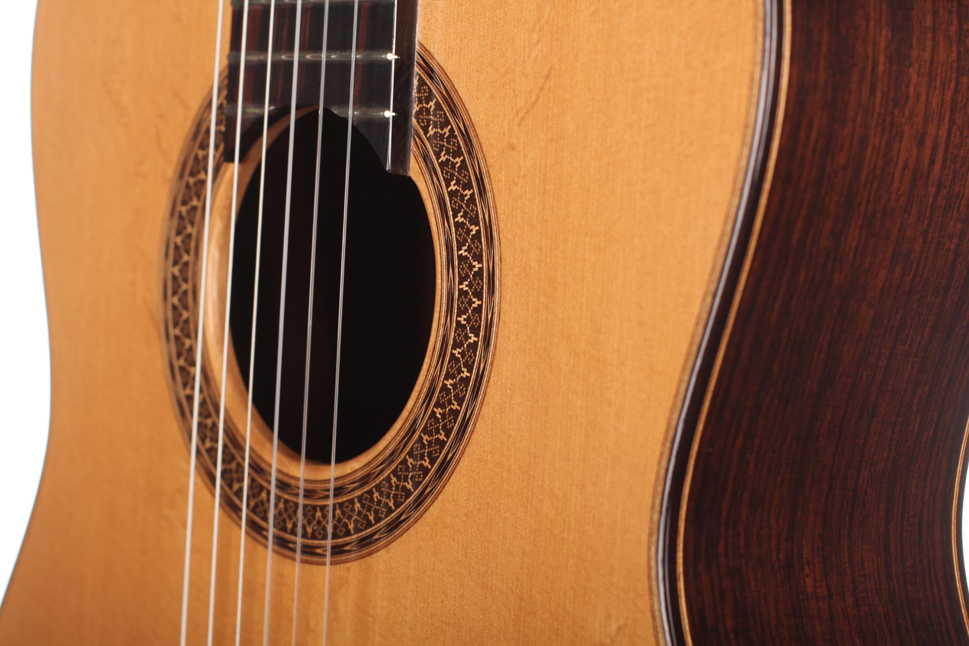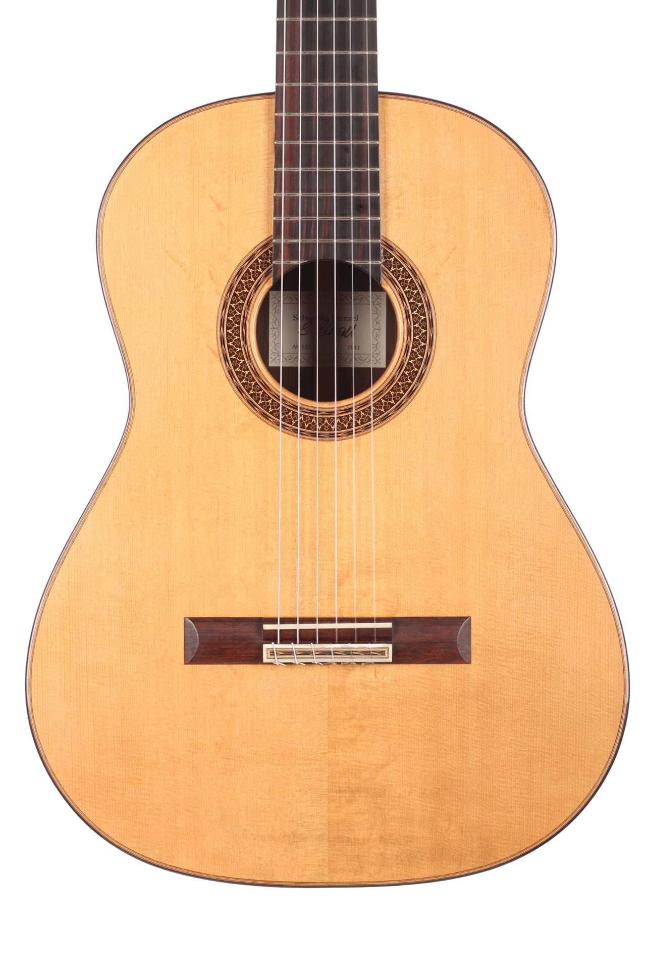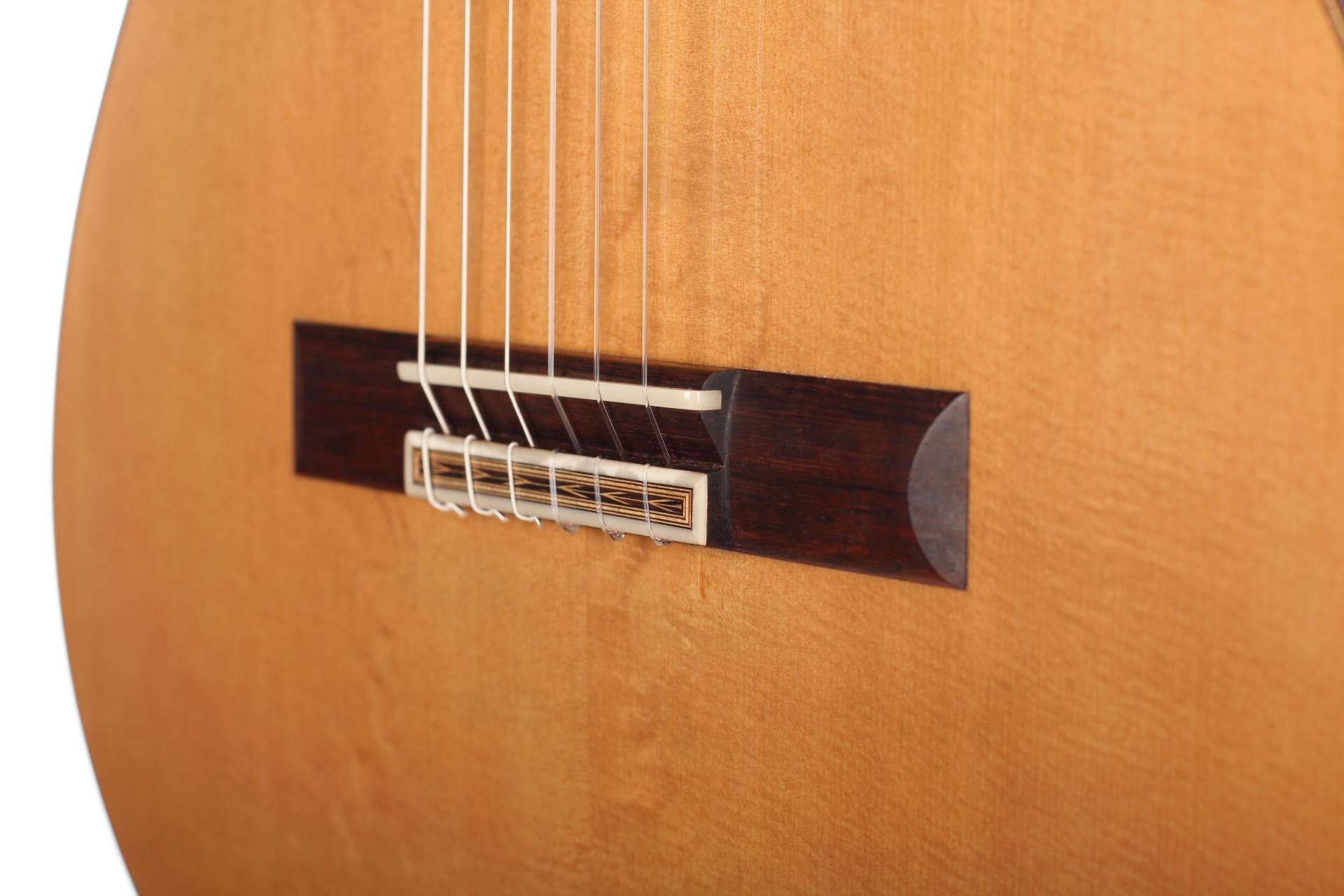 Die klassische Gitarre mit ihren weichen Nylonsaiten und ihrem charakteristischen Timbre ist zum Symbol der Kammermusik, der spanischen Tradition und des Konzertrepertoires geworden. Ihre moderne Form prägte Antonio de Torres im 19. Jahrhundert, indem er den Standard für Korpus, Fächerbeleistung und die 65-Zentimeter-Mensur setzte, die bis heute verwendet werden. Instrumente dieser Kategorie eröffnen eine reiche Palette von den feinen romantischen Miniaturen Tárregas bis zu den majestätischen Konzerten Rodrigos. Hier finden Sie Gitarren, die historische Kontinuität bewahren und zugleich zu neuen Interpretationen anregen.