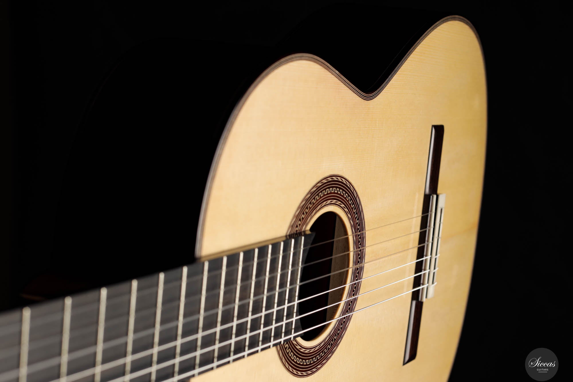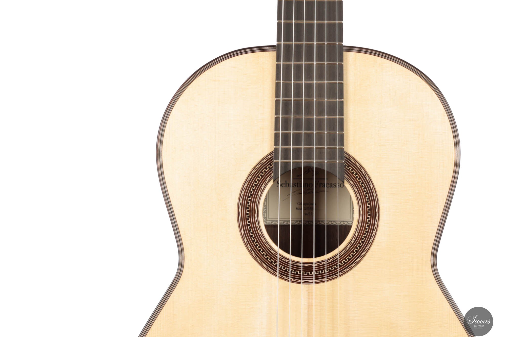 Sebastiano Fracasso is an Italian guitar maker who graduated from the Civica Scuola di Liuteria di Milano, where he studied the construction of traditional plucked instruments. He now works in his workshop in Chiampo (Vicenza, Italy). Sebastiano had the opportunity to work directly with masters Roberto de Miranda in Milan and Ennio Giovanetti in his Gropparello (Piacenza) workshop, focusing on the construction and restoration of classical guitars. This experience provided him with a deep immersion in the traditions and knowledge of classical guitar making. Additionally, he collaborated with steel string guitar maker Emanuele Faggion in his Trissino workshop, where he worked on repairs and gained experience with other types of guitars.
