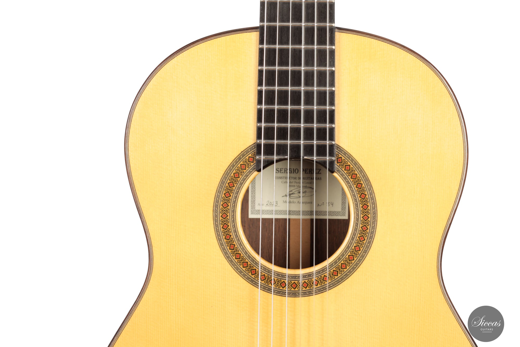 Das Modell "Aranjuez" von Sergio Perez ist ein Beispiel für die feine Kunst des Gitarrenbaus, bei dem außergewöhnliche Materialien mit sorgfältiger Handwerksarbeit kombiniert werden. Dieses Modell zeichnet sich nicht nur durch seine Ästhetik aus, sondern auch durch seine überragende Klangqualität, die es zu einem äußerst gefragten Instrument für konzertierende Musiker macht.